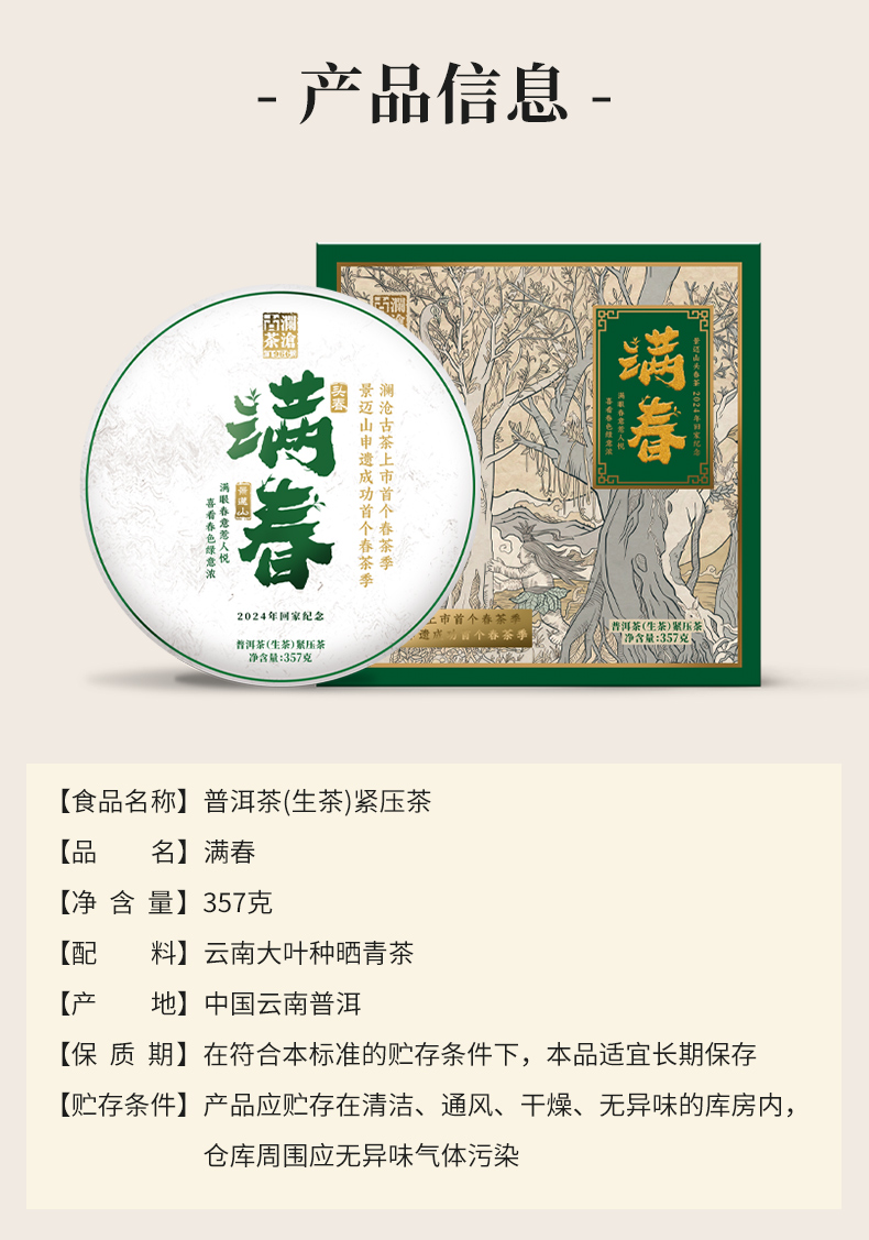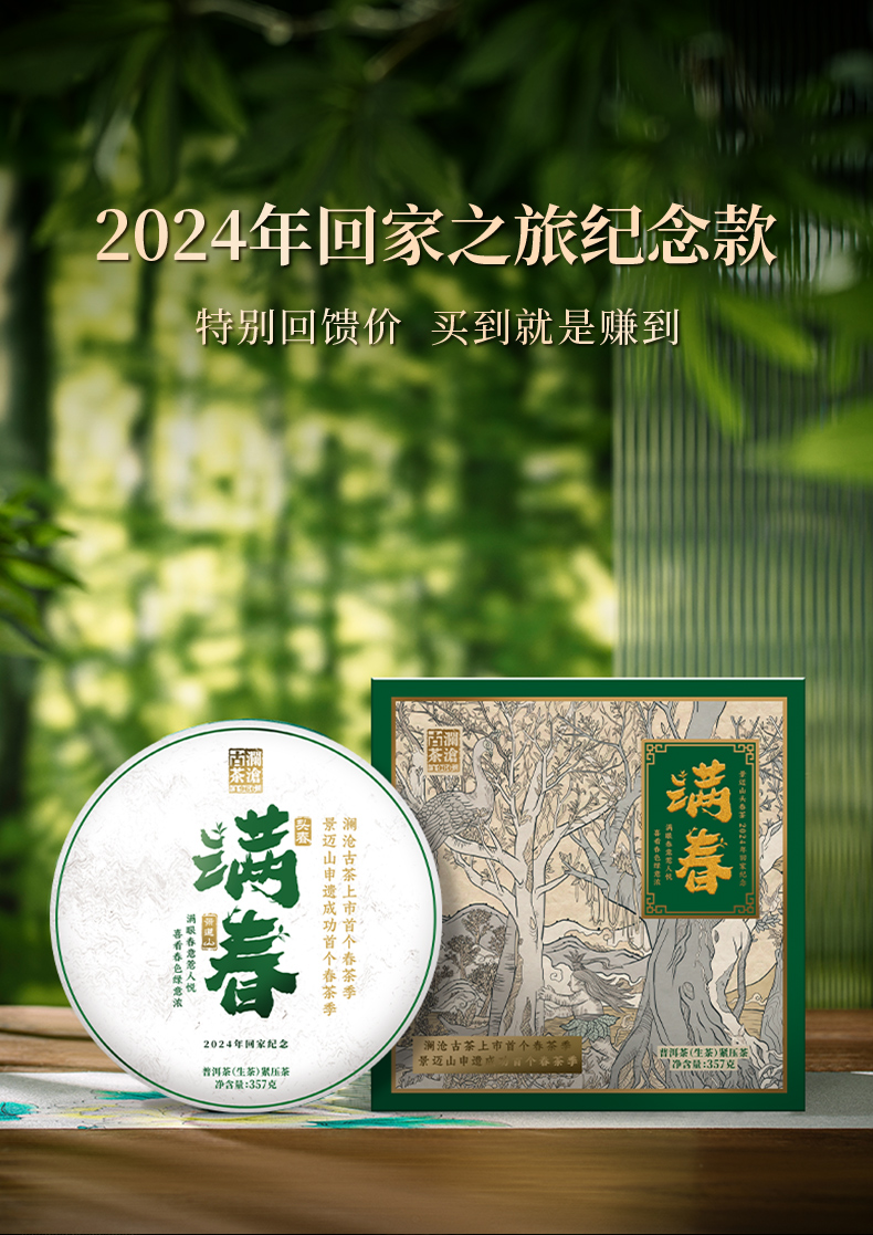 澜沧古茶2024年回家纪念茶满春景迈山古树头春生茶357g