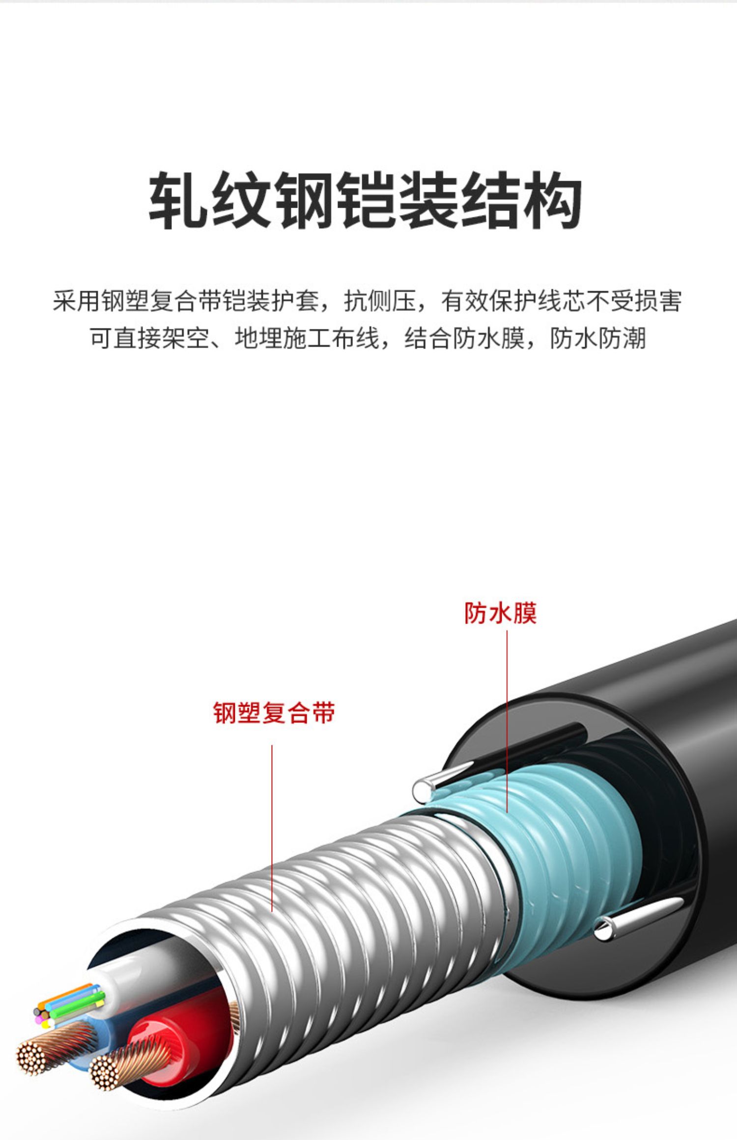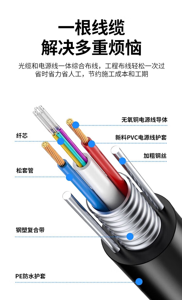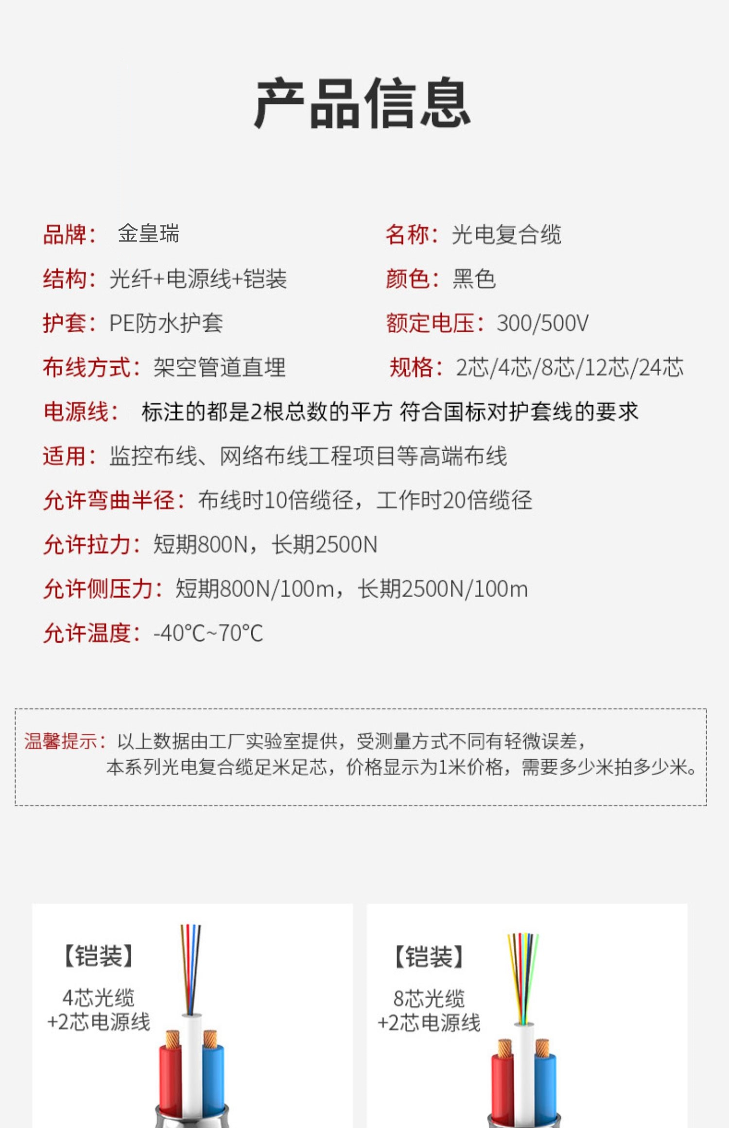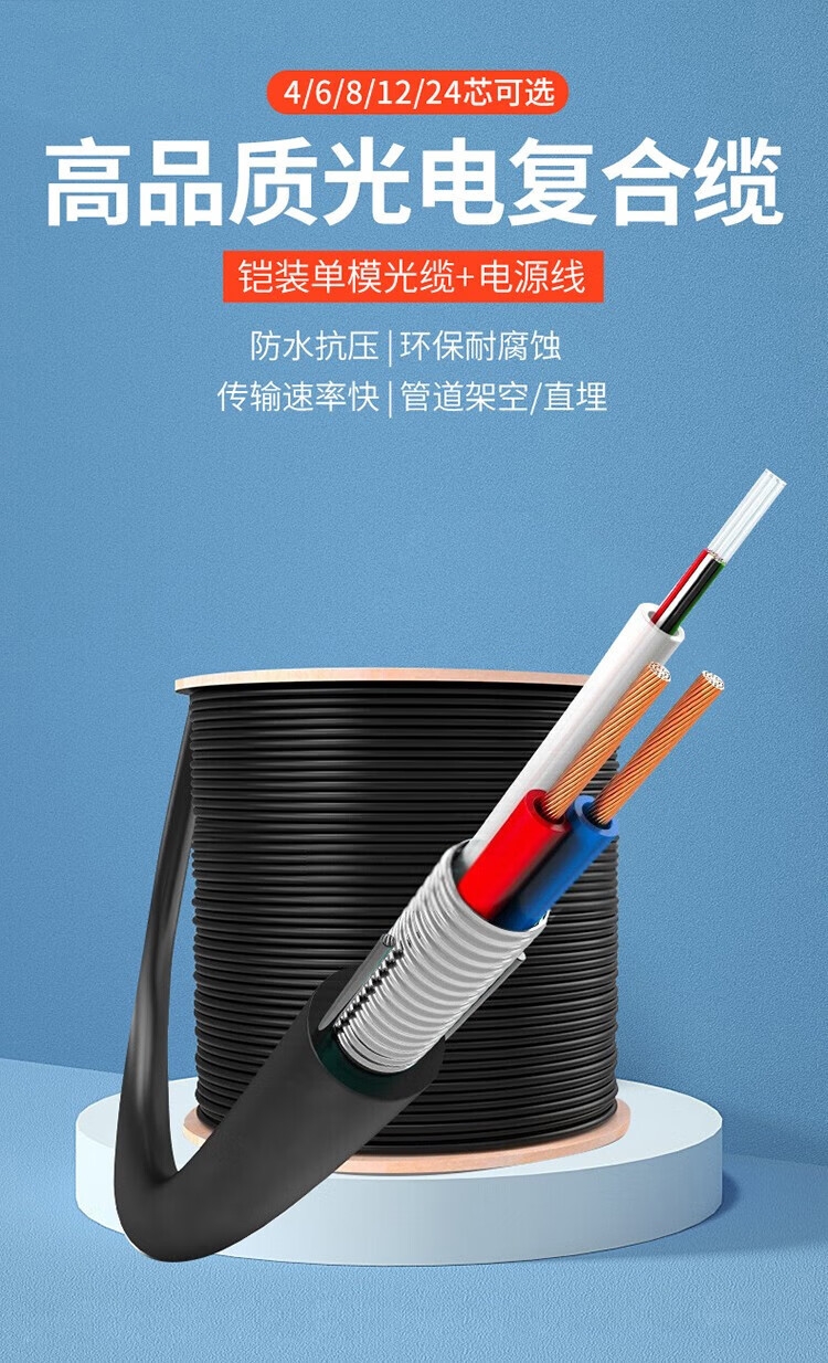 商品名称:光电复合缆光钎一体线光缆带电源线综合线室外光缆线监控2芯4芯8芯12芯24芯纯铜光钎光缆铠装户外专业用架空地埋