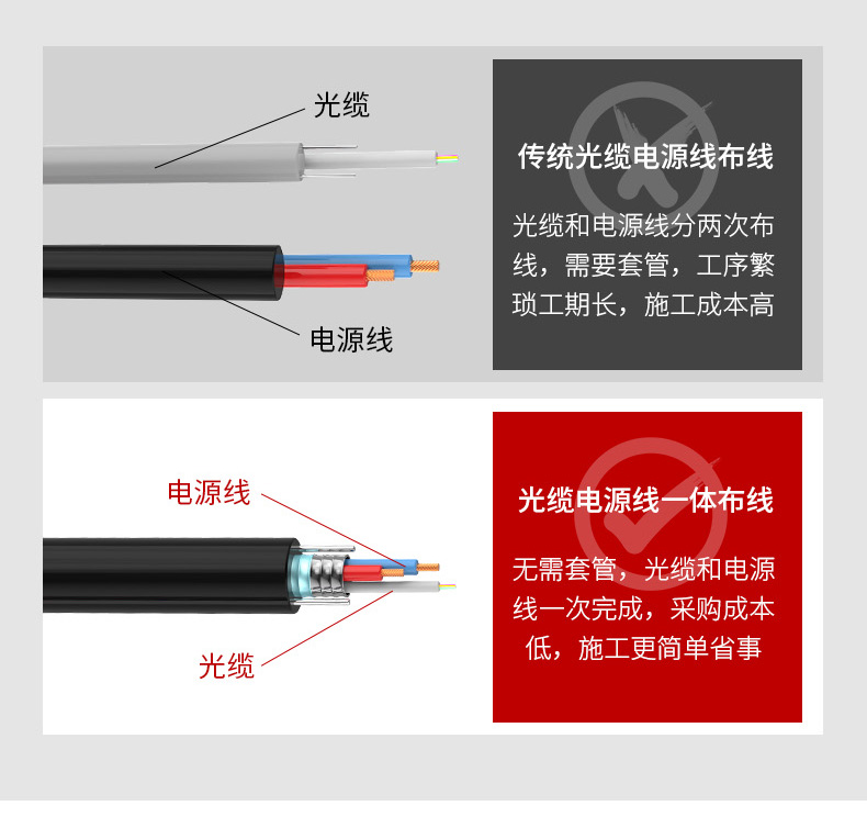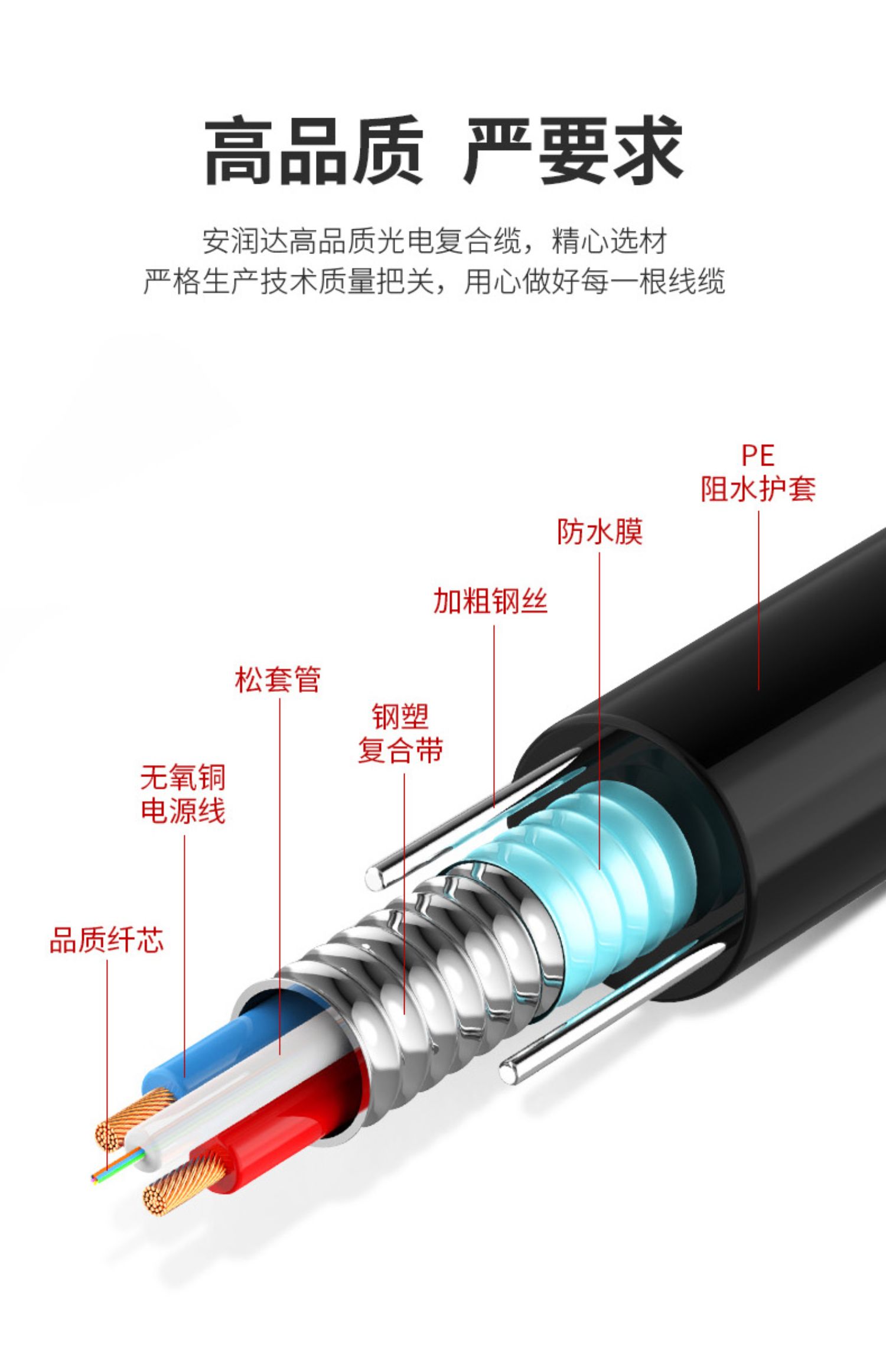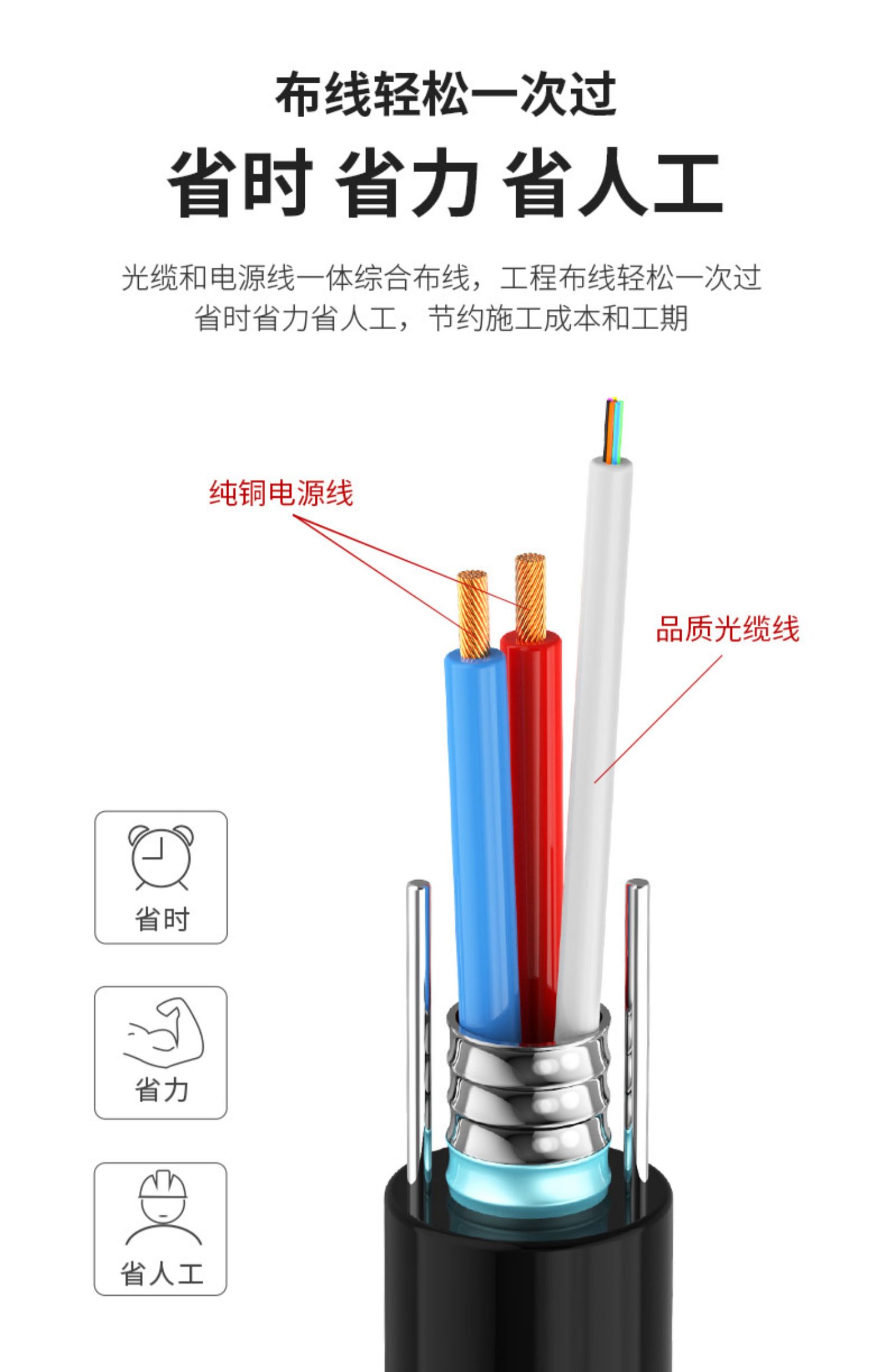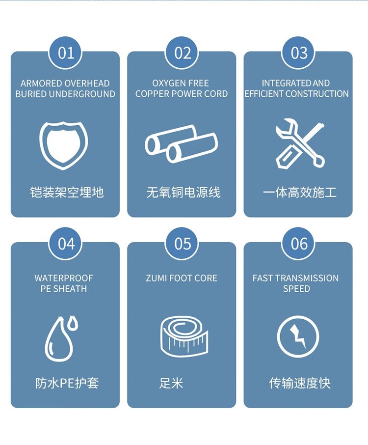 商品名称:光电复合缆光钎一体线光缆带电源线综合线室外光缆线监控2芯4芯8芯12芯24芯纯铜光钎光缆铠装户外专业用架空地埋