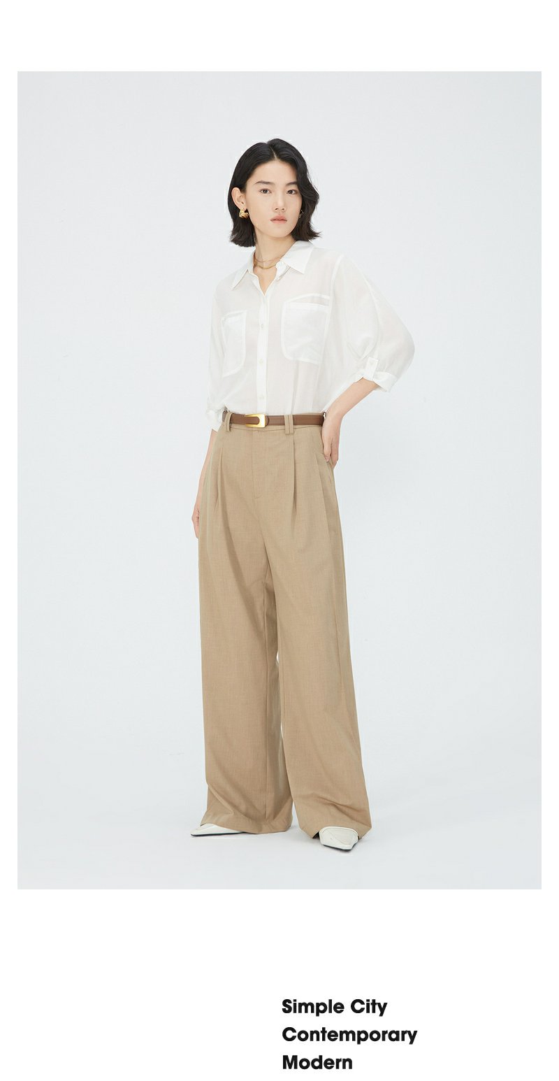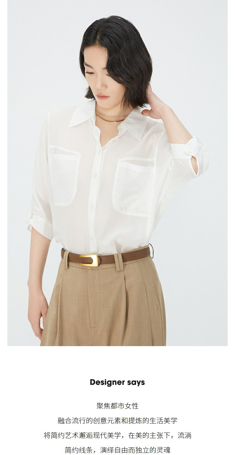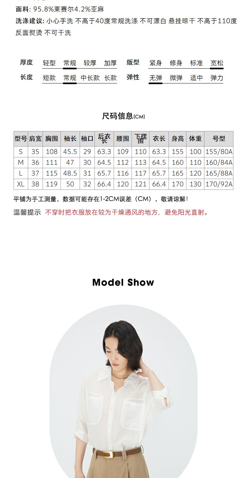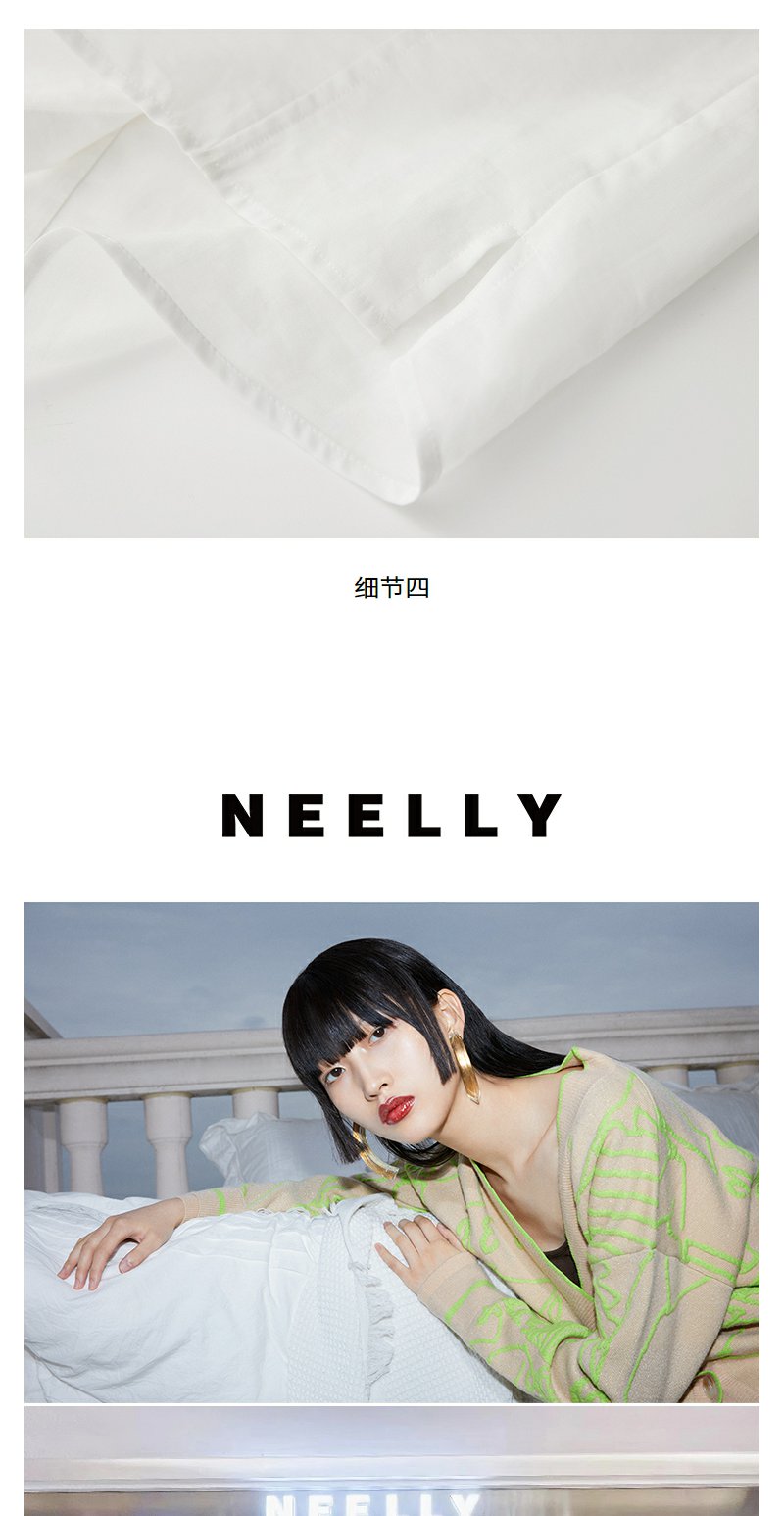 NEELLY纳俪商场同款夏季新款五分袖翻领衬衫女莱赛尔气质通勤上衣N25054B04626