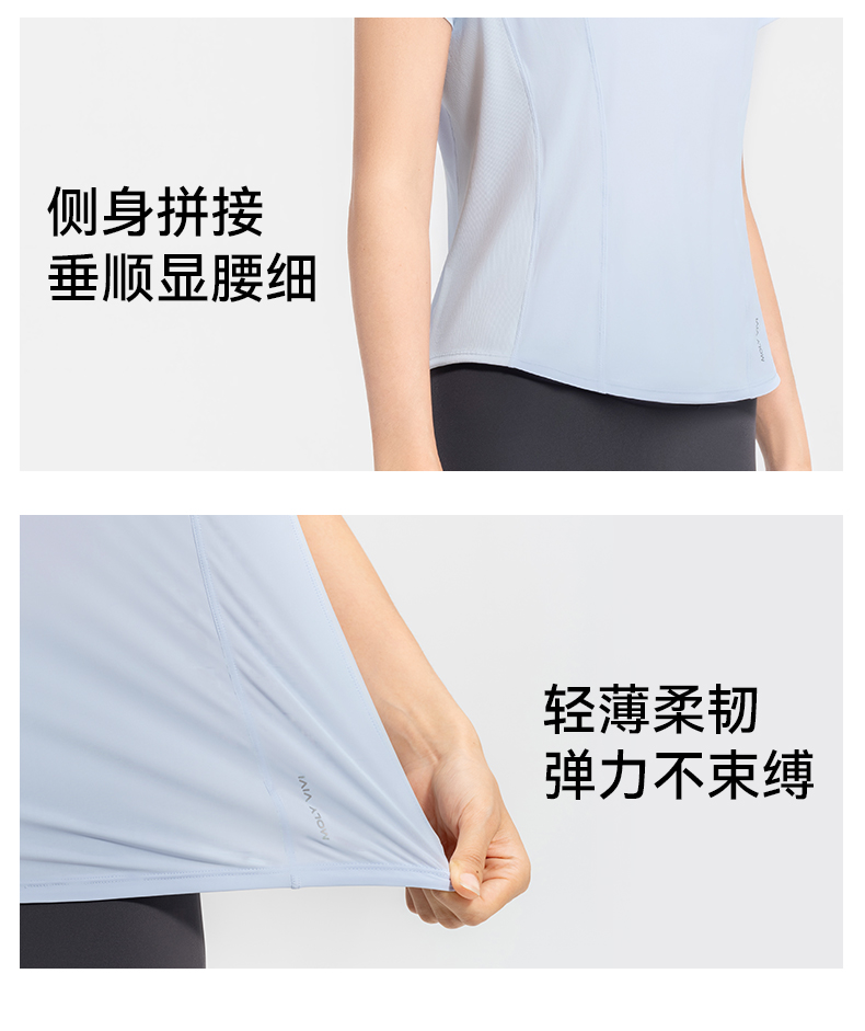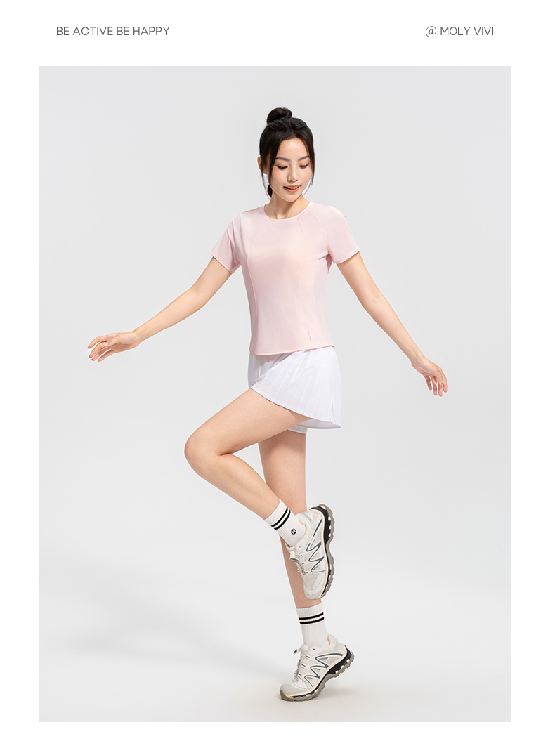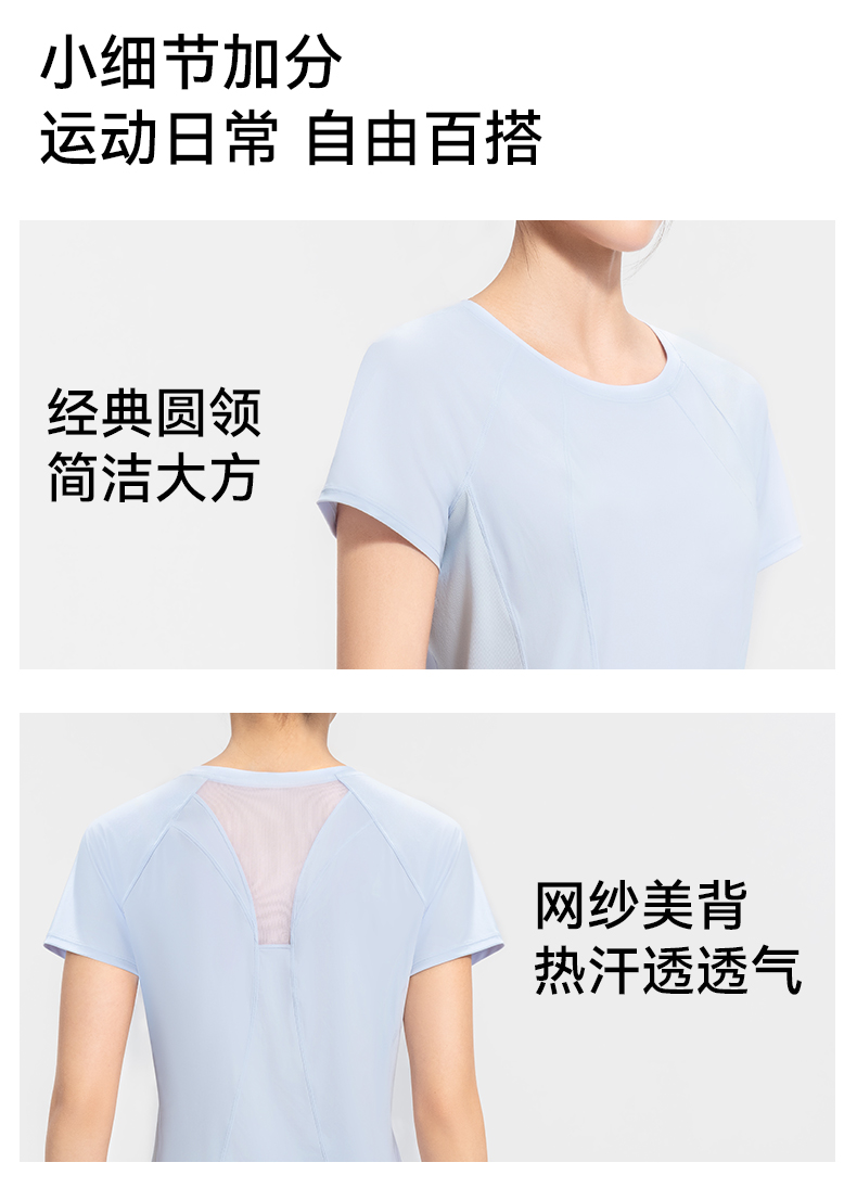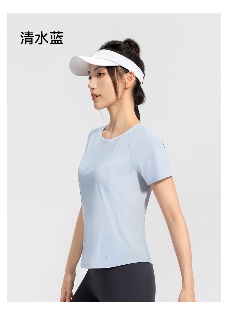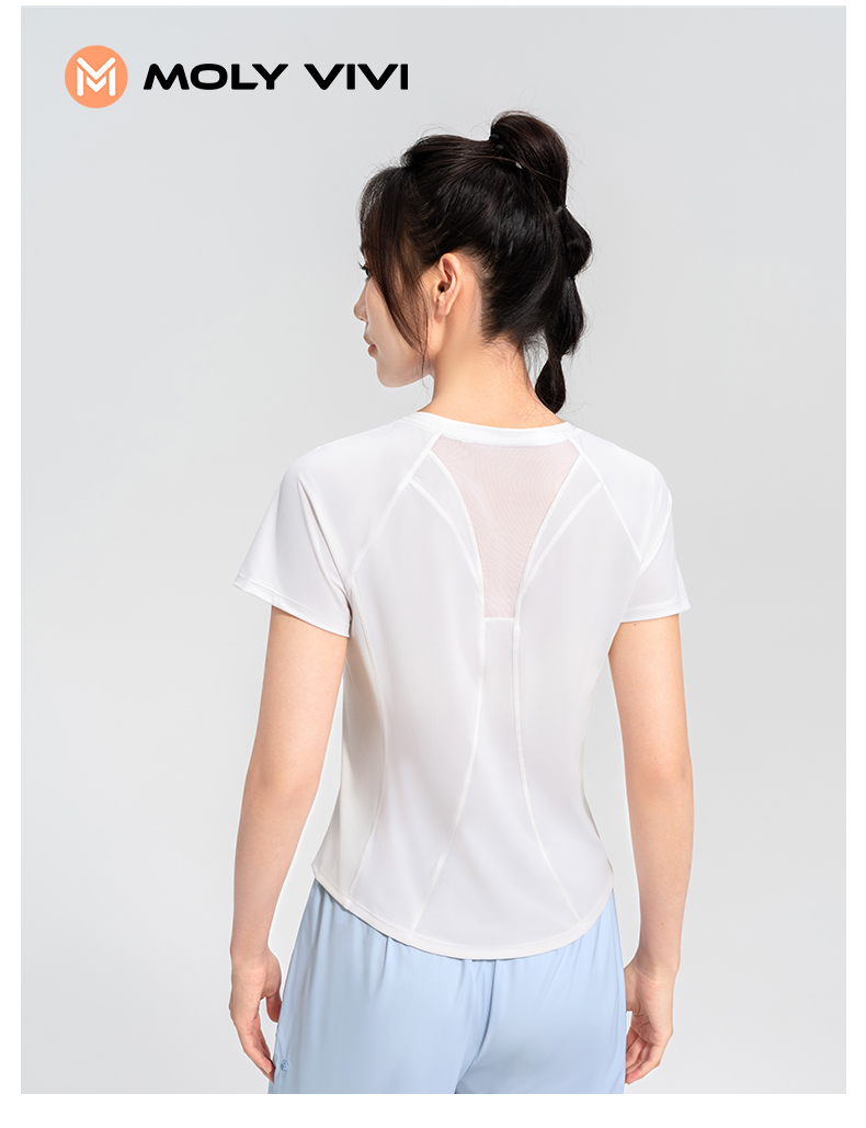 MOLYVIVI2025夏季新款网纱拼接短袖T凉感透气修身百搭短袖