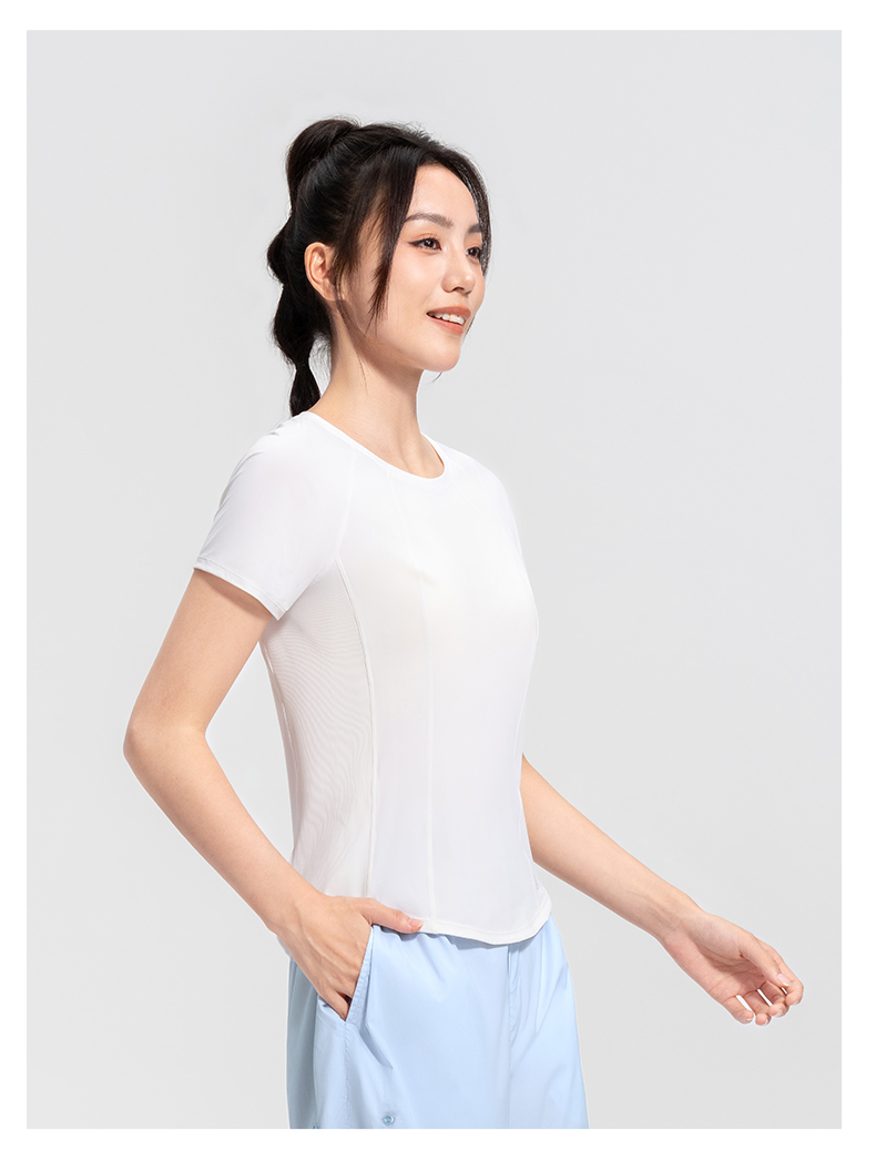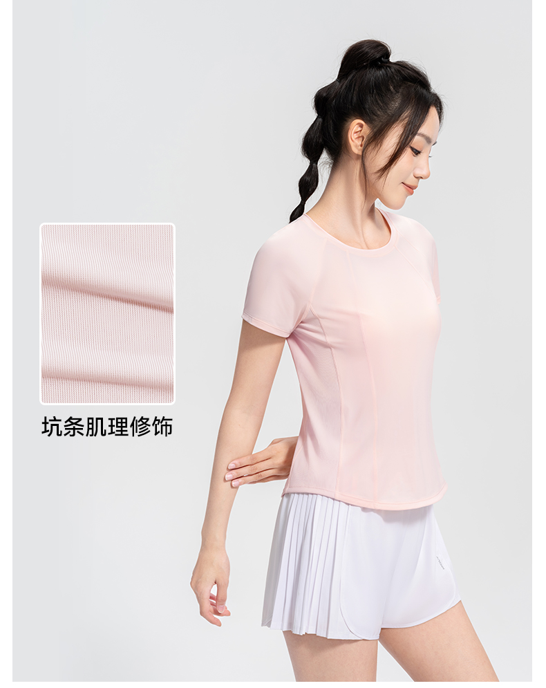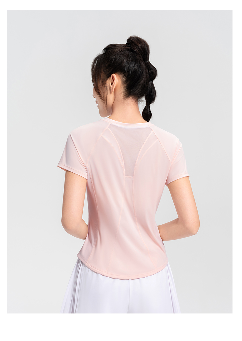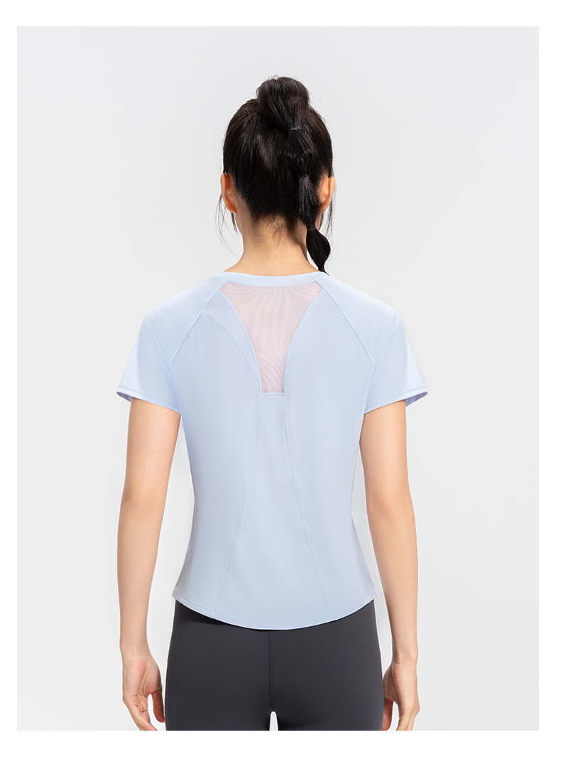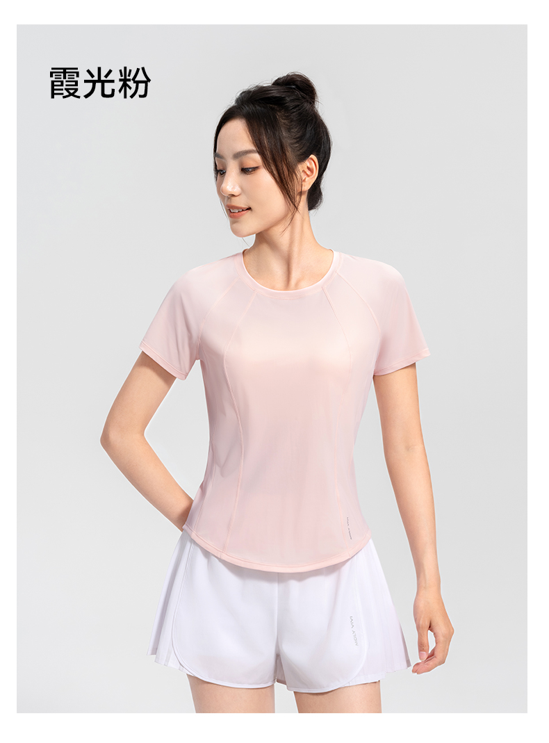 MOLYVIVI2025夏季新款网纱拼接短袖T凉感透气修身百搭短袖