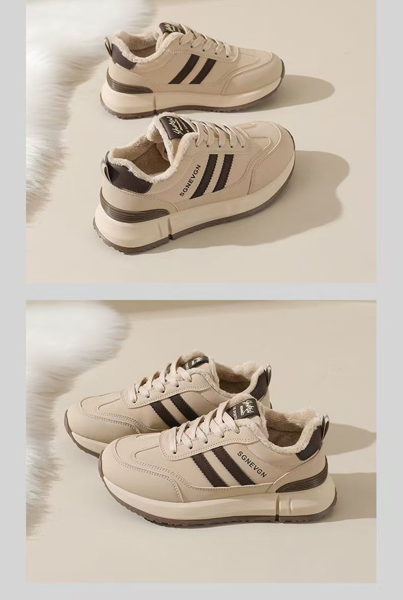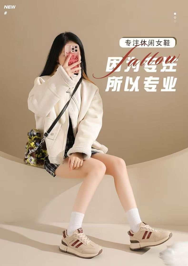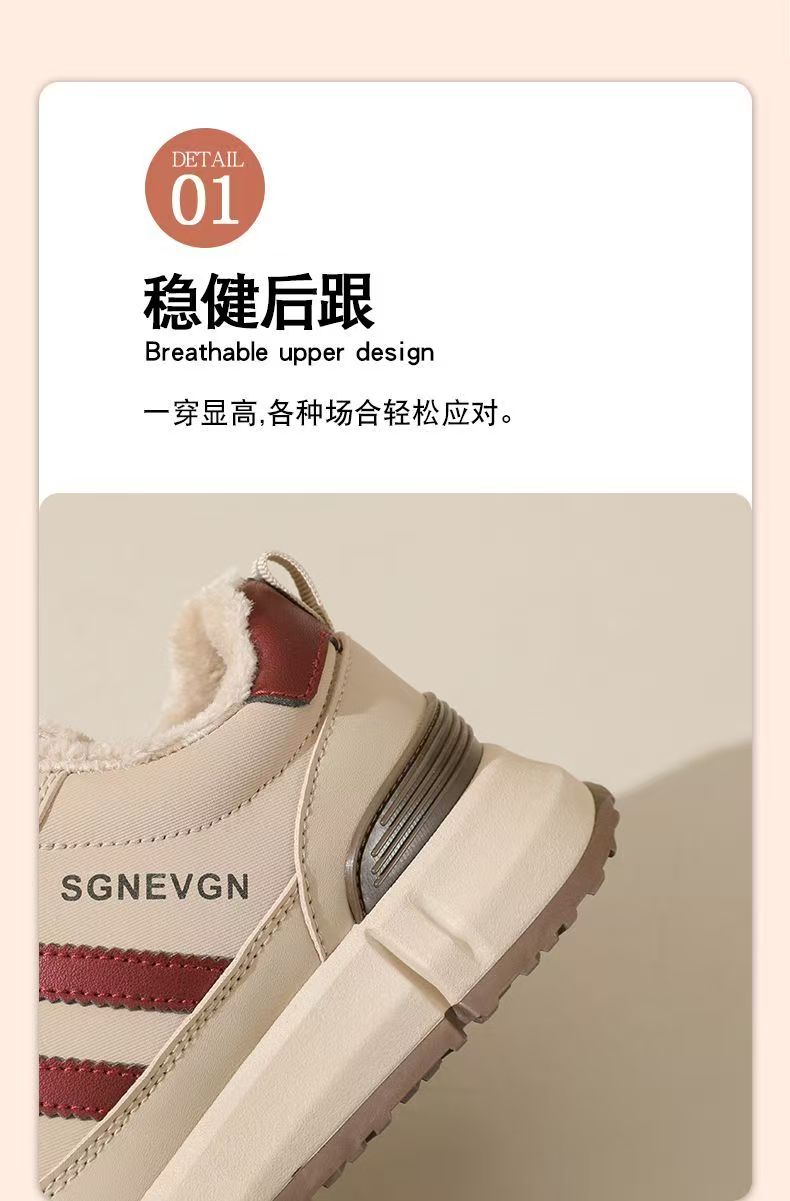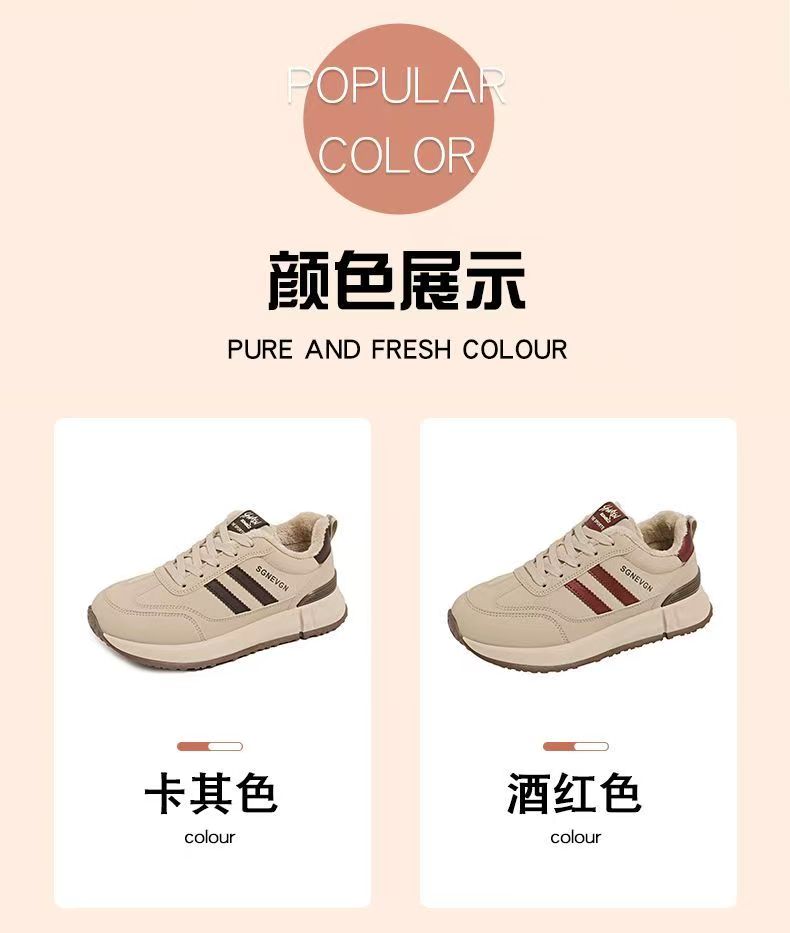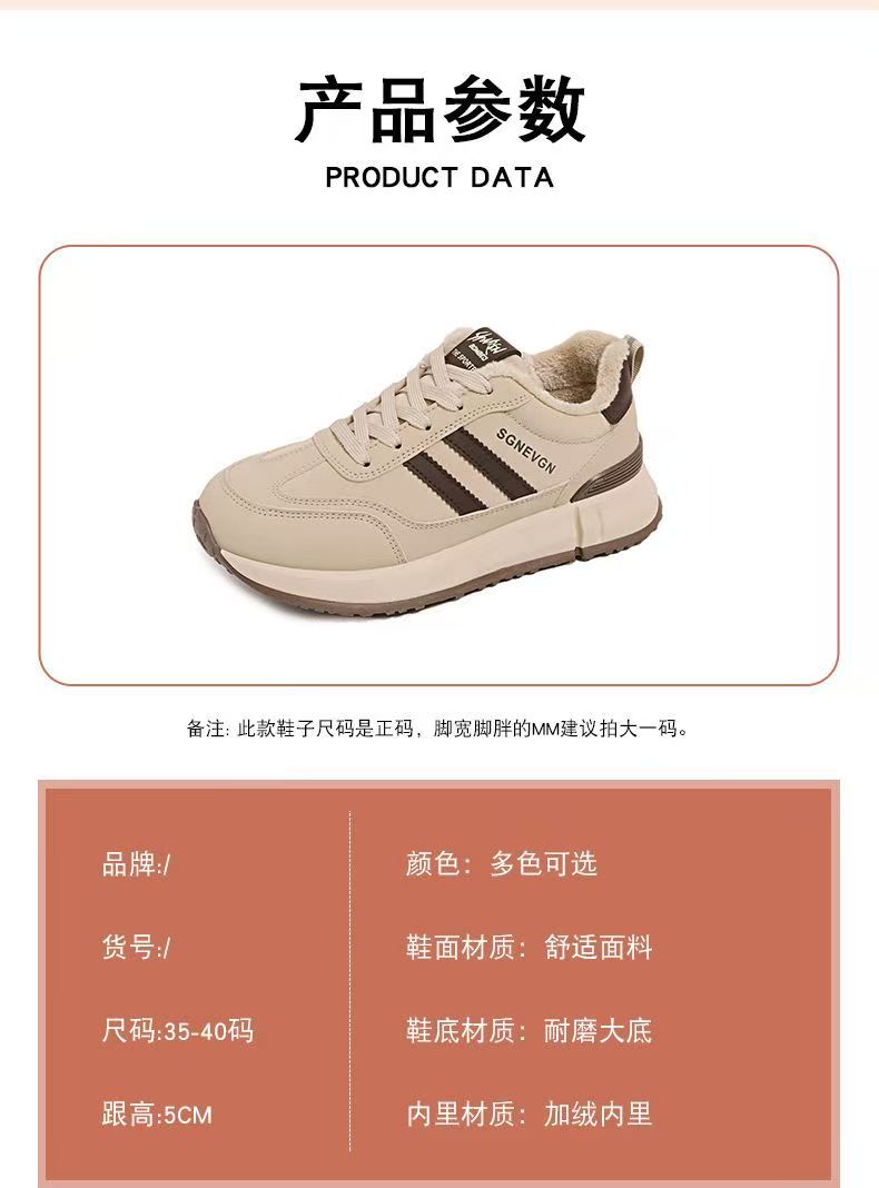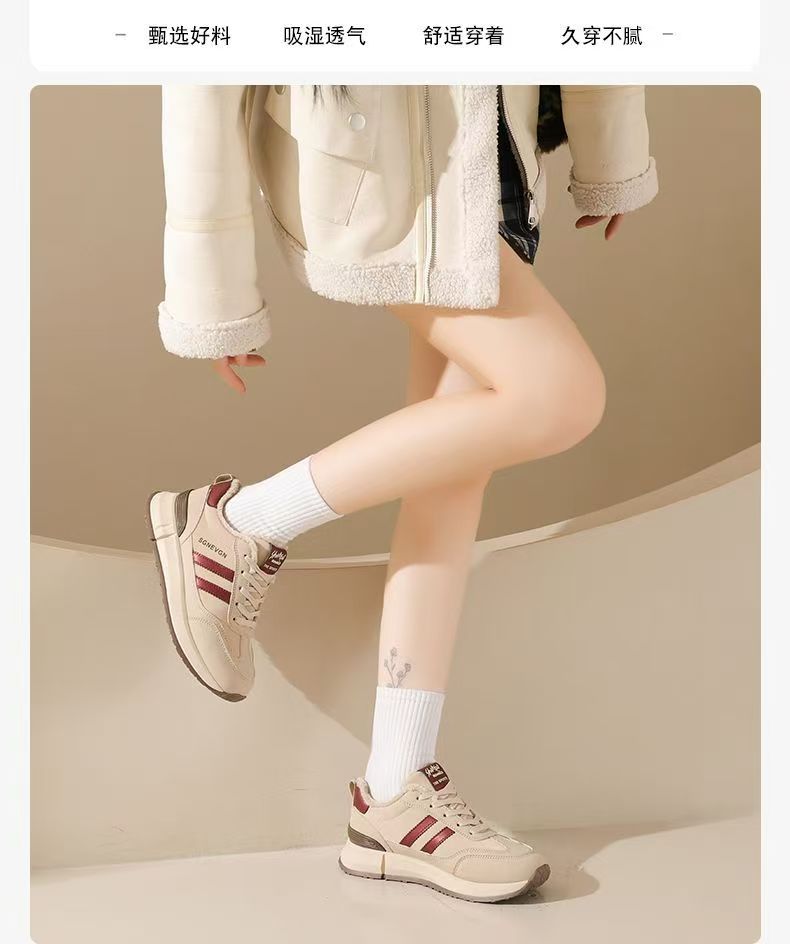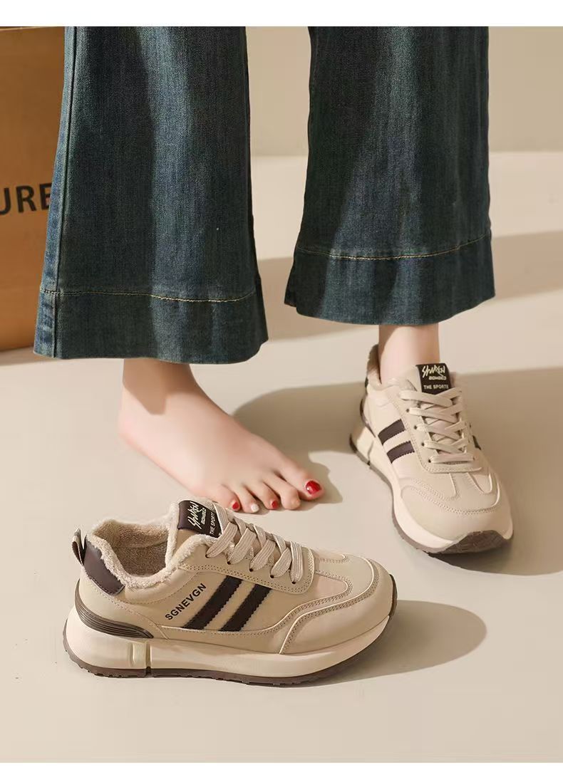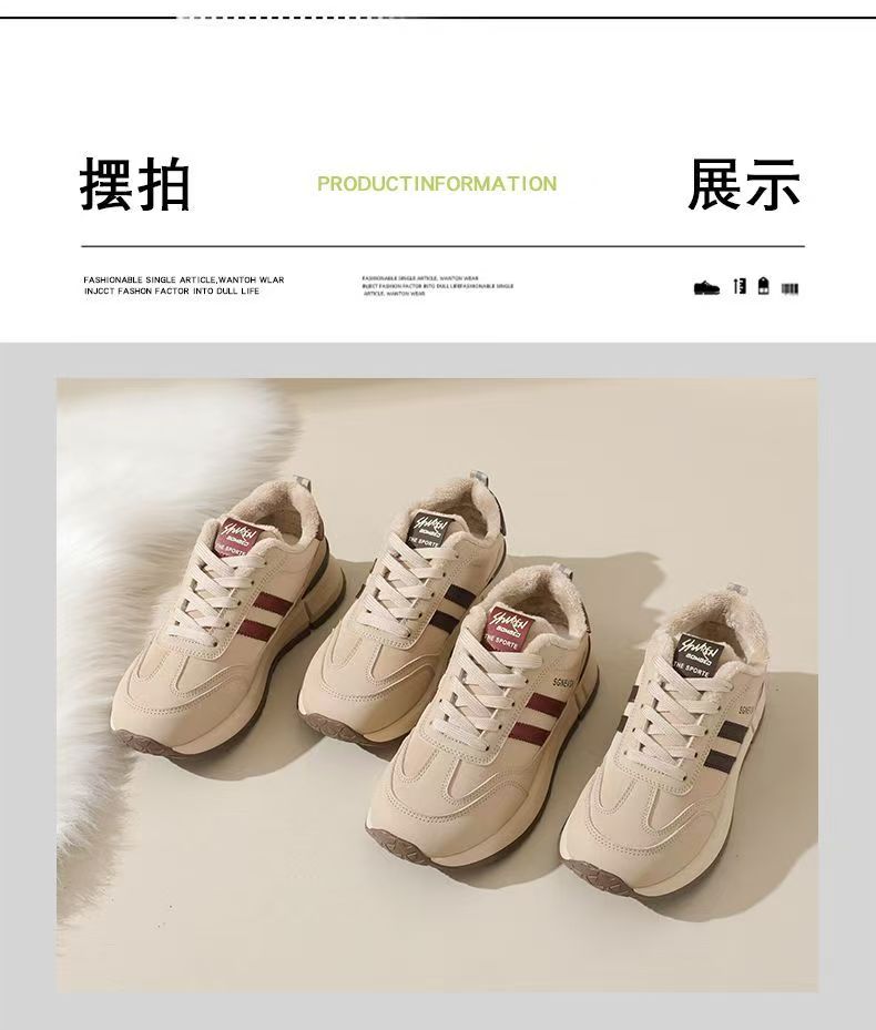 女士加绒厚底皮面运动鞋新款鞋百搭时尚轻便防滑软底老爹鞋35-40★娃娃优选