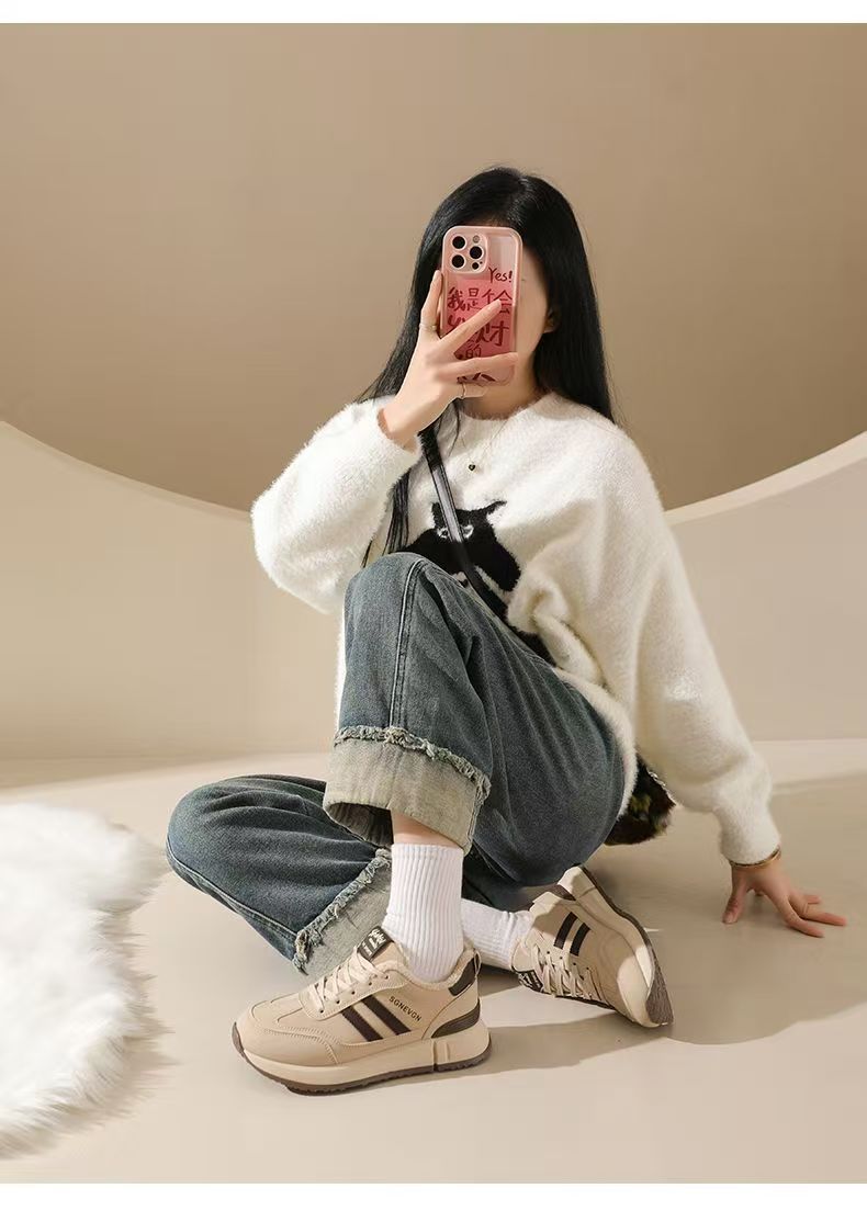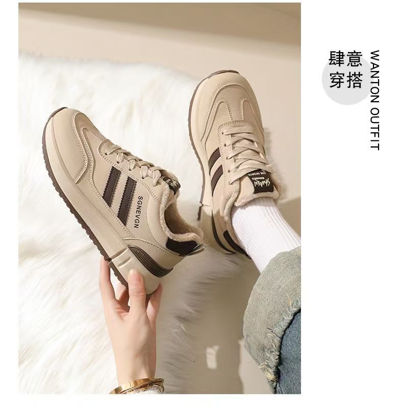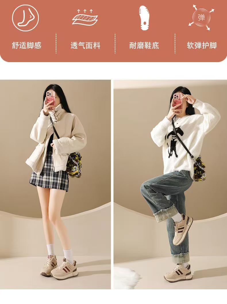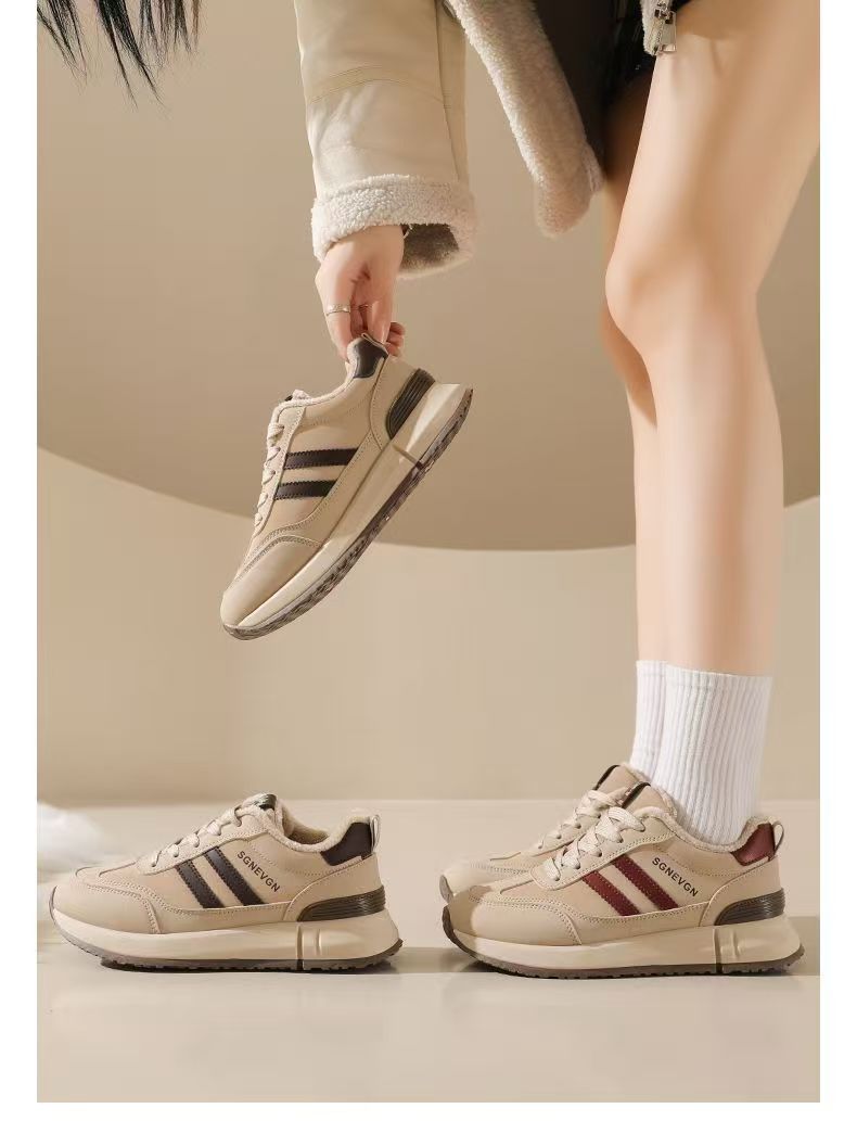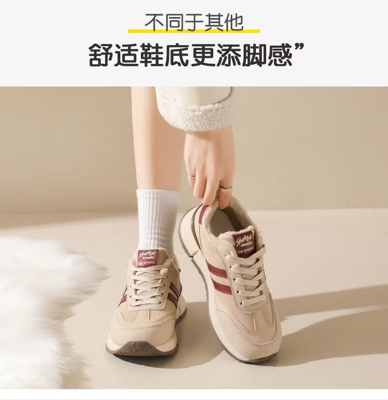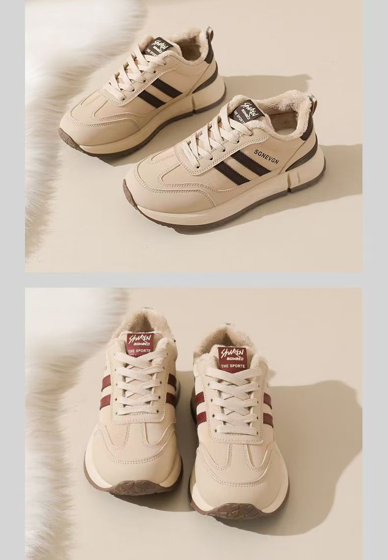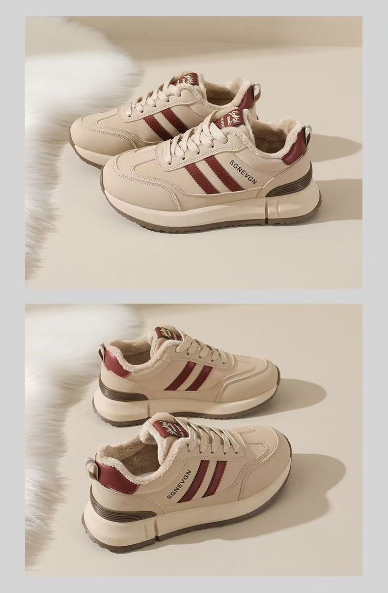 女士加绒厚底皮面运动鞋新款鞋百搭时尚轻便防滑软底老爹鞋35-40★娃娃优选