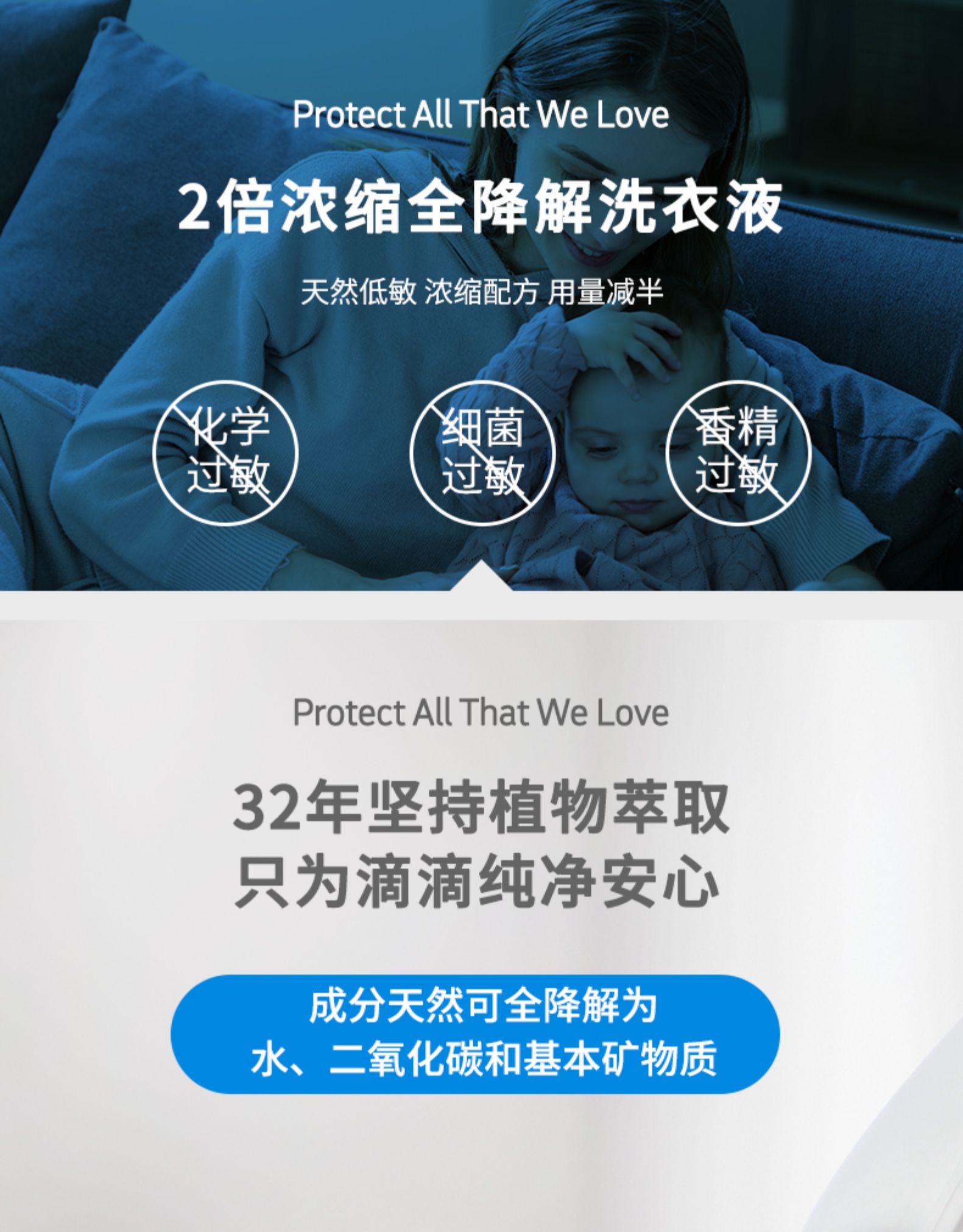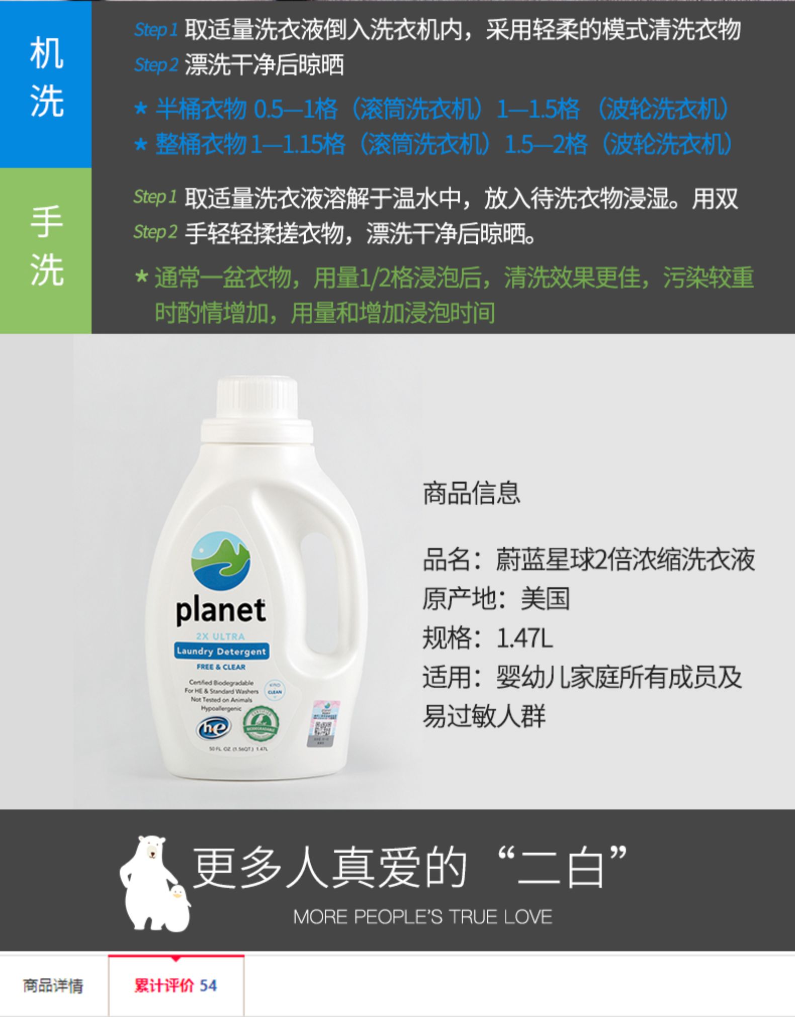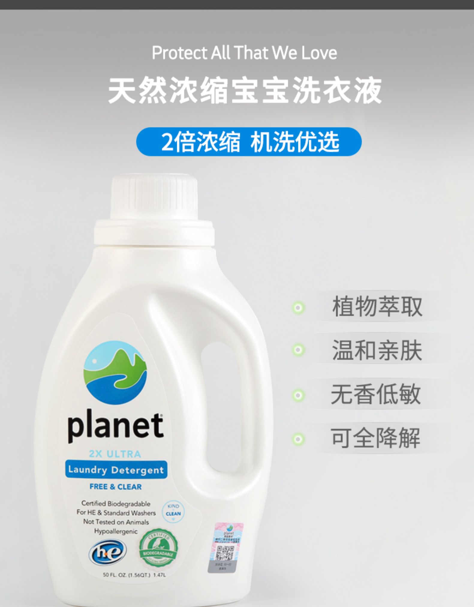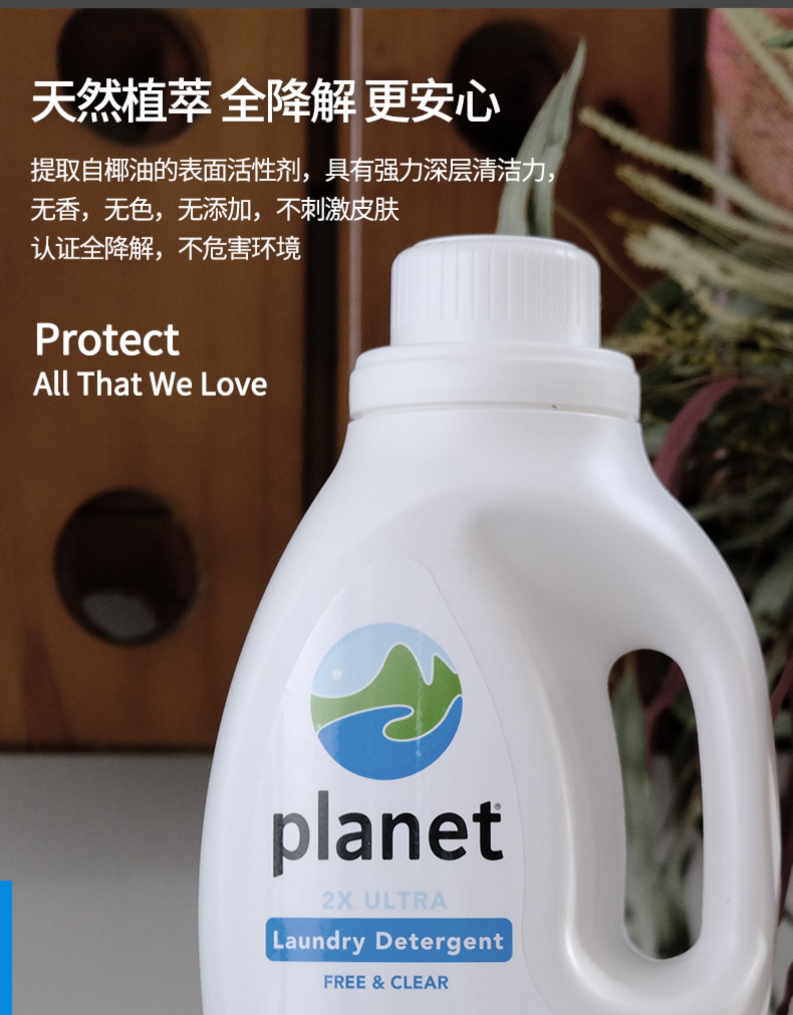 美国蔚蓝星球planet2倍浓缩全降解洗衣液妈妈宝宝专用