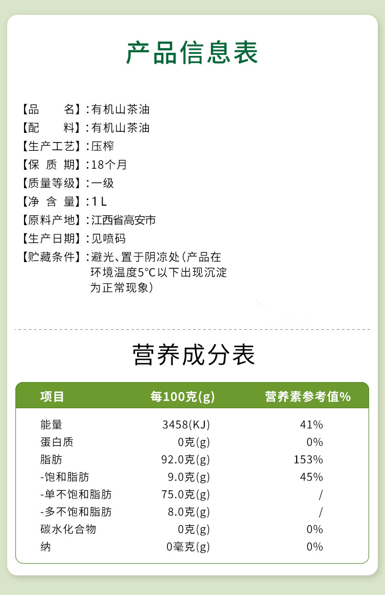 神农唛有机山茶油1L/瓶 家庭装 A-5718 (效期27-7)