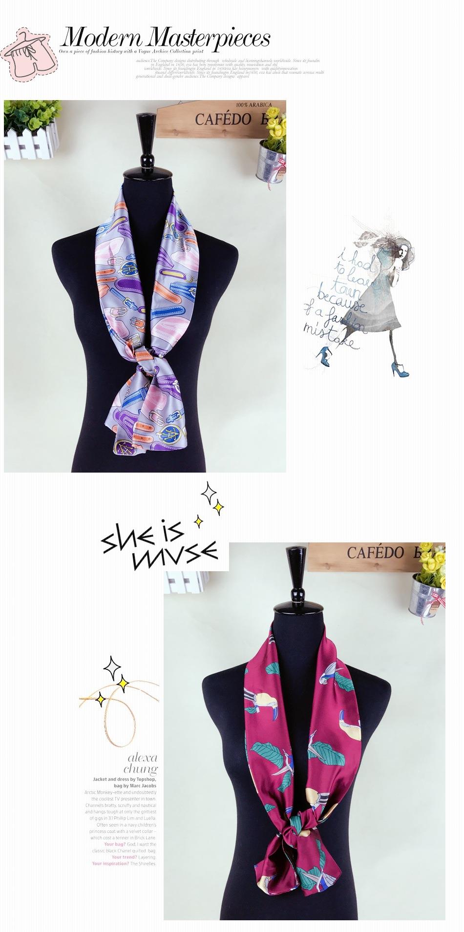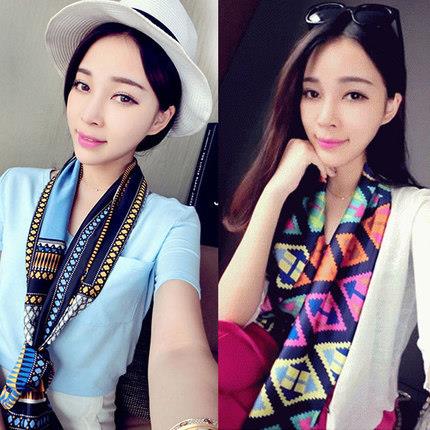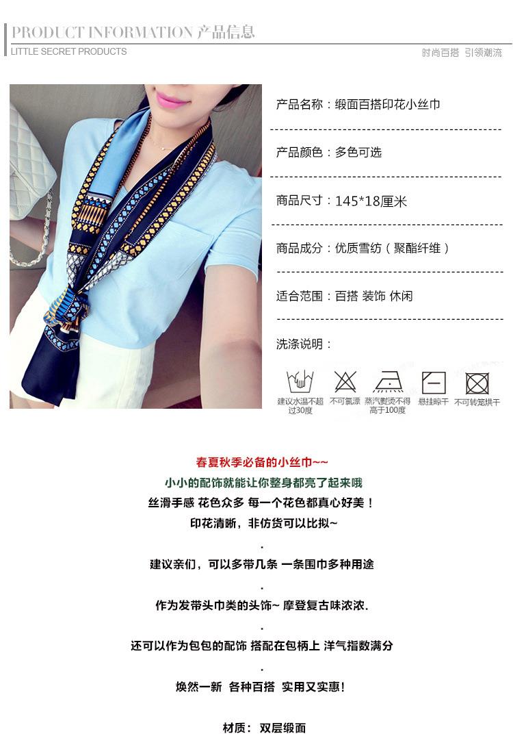 明星同款小领巾长条缎面雪纺印花丝巾女百搭围巾领带礼品