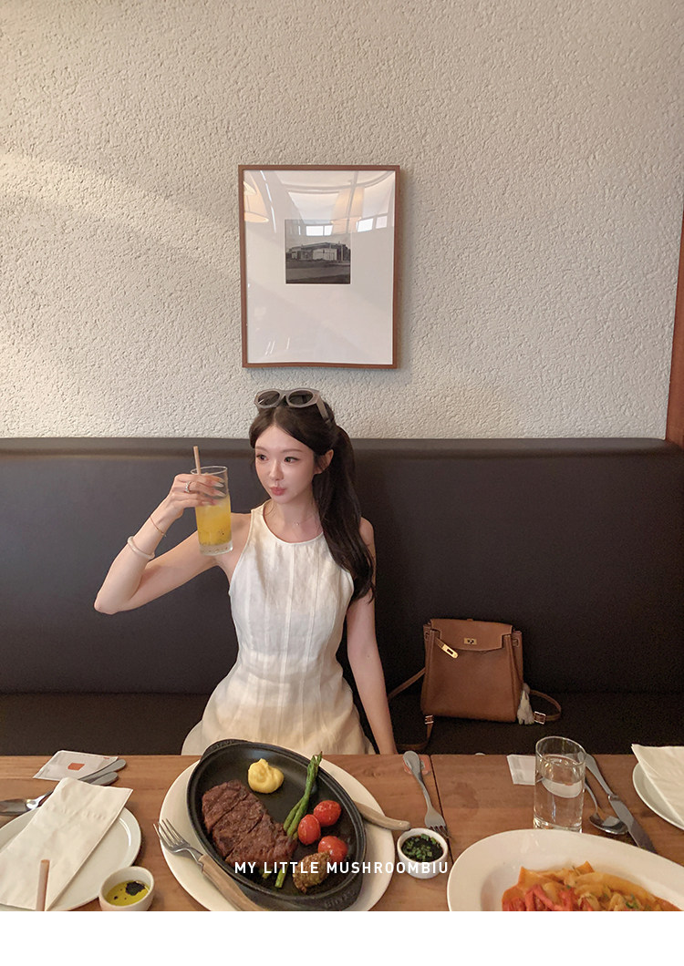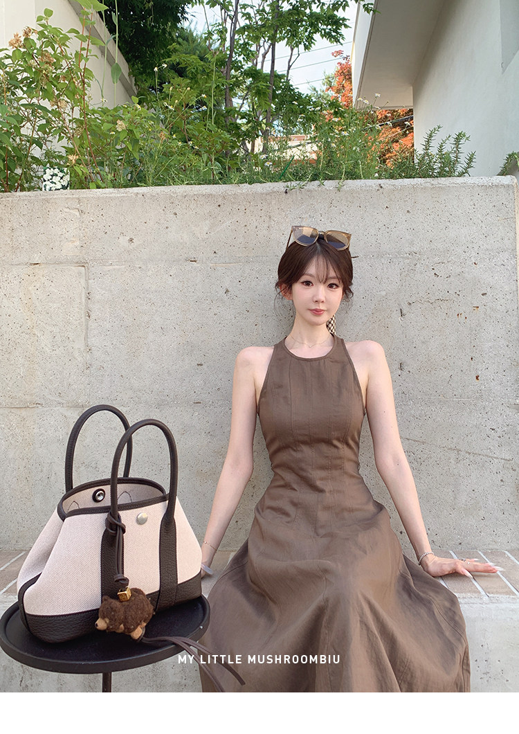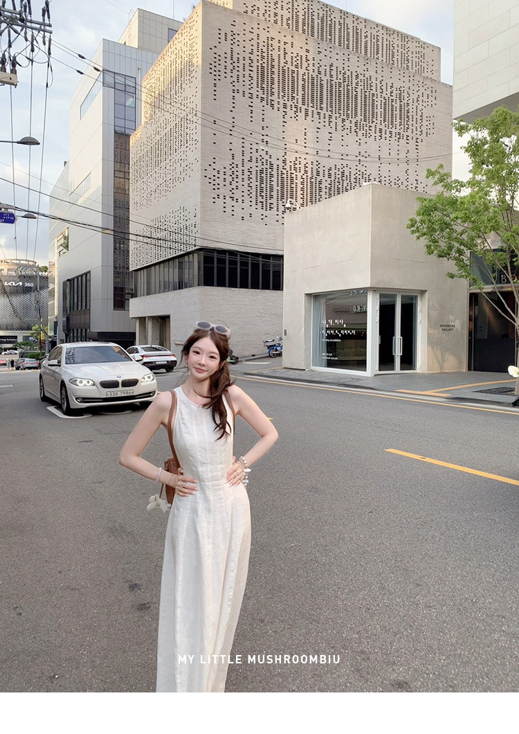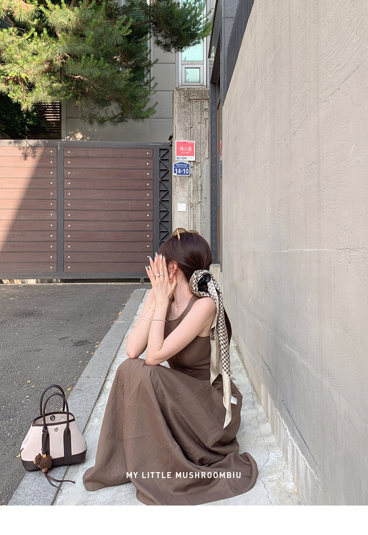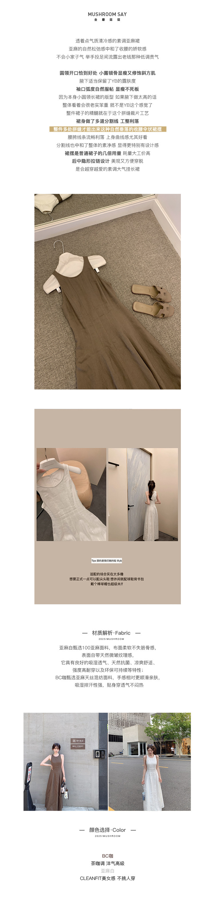 金蘑菇菇 素调美人 BC亚麻裙 / 呼吸感气质收腰亚麻长裙