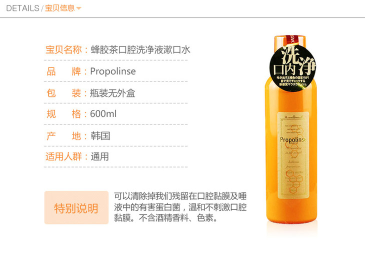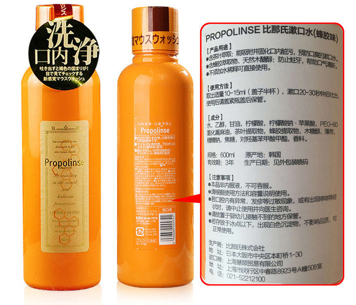 【保税仓】Propolinse 日本比那氏蜂胶漱口水(橙)