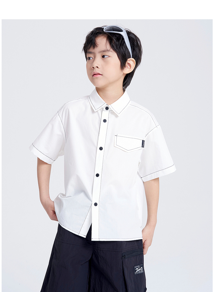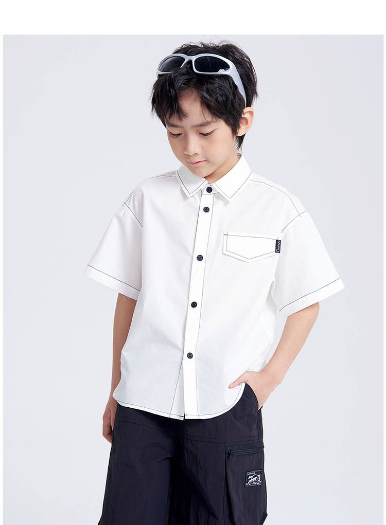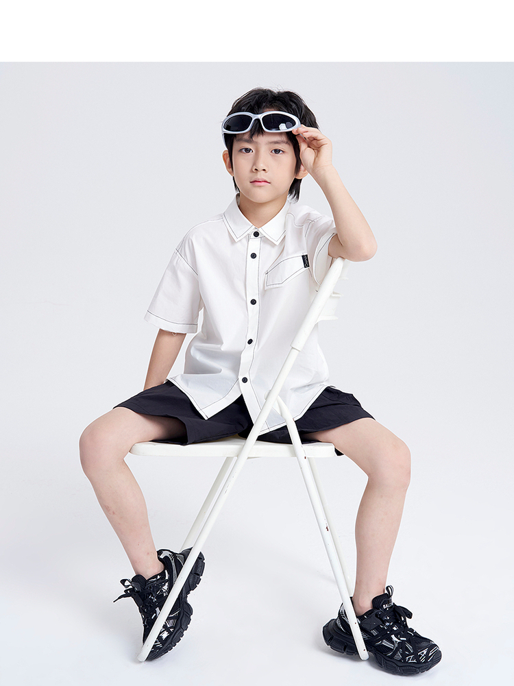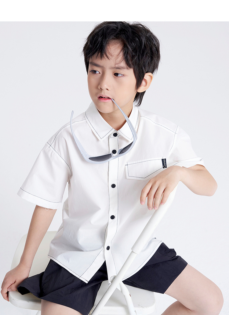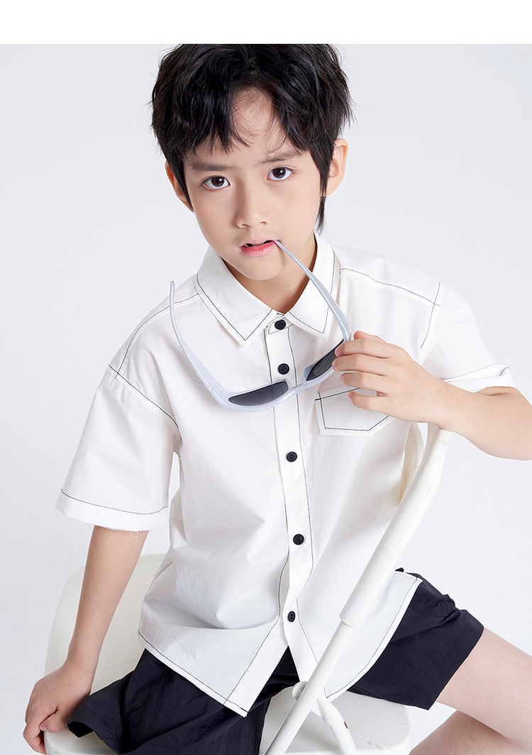 笛莎千与2025夏新款男童休闲百搭男童短袖衬衫
