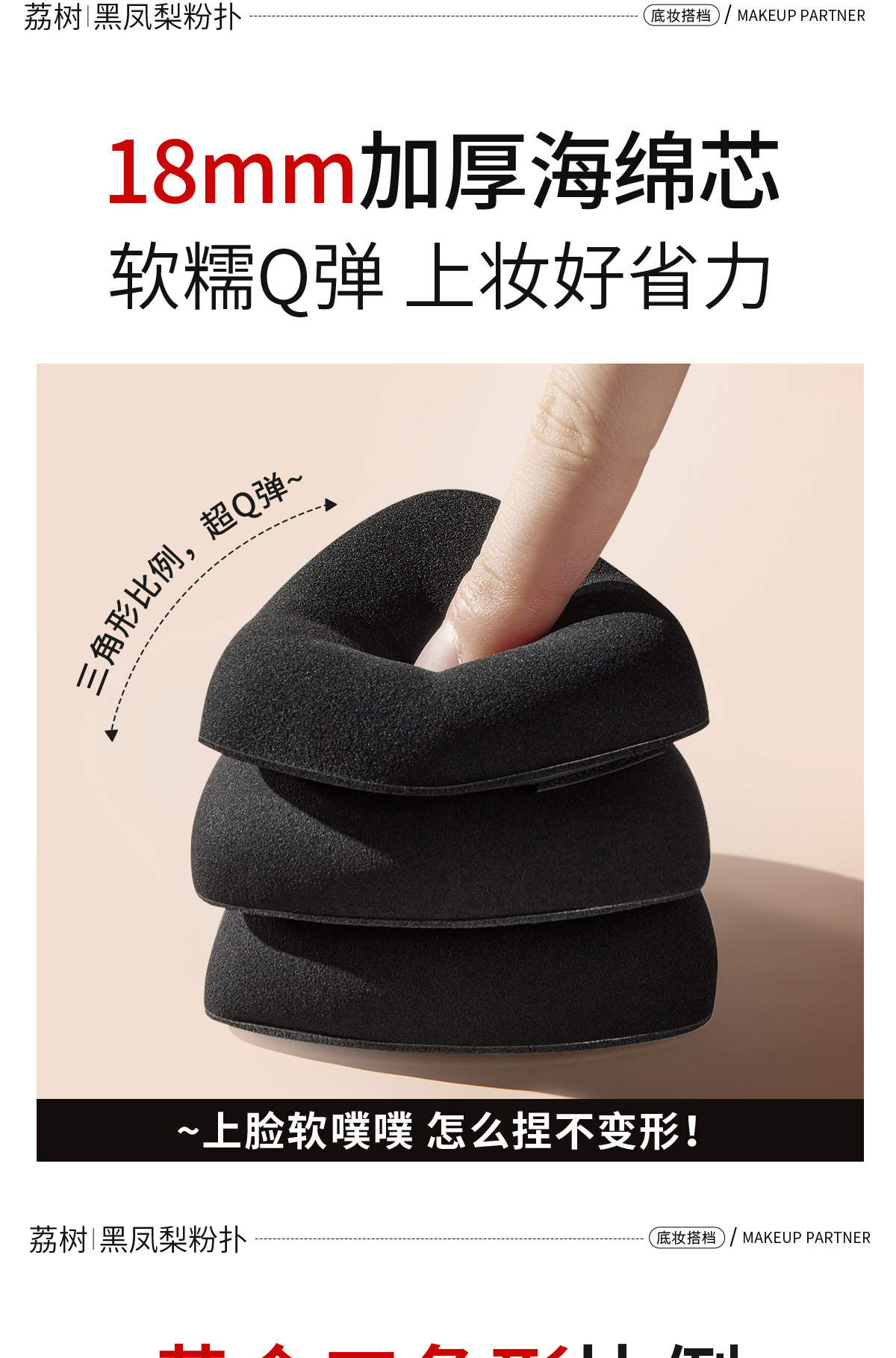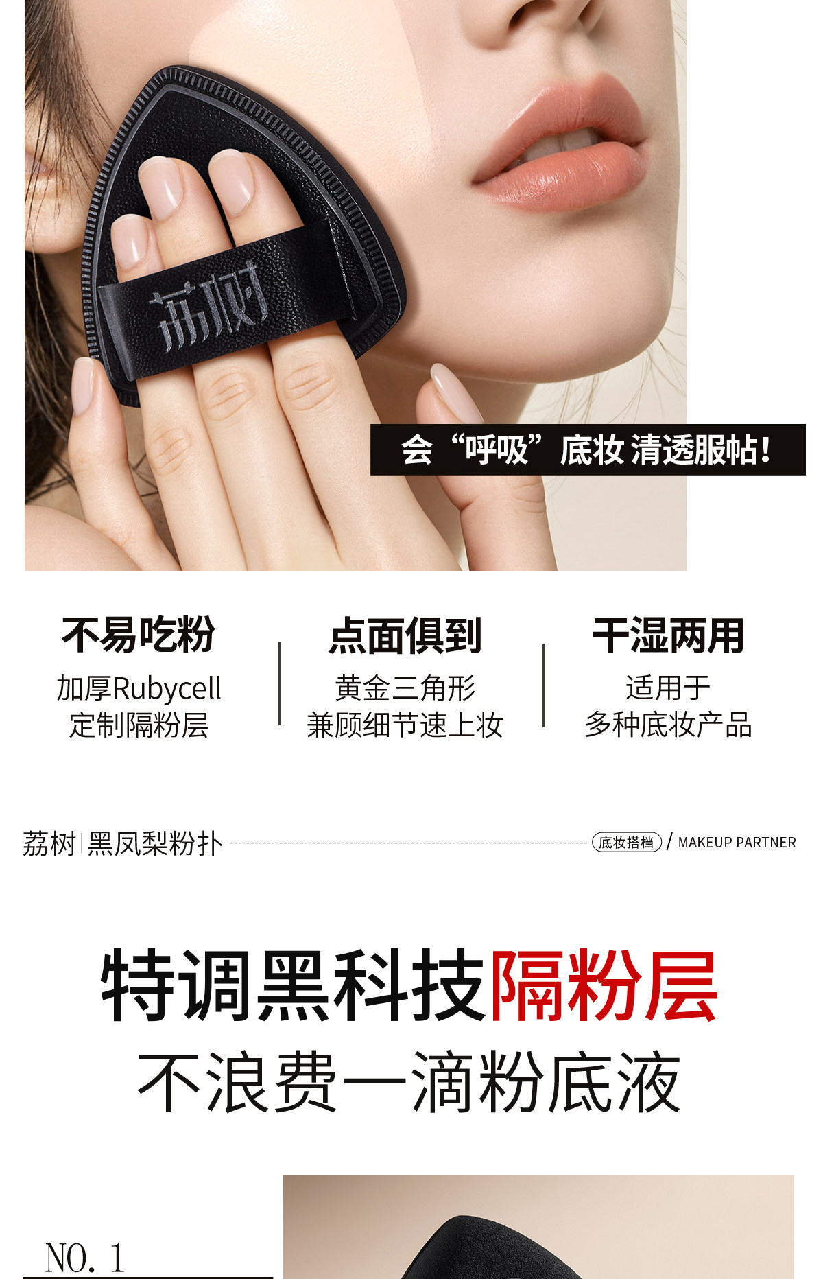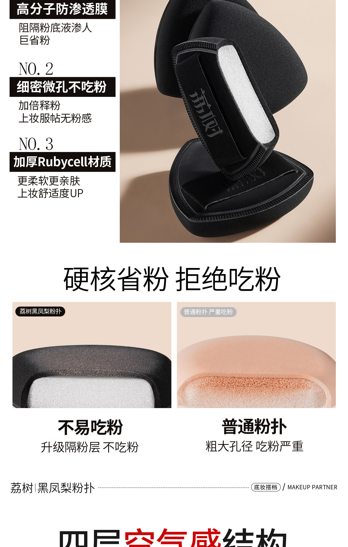 荔树黑凤梨粉扑 不吃粉底液专用定化妆超软干湿两用美妆蛋底刷