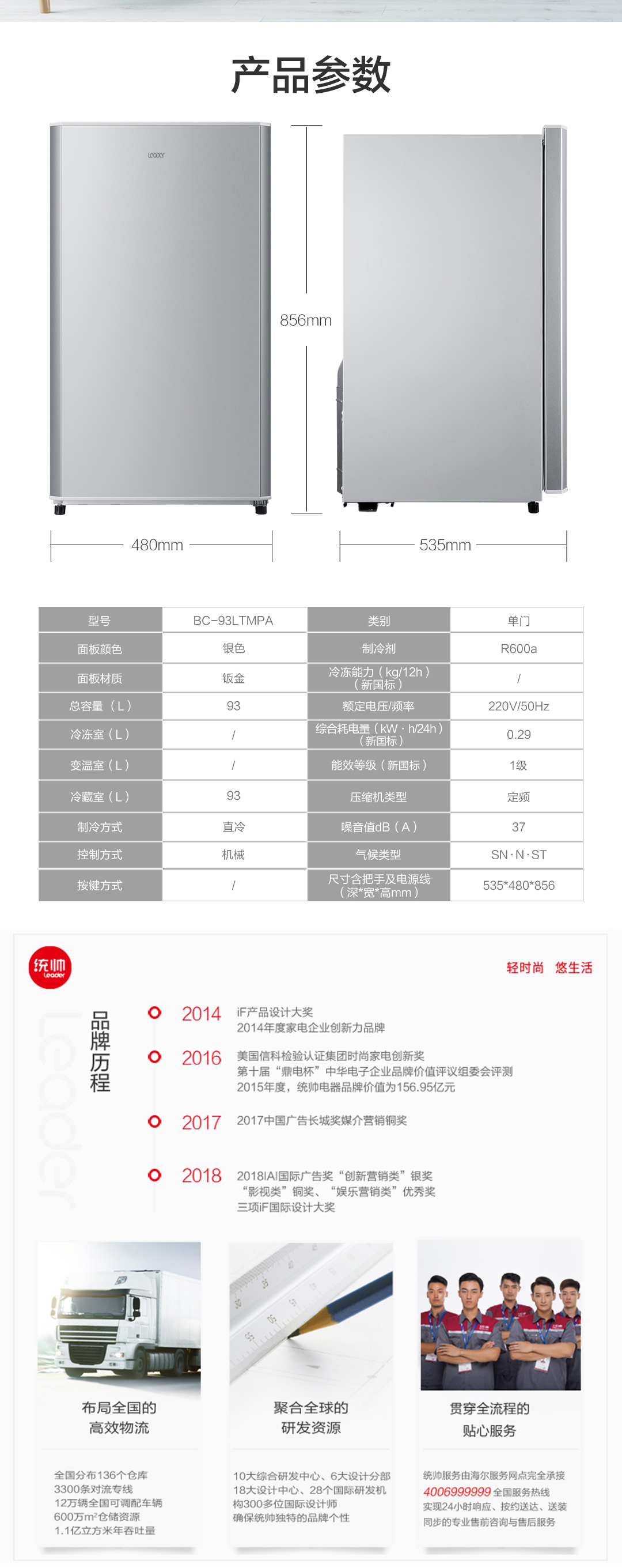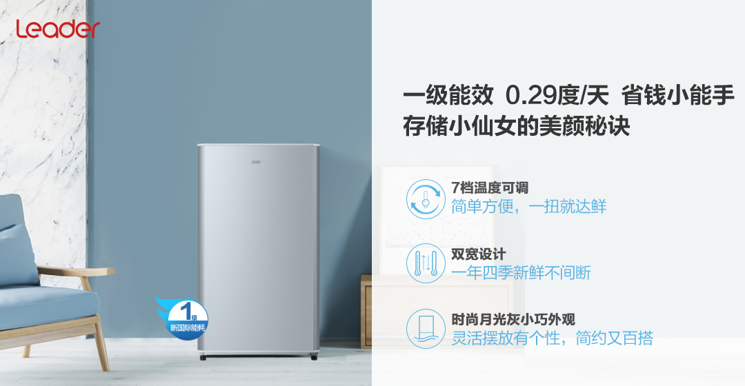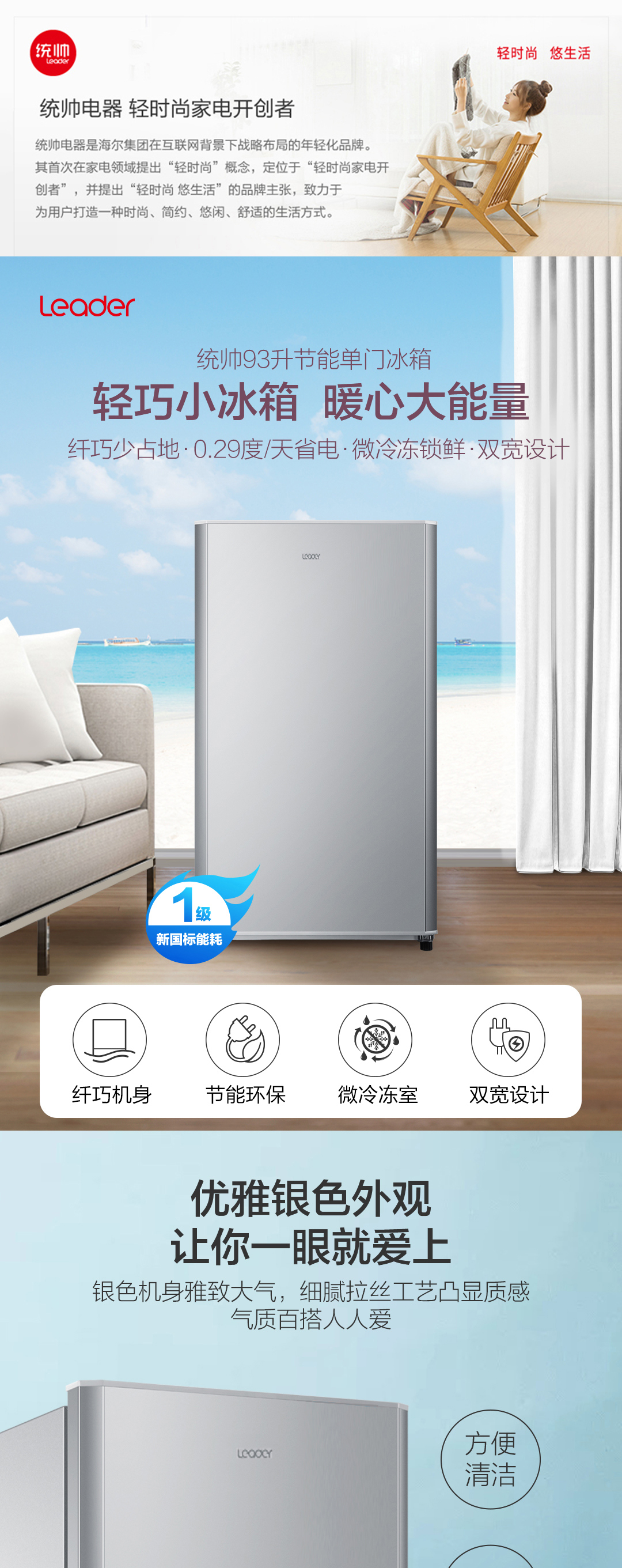 统帅(Leader)海尔出品93L小型单开门家用租房宿舍一级节能电冰箱