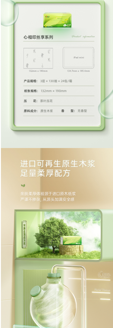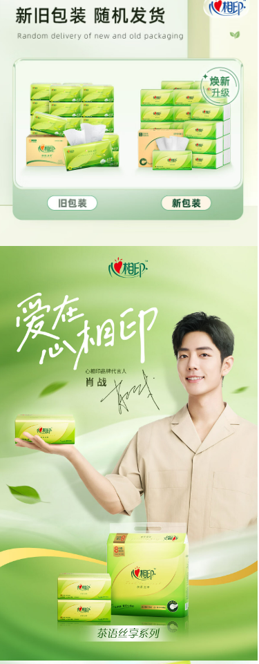 心相印抽纸【肖战同款】茶语丝享 真S码3层110抽*24包 纸巾(整箱销售)