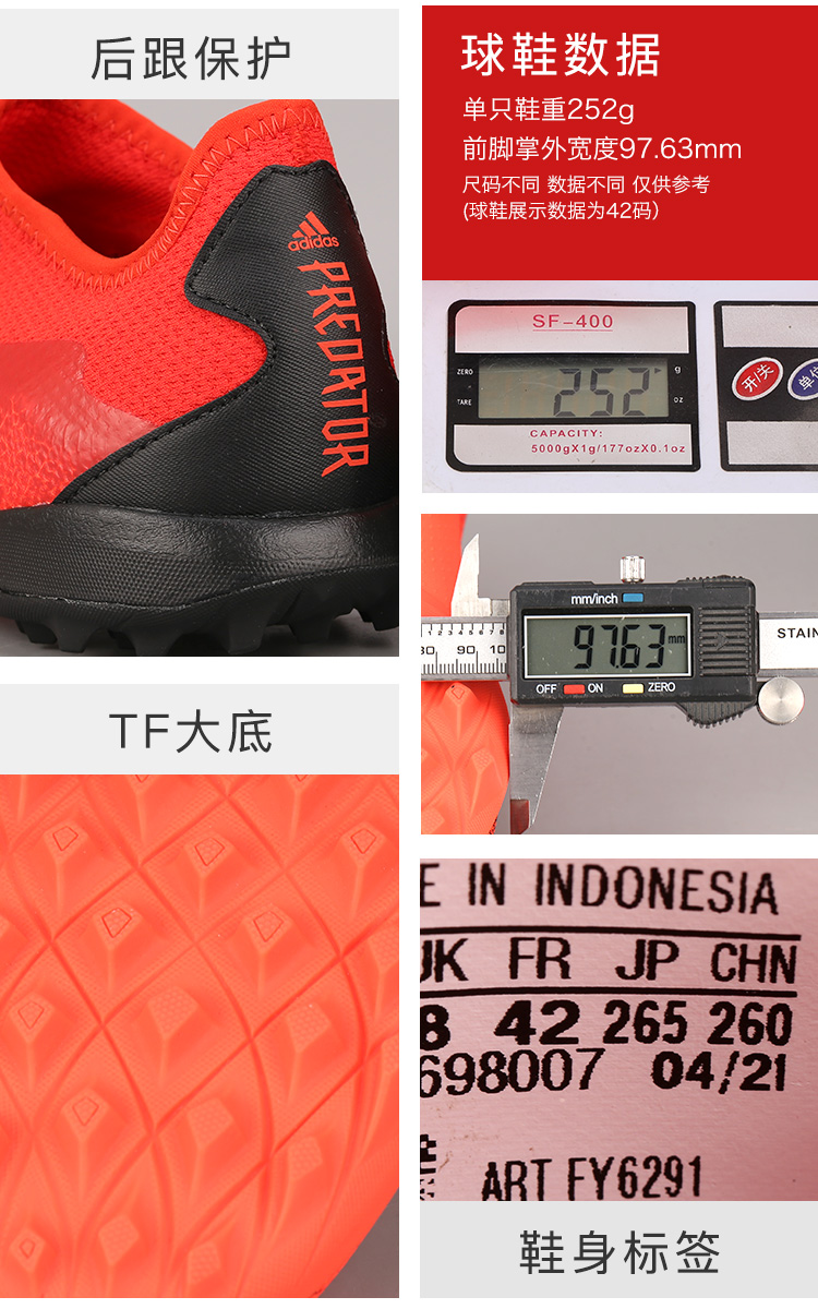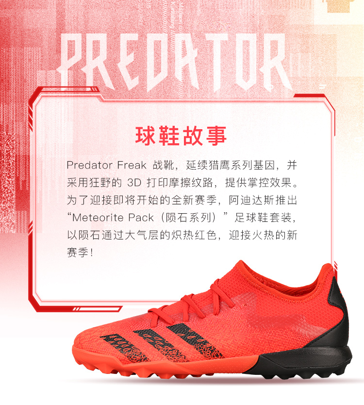 ADIDAS/阿迪达斯 PREDATOR FREAK .3L TF碎钉猎鹰中端低帮足球鞋FY6291