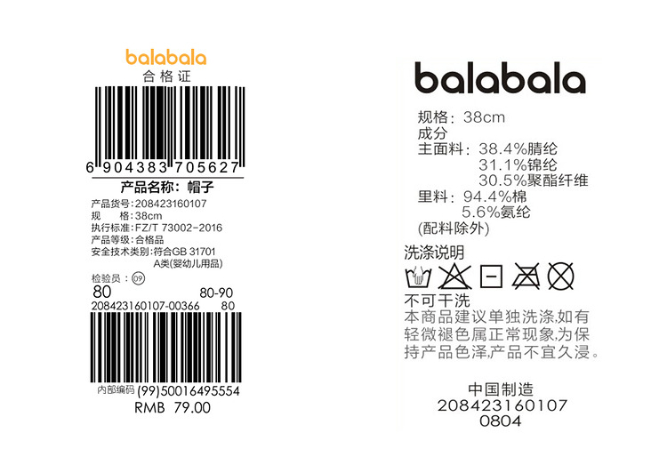 巴拉巴拉宝宝帽子冬季保暖女童针织护耳帽婴幼儿柔软舒适时尚可爱