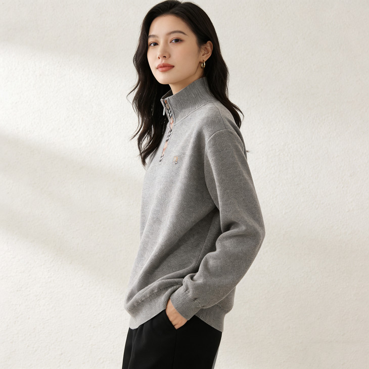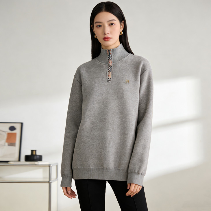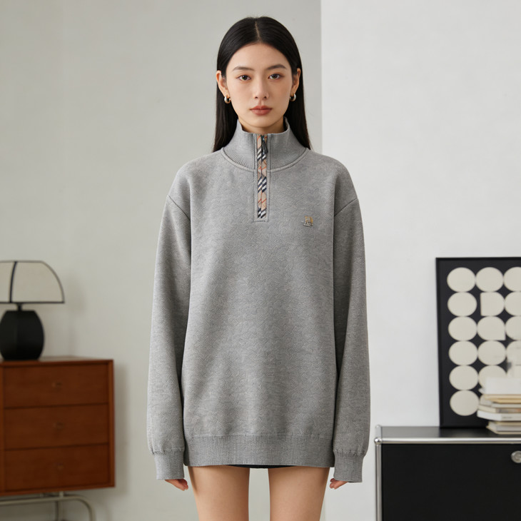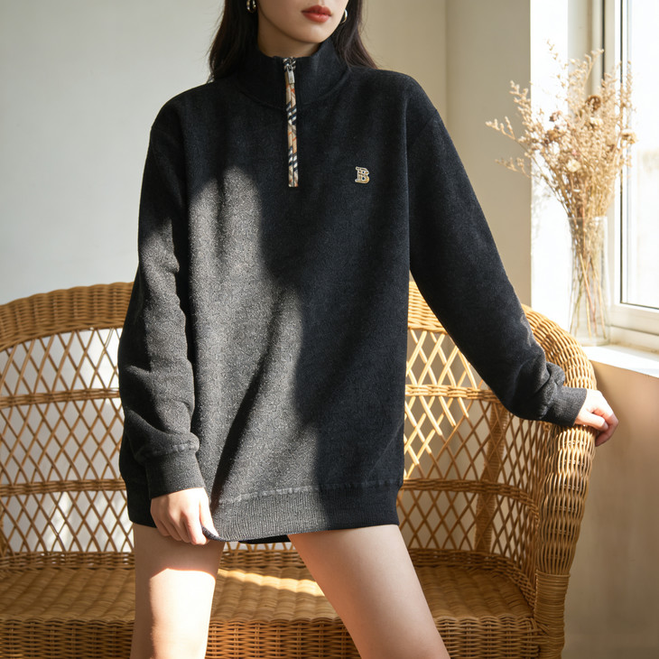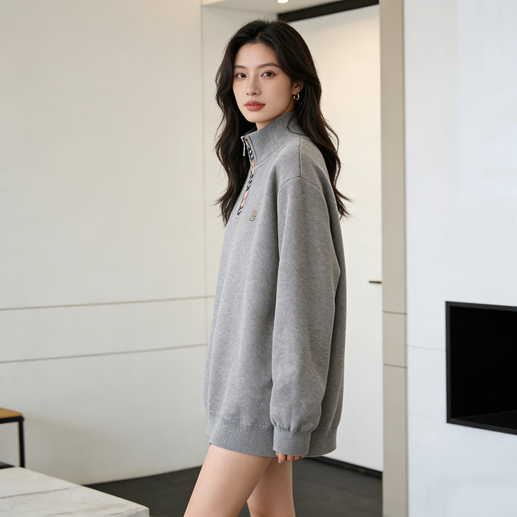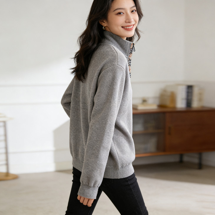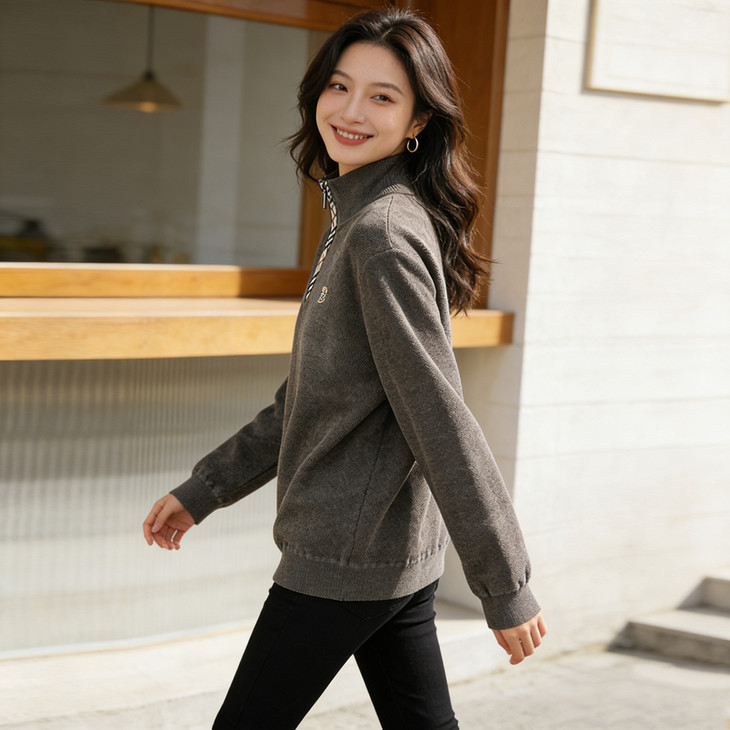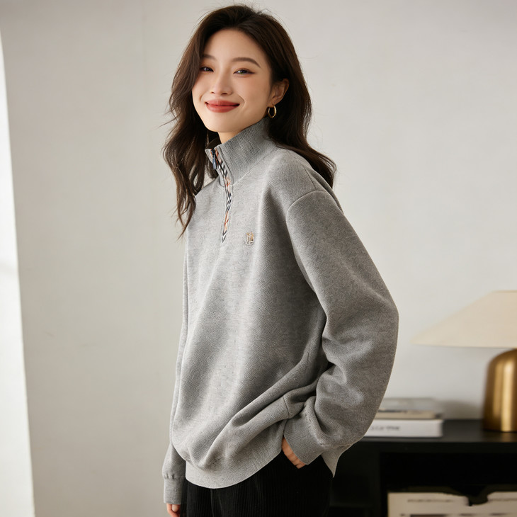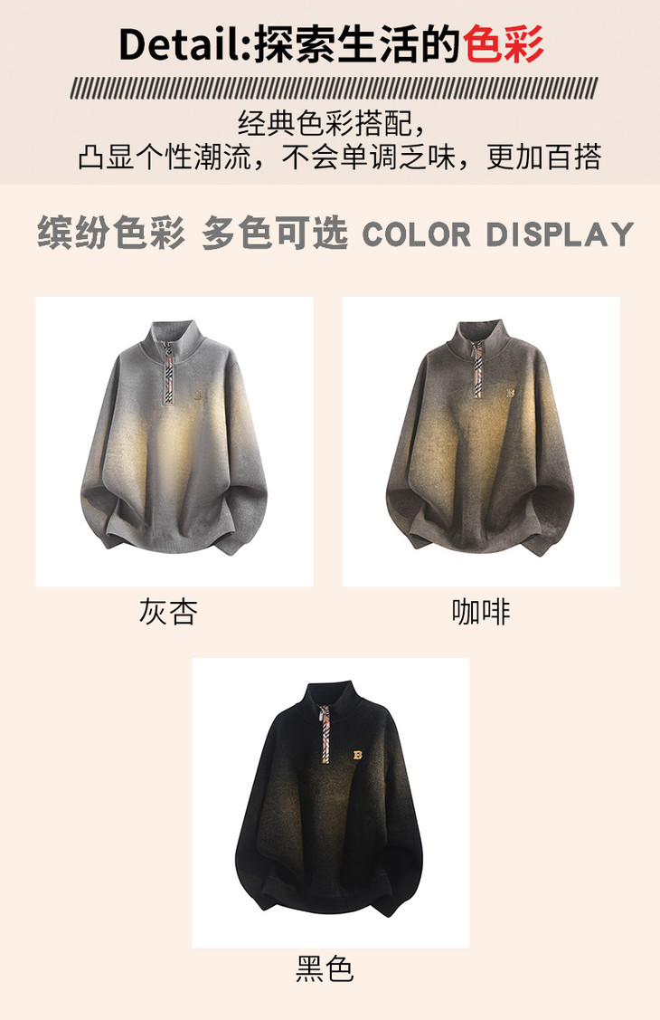 ✅细节实拍 🔺半拉链领口设计,舒适不勒脖子,穿脱方便,内搭单穿都可以 🔺袖口做工精细,下摆设计,立体修身,简单上档次 🔺宽松版型,剪裁立体,上身有型,贴合身材
