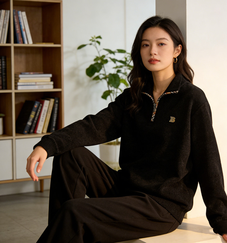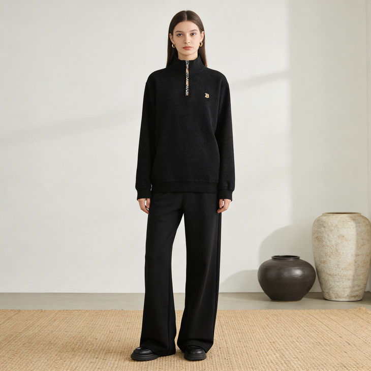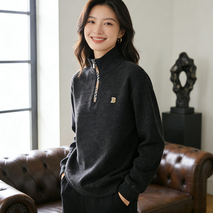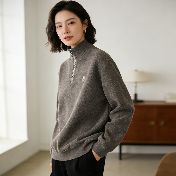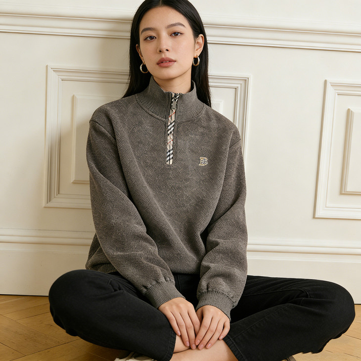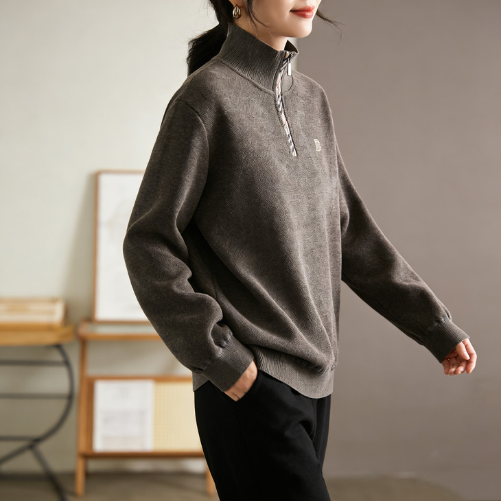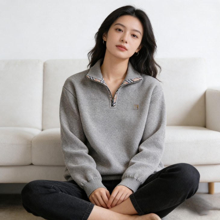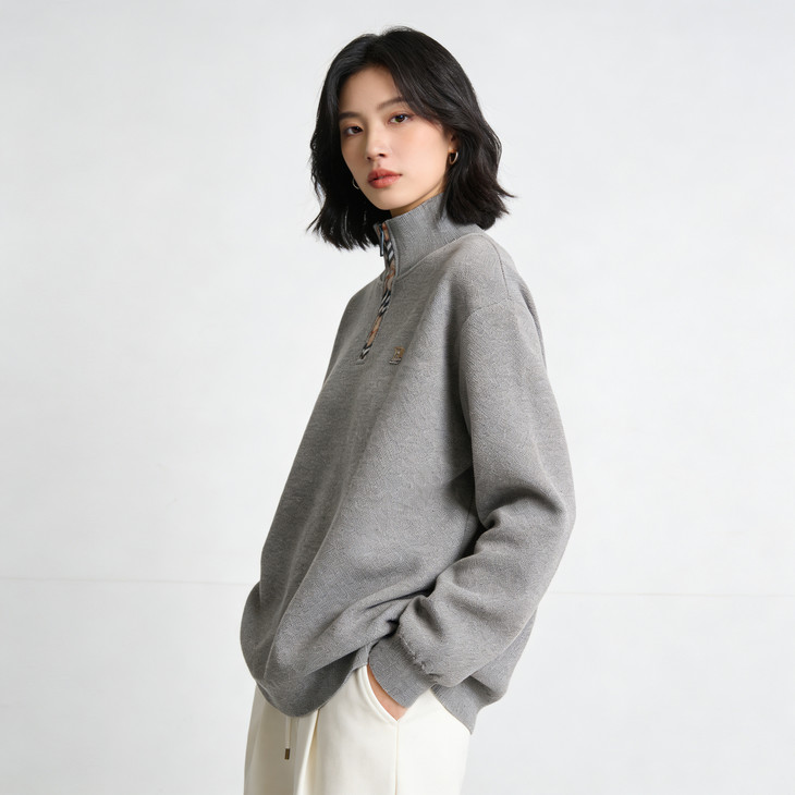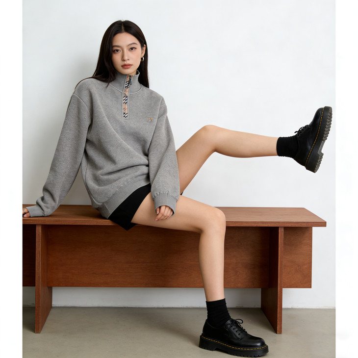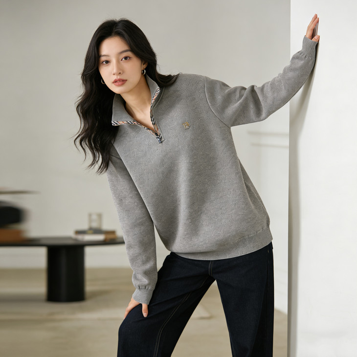 ✅细节实拍 🔺半拉链领口设计,舒适不勒脖子,穿脱方便,内搭单穿都可以 🔺袖口做工精细,下摆设计,立体修身,简单上档次 🔺宽松版型,剪裁立体,上身有型,贴合身材
