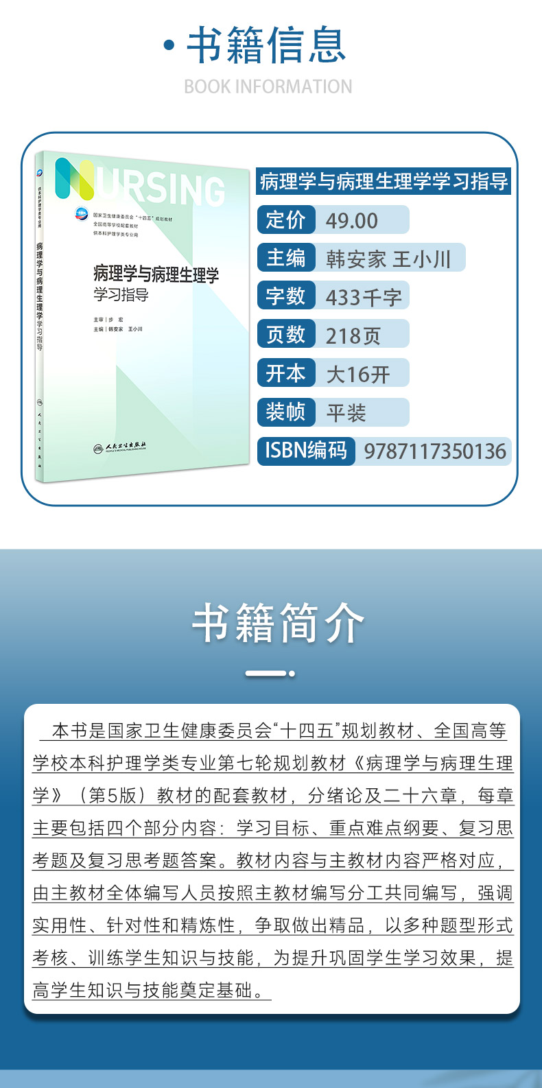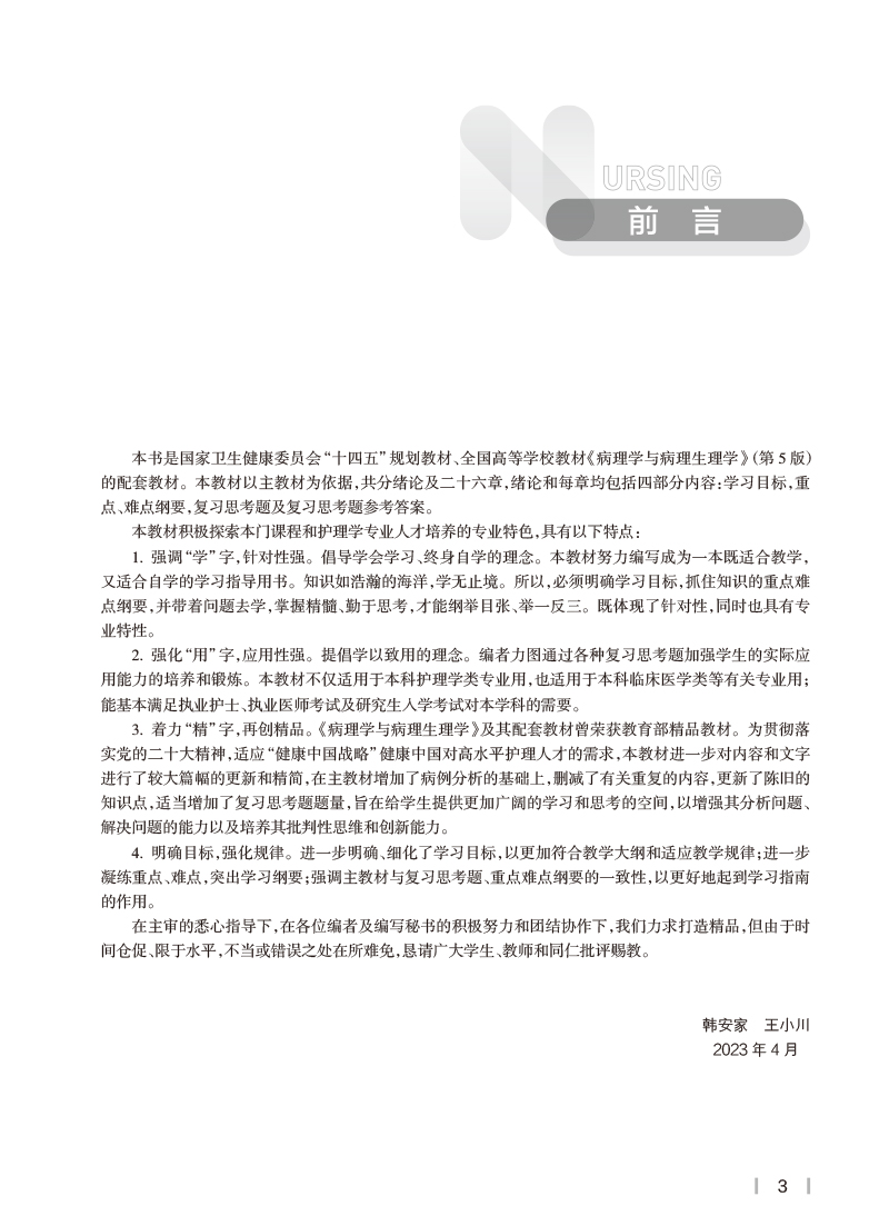 病理学与病理生理学学习指导 韩安家 王小川 十四五 全国高等学校第7版七轮本科护理类专业配套教材 人民卫生出版社9787117350136