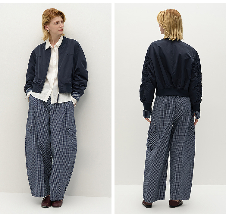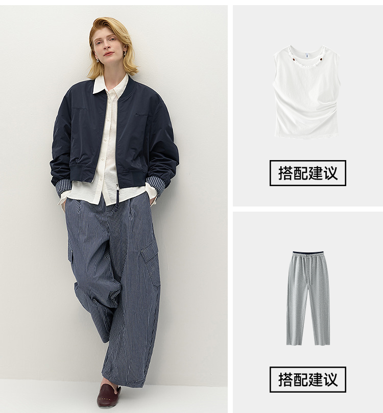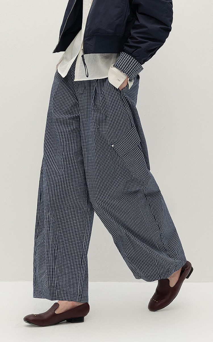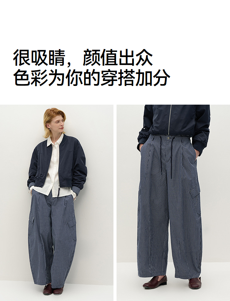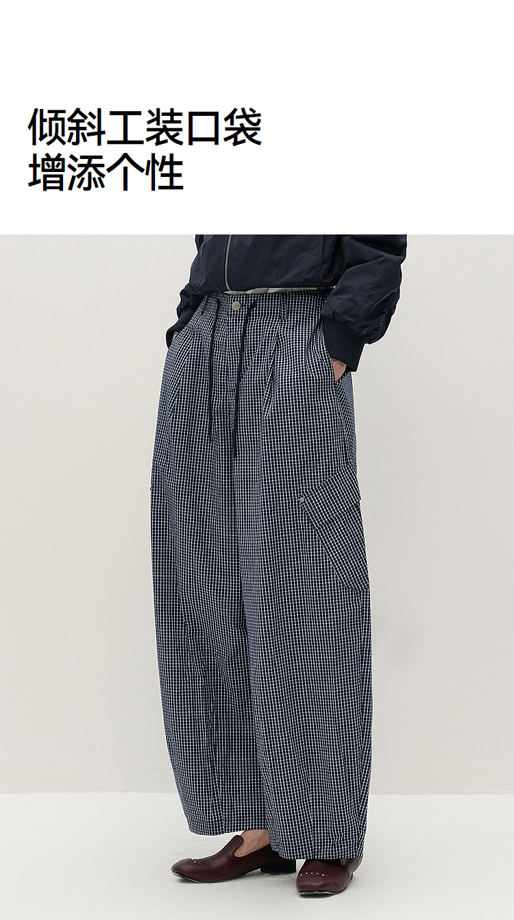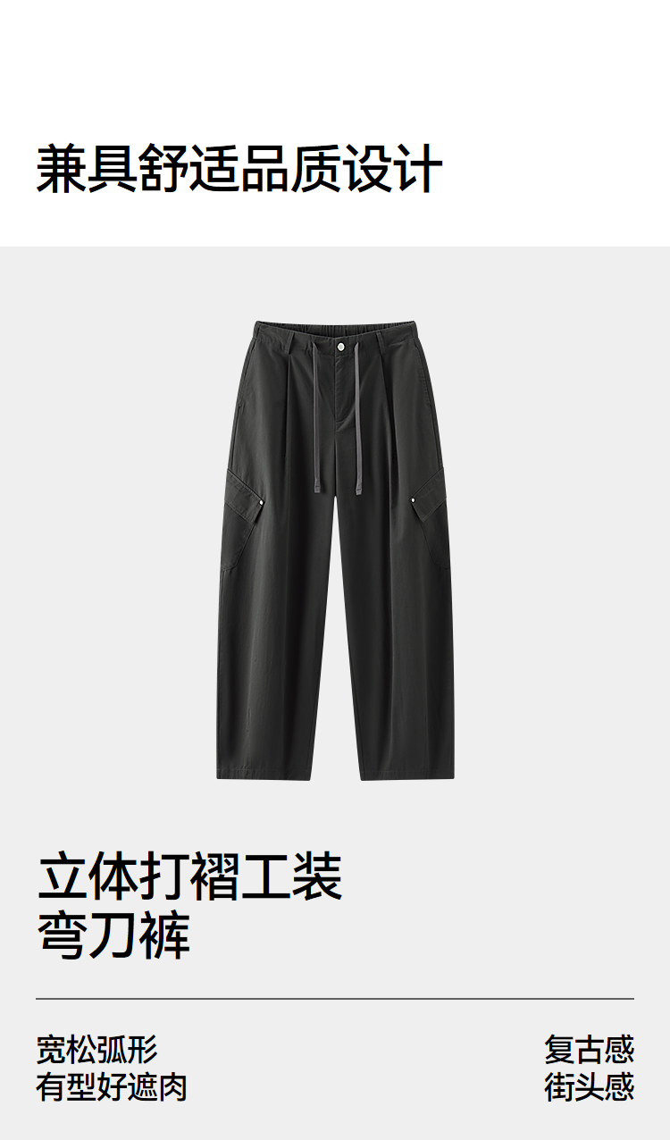 商场同款|森马休闲裤女秋打褶弯刀裤宽松2025新款复古高街工装裤