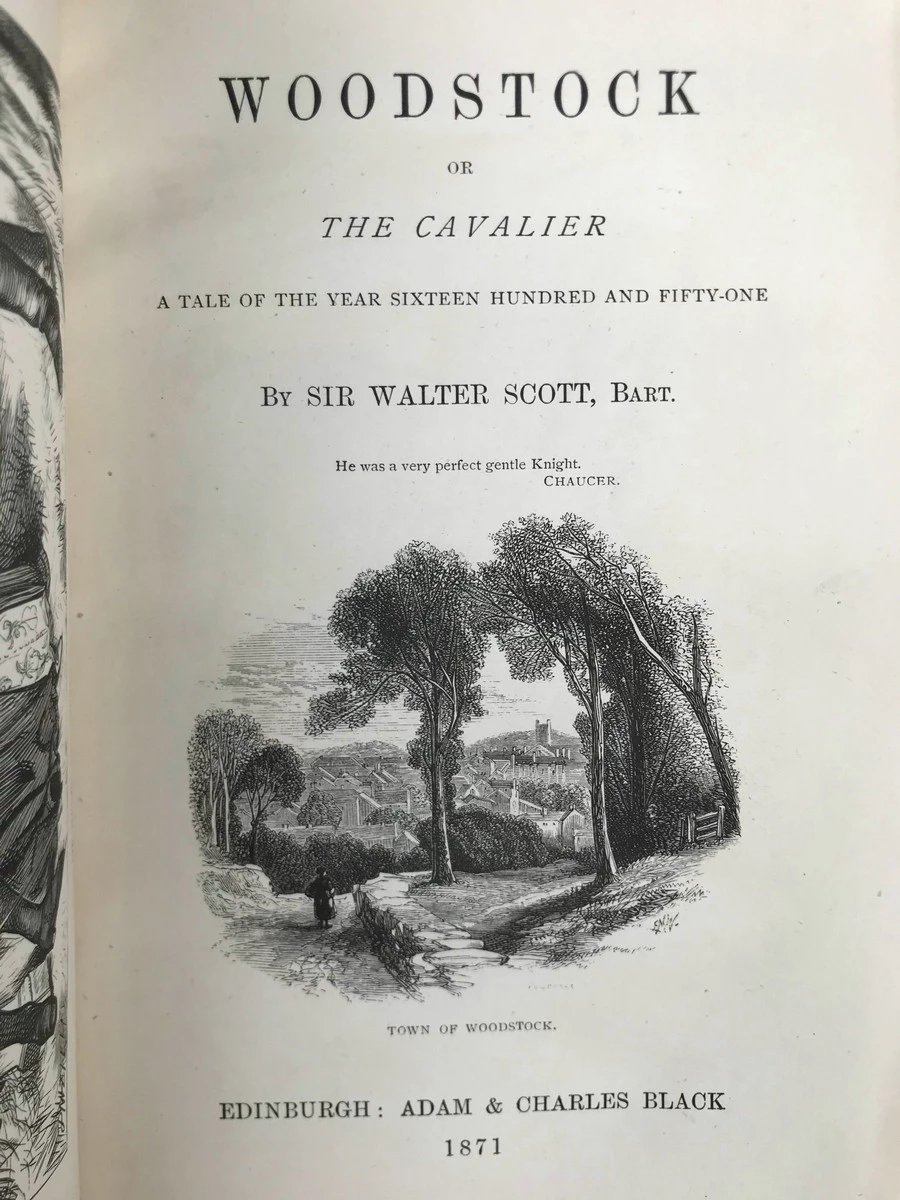 1871年 司各特《伍德斯托克》 卷首配版画插图 真皮精装32开