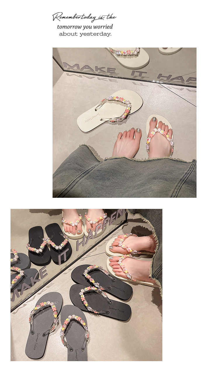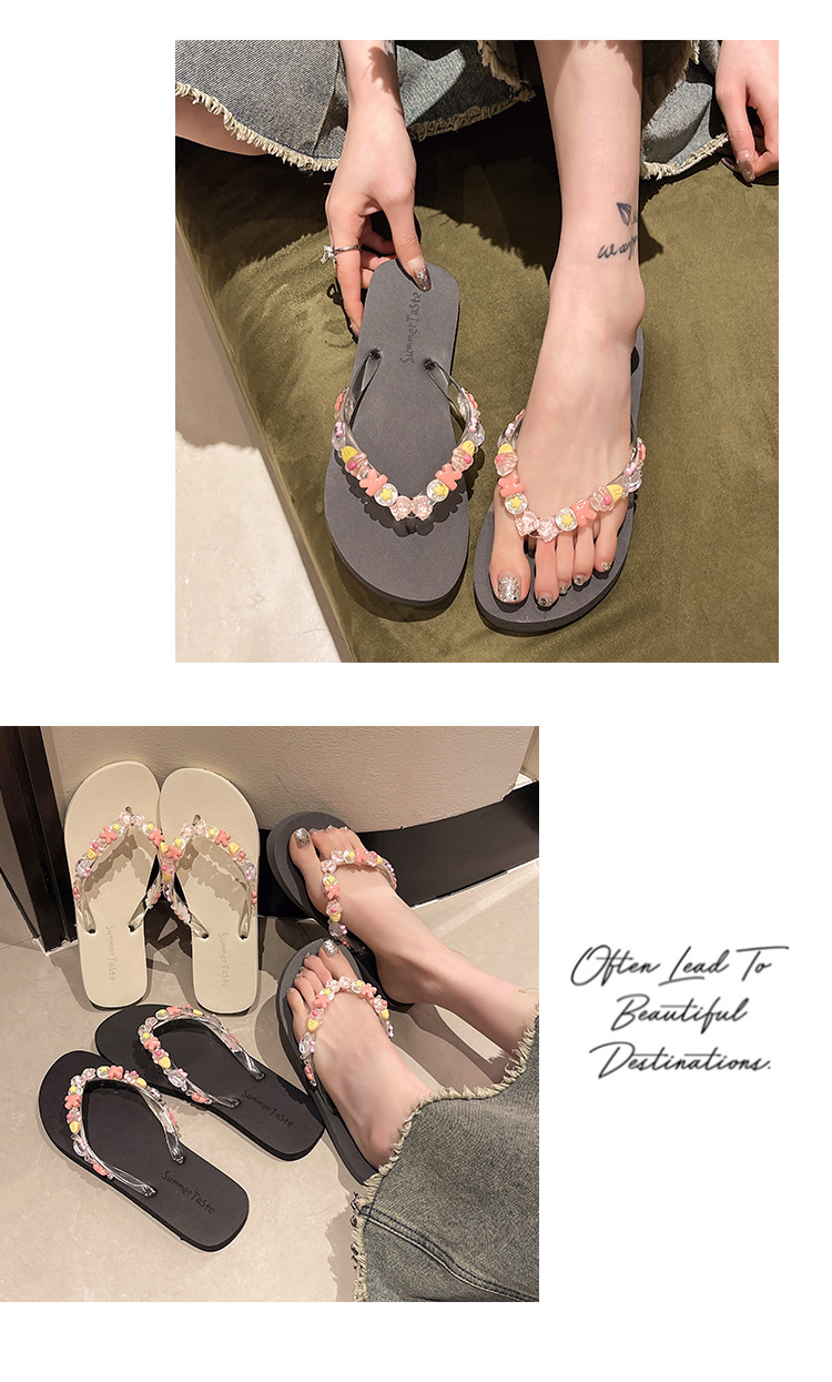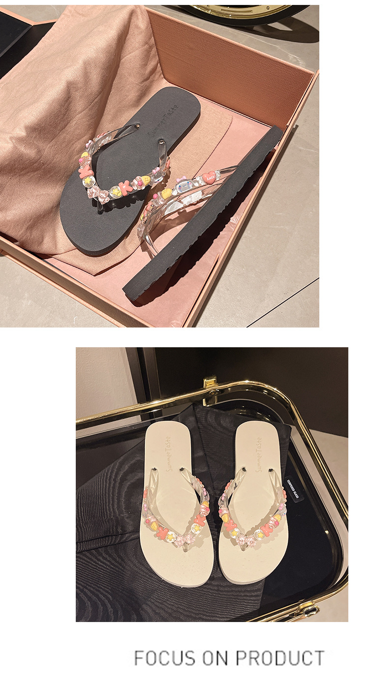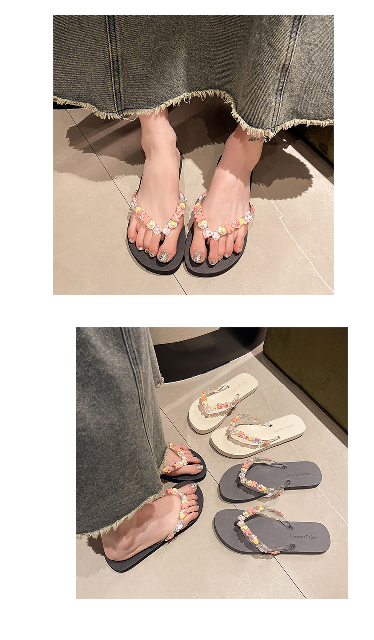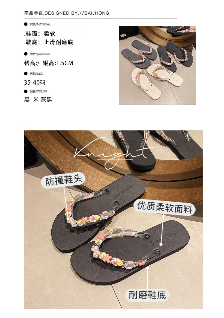 【透明清新!夏季必备】人字拖女夏季室内沙滩鞋海边外穿eva踩屎感可爱洗澡透明花朵防滑.xb