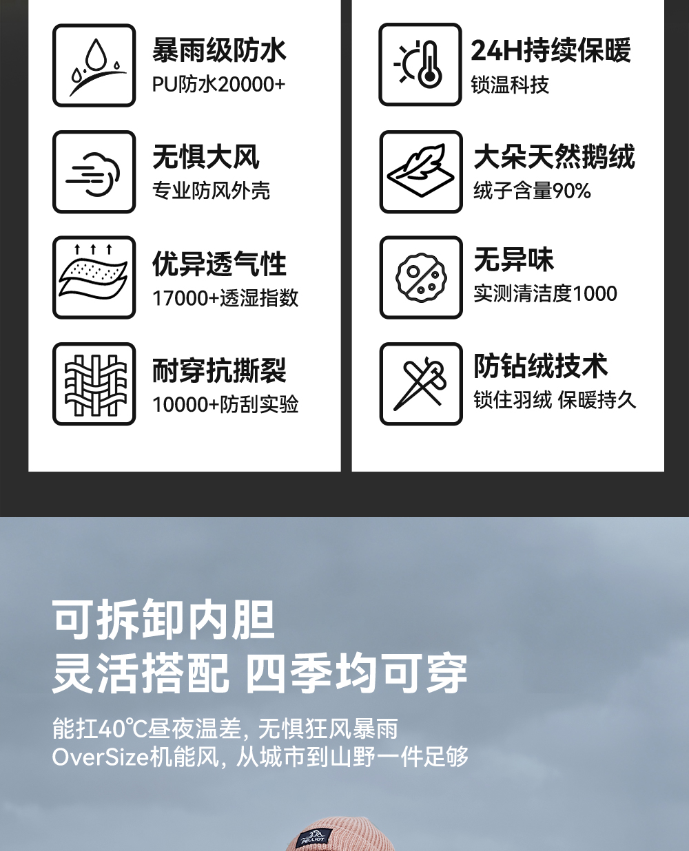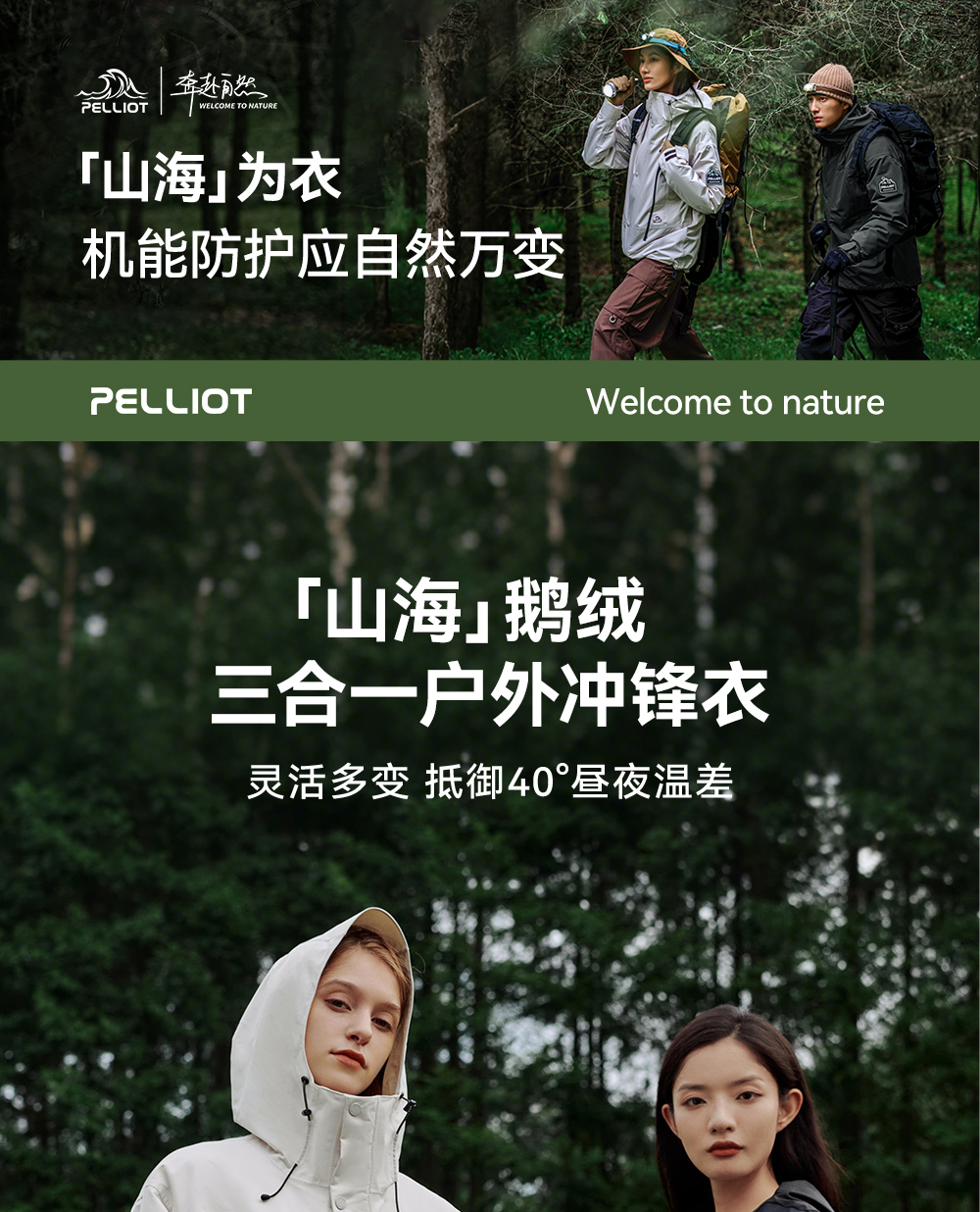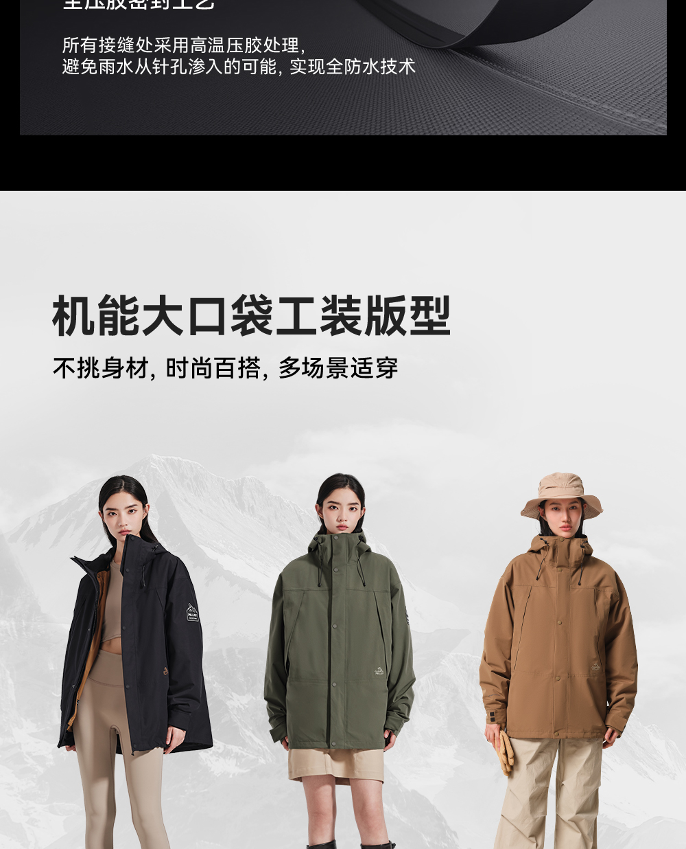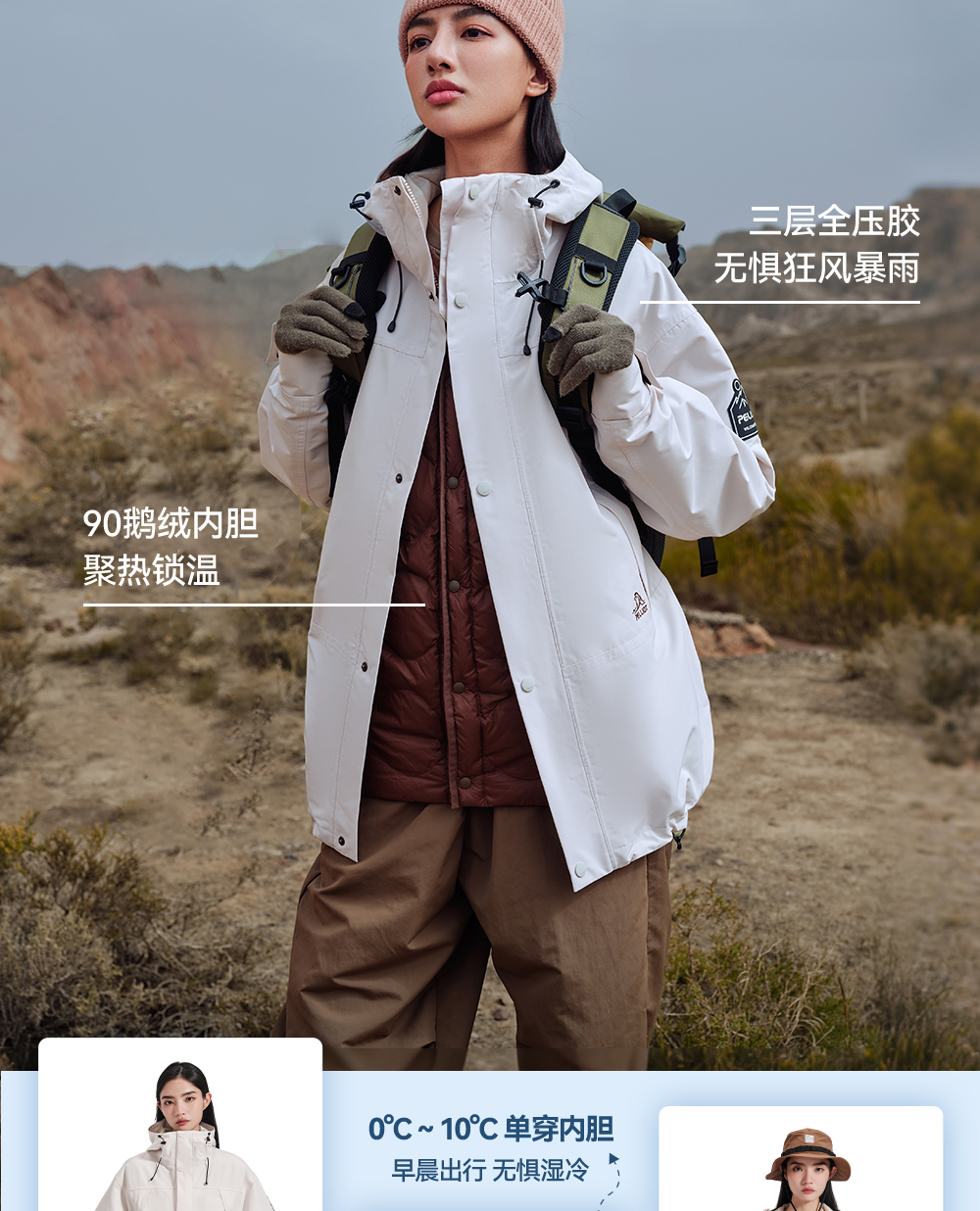 【山海】伯希和户外三合一羽绒冲锋衣女鹅绒内胆露营防水登山服男
