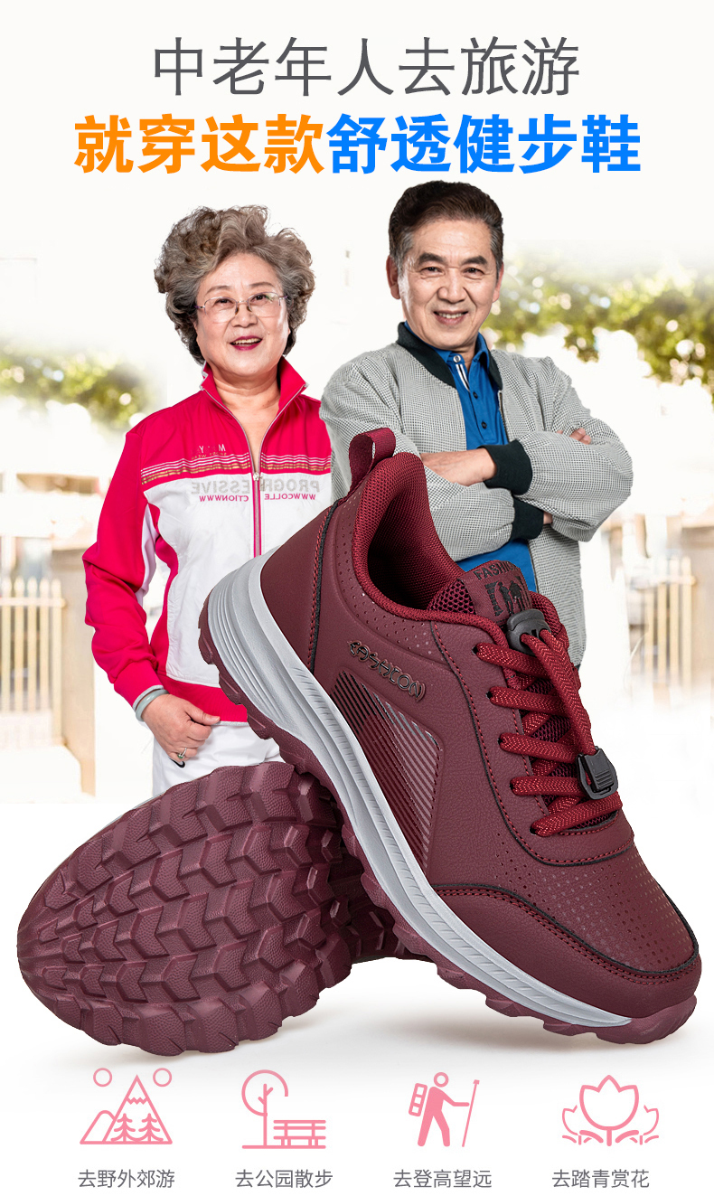 信诺中老年健步鞋女春秋款妈妈运动鞋休闲软底防滑轻便皮面老人鞋XN2262-1/XN2262-2