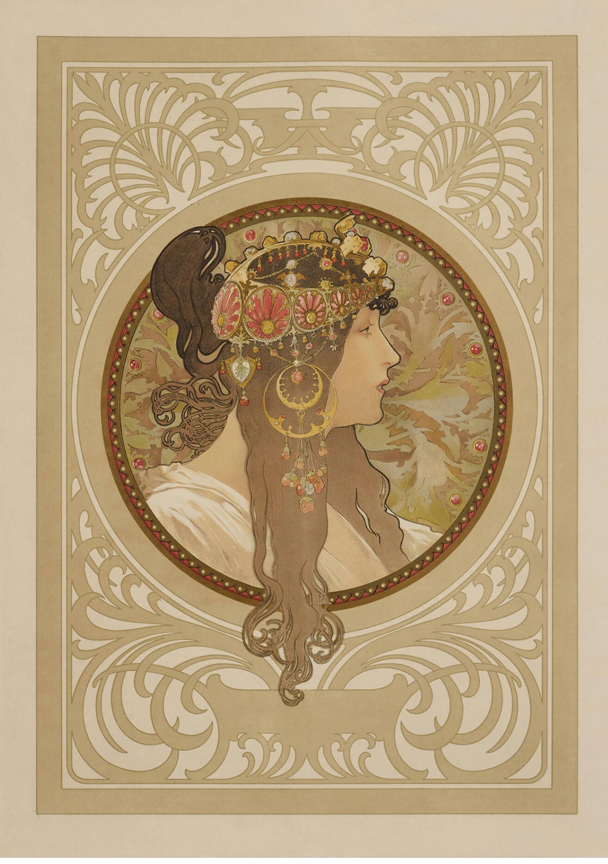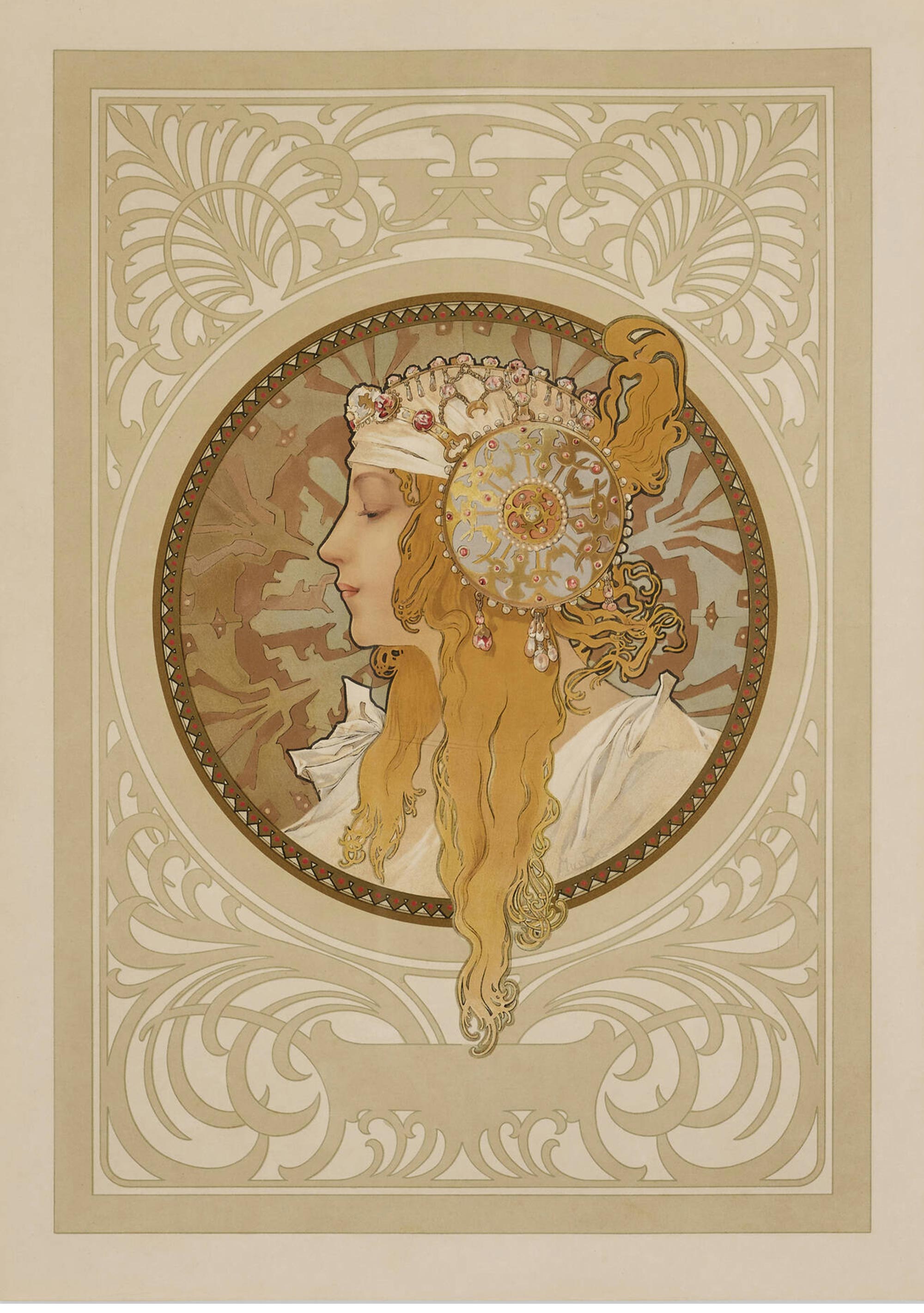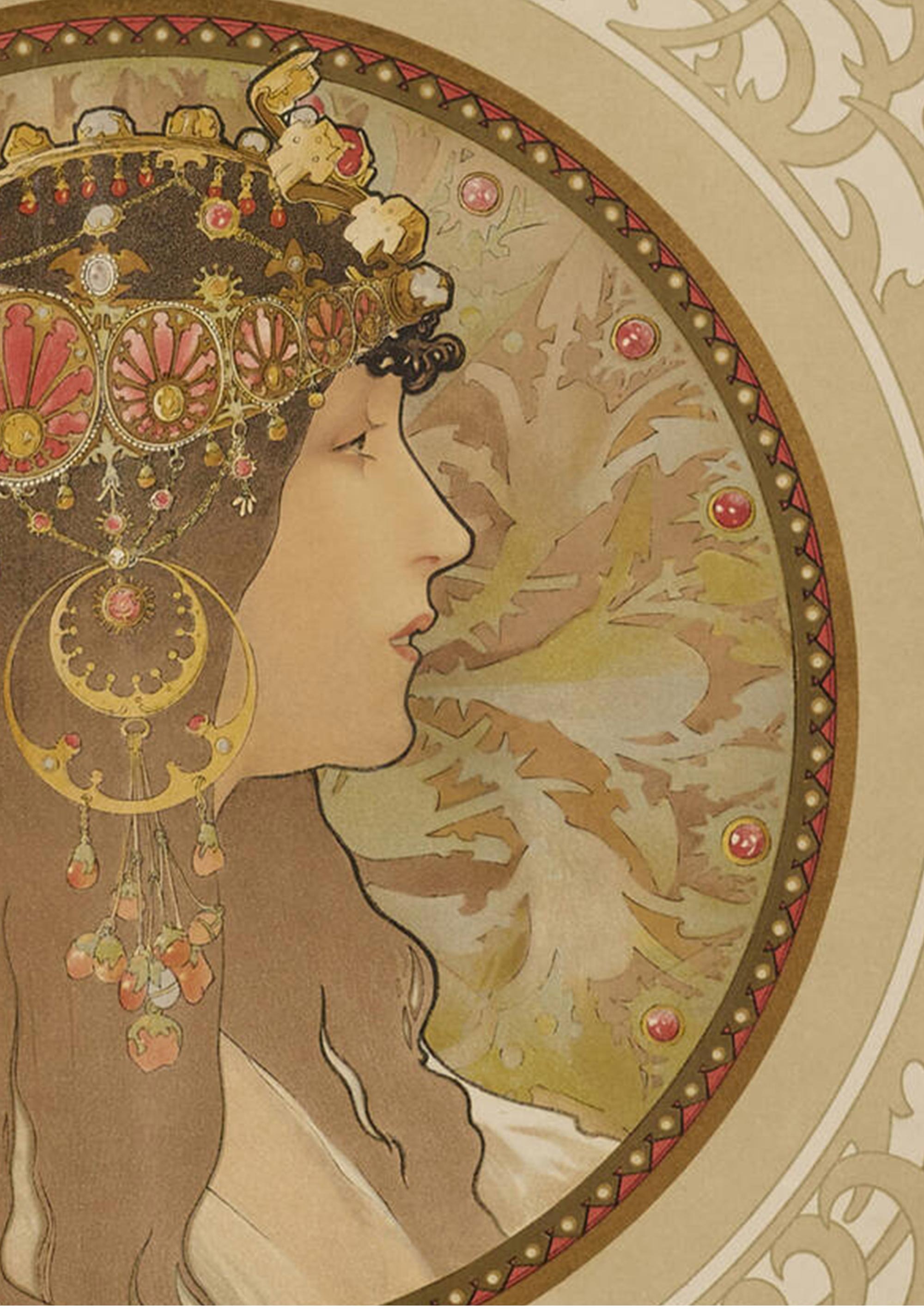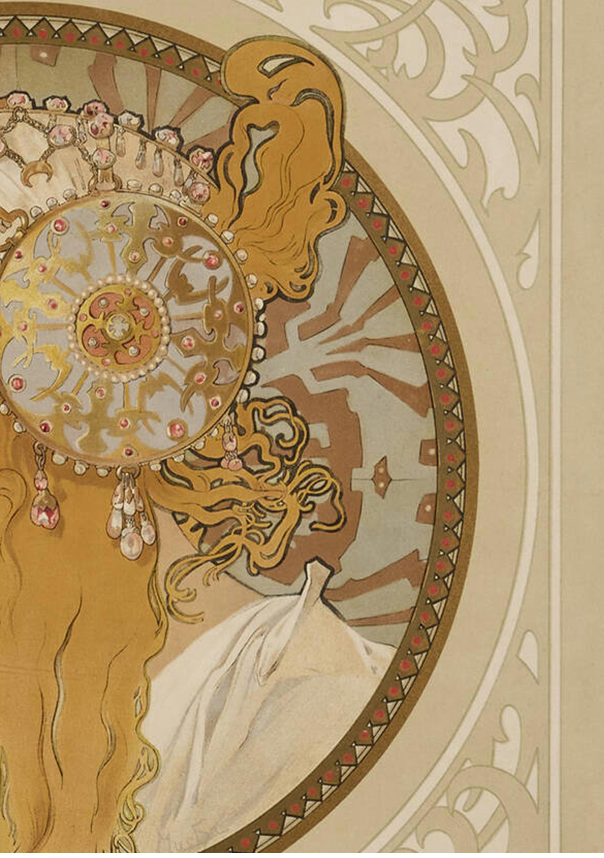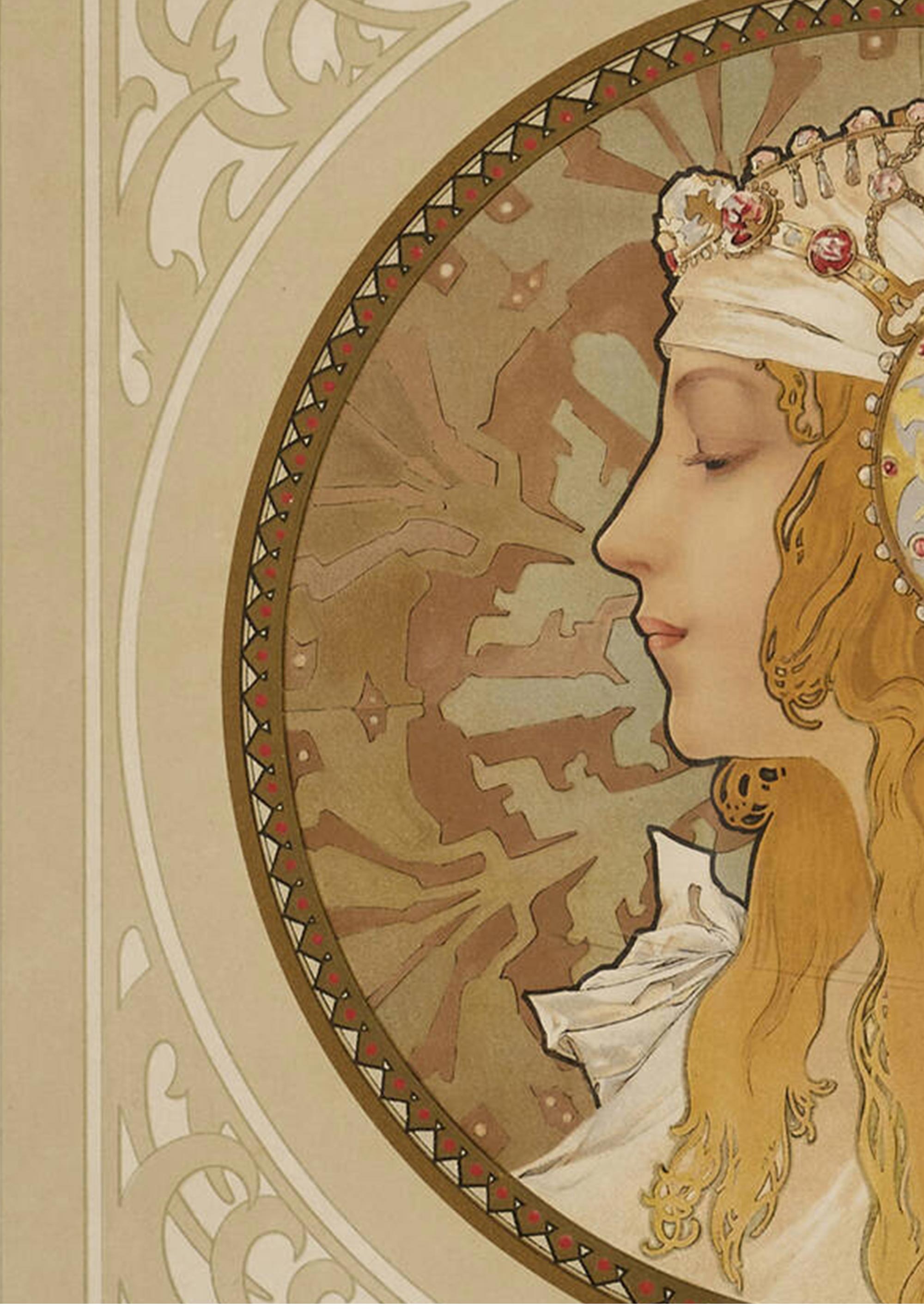 1897年法国出品捷克国宝级画家穆夏签名创作版画作品《拜占庭女神》一对