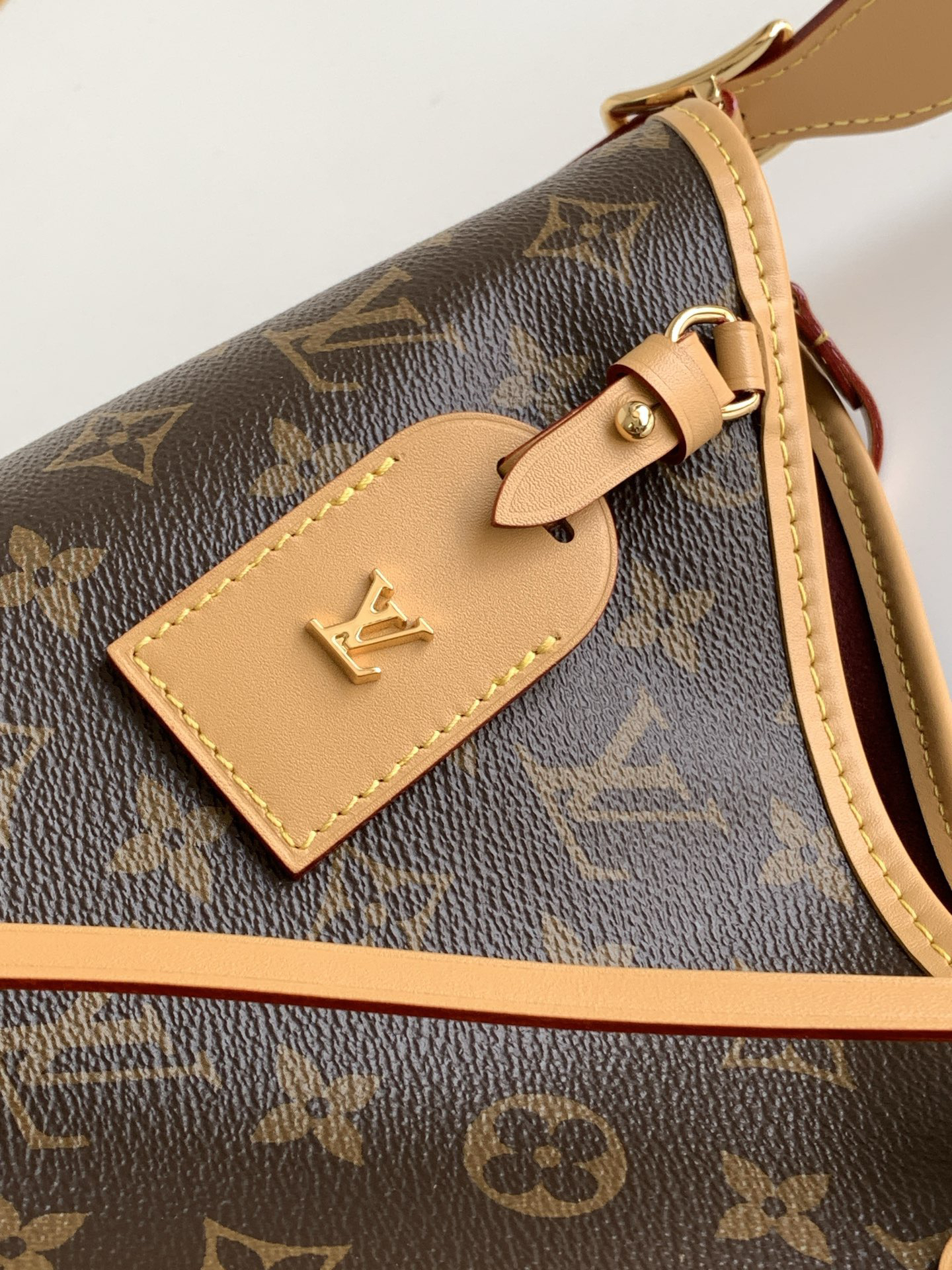 Monogram 涂层帆布做旧牛皮革饰边织物内衬金属件小号内贴袋拉链内袋