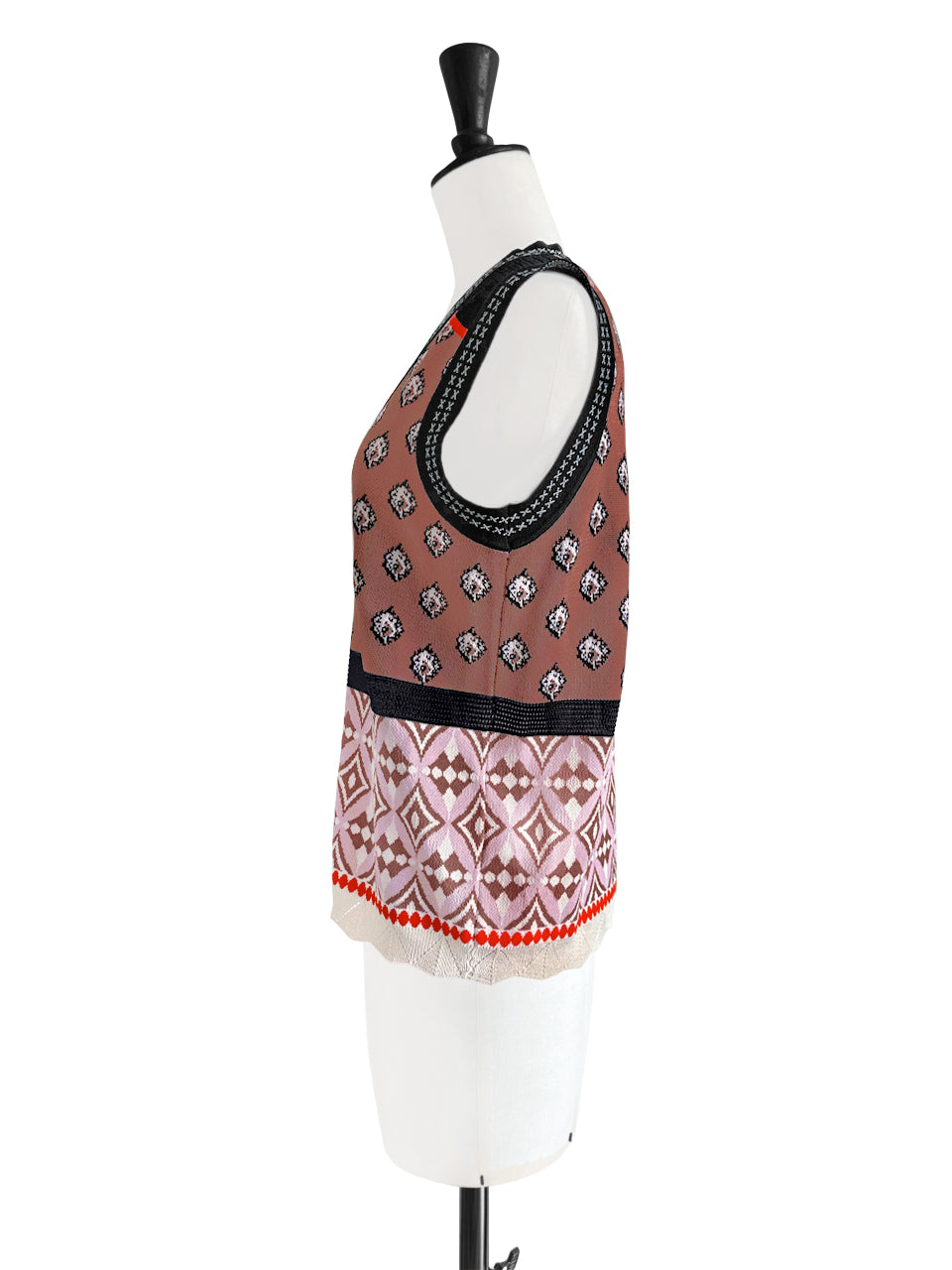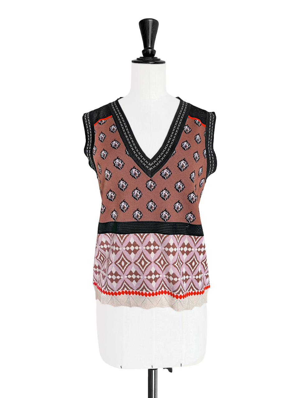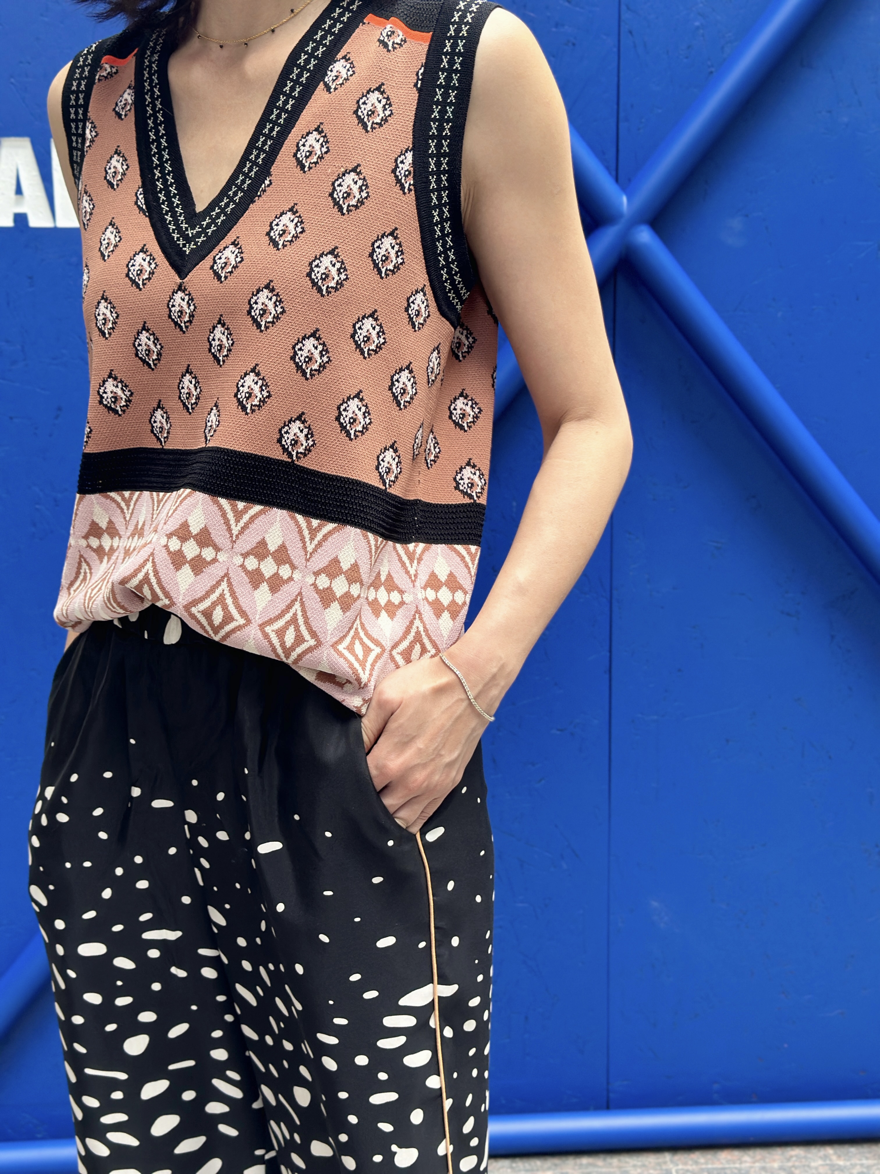TYNVIE 针织马甲背心 - 咖色印花