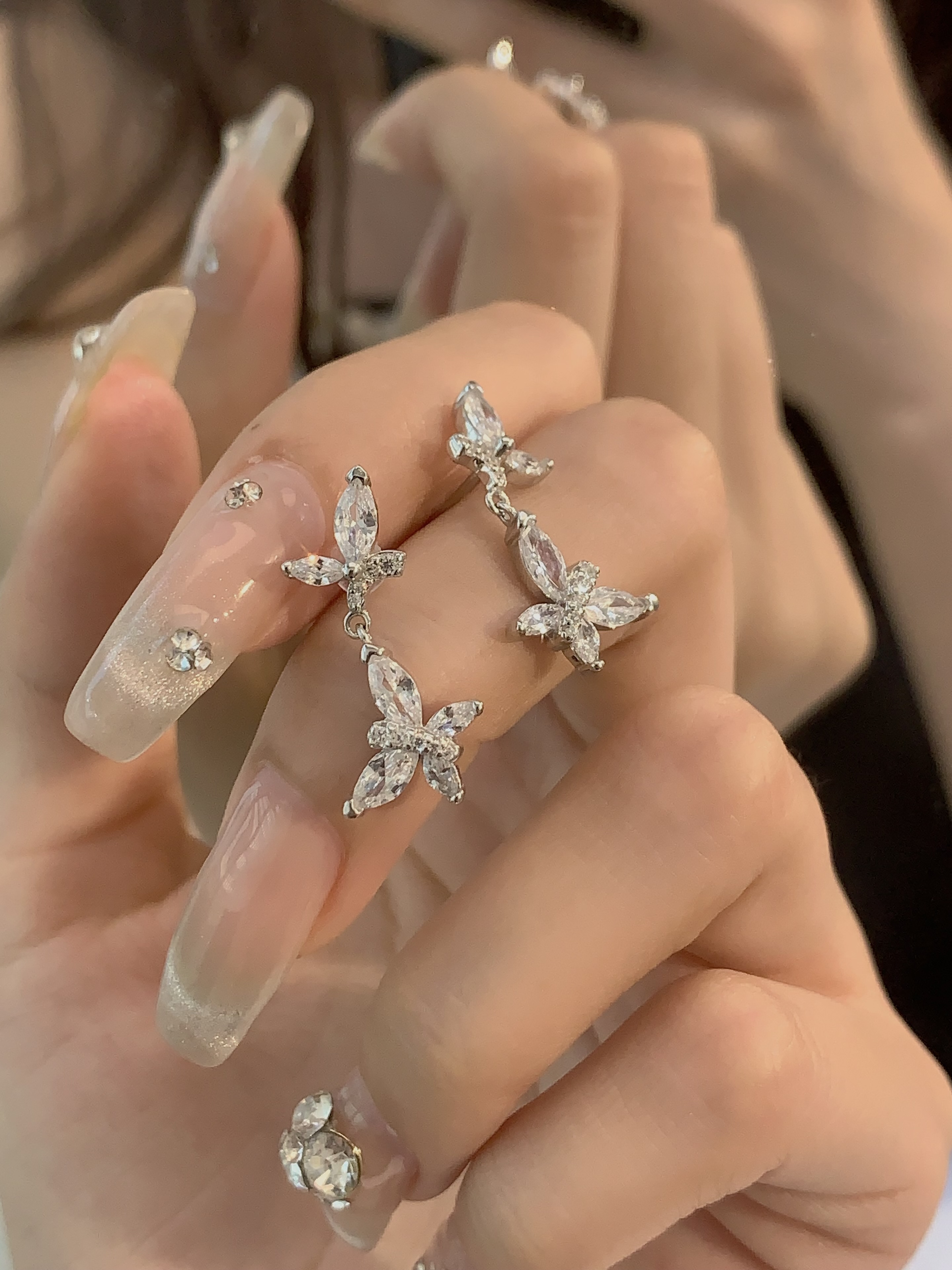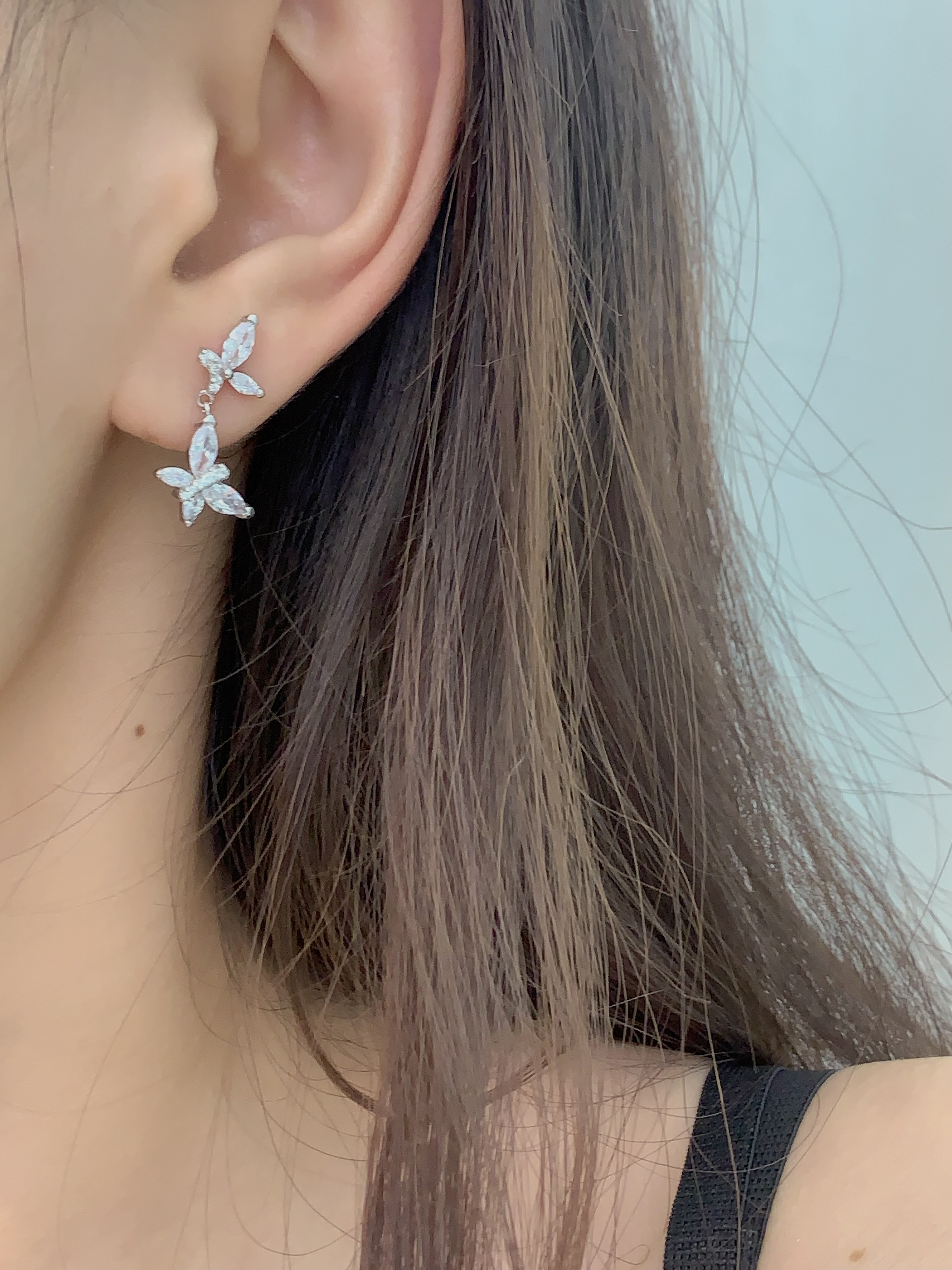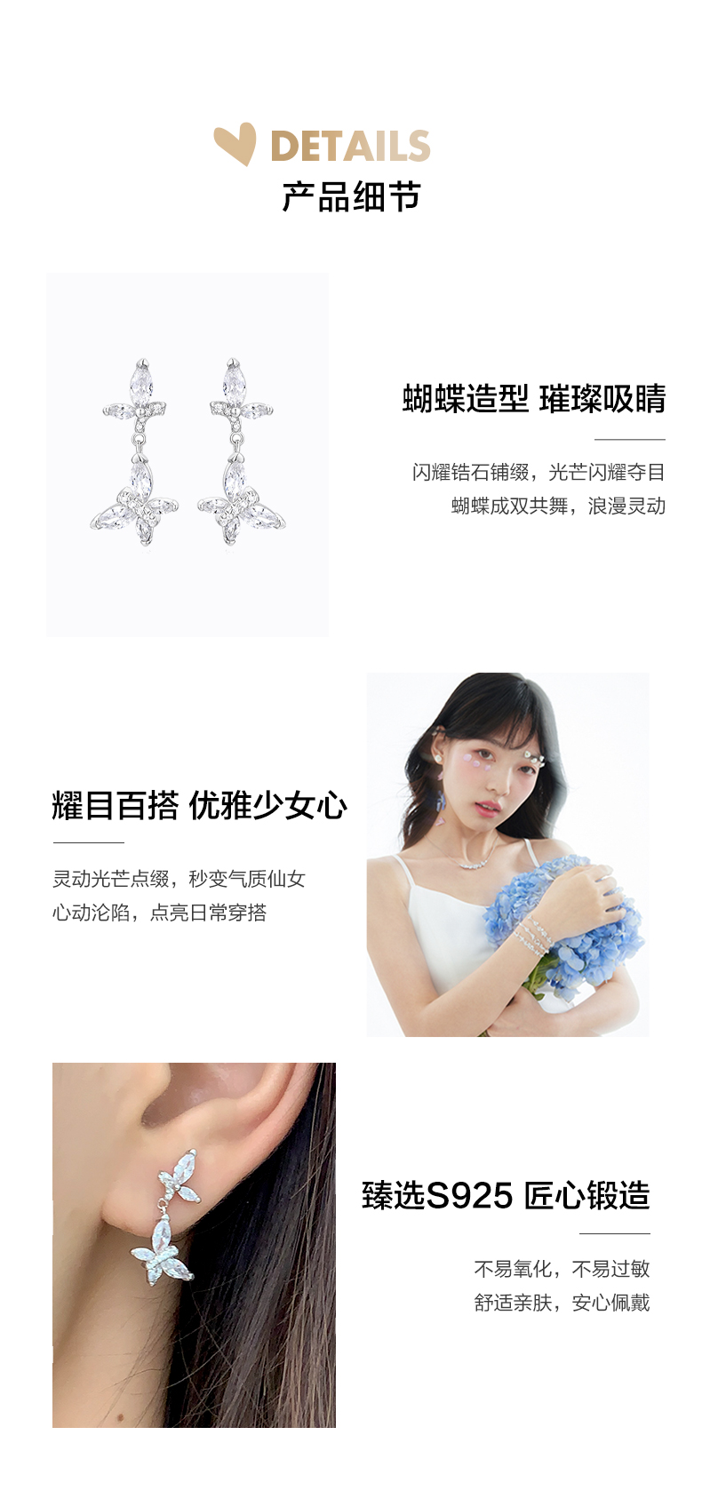 KADER卡蒂罗 花间蝴蝶耳钉 S925银双蝶飞舞梦幻灵动造型设计耳饰 可爱甜美优雅气质配饰闪耀 闺蜜同款女生款 礼盒