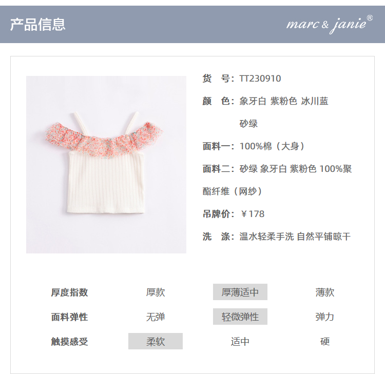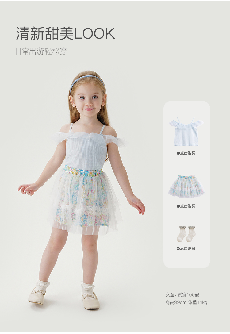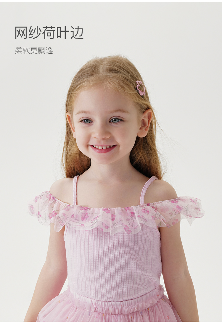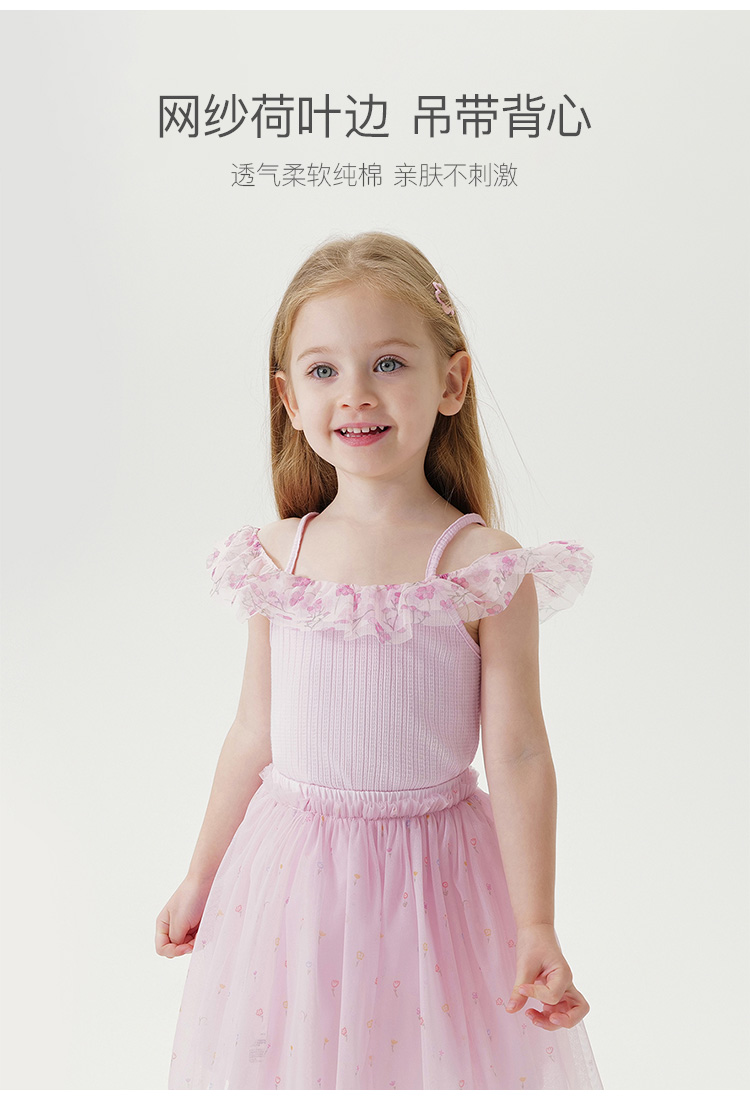 马克珍妮夏装 女童网纱荷叶边拼接吊带背心230910