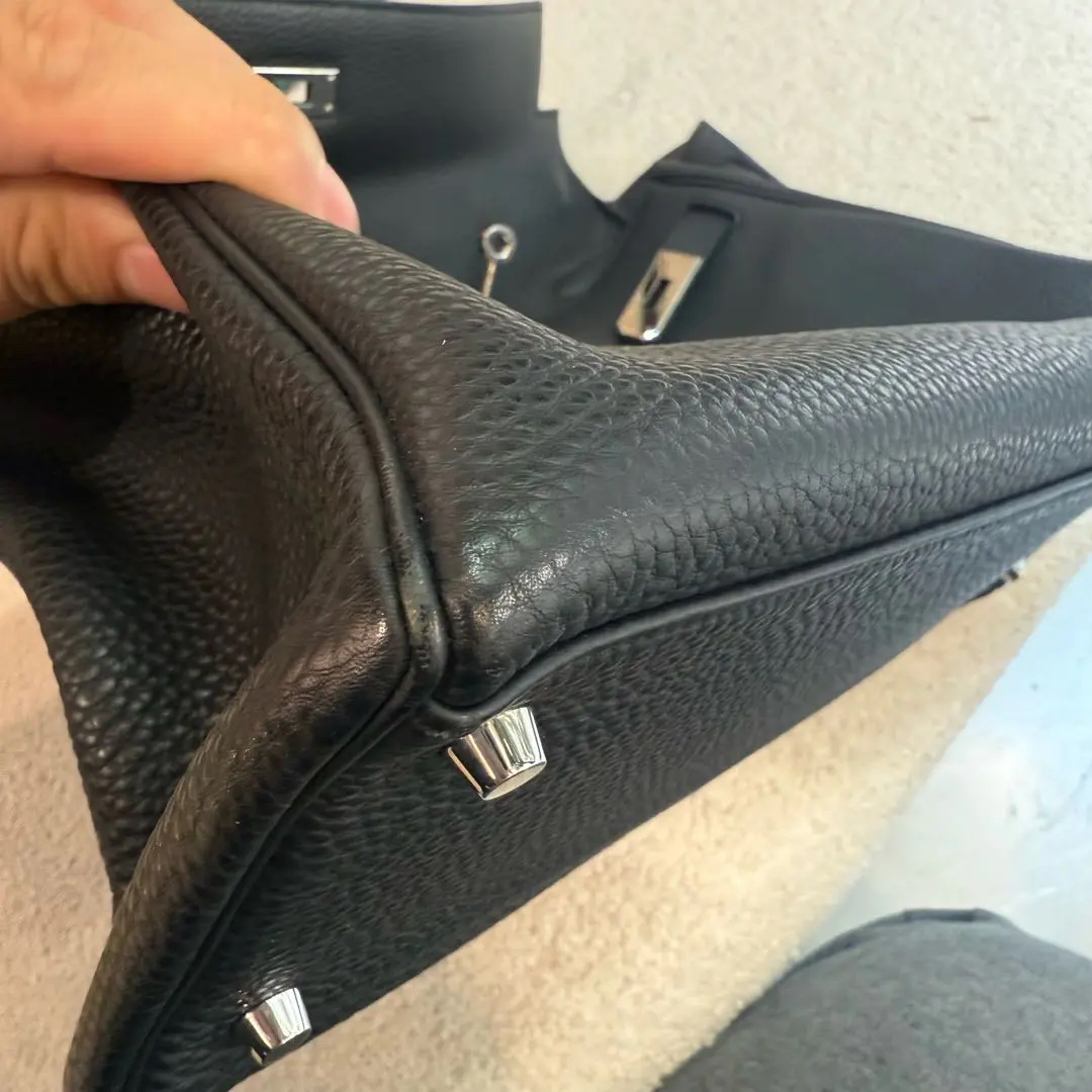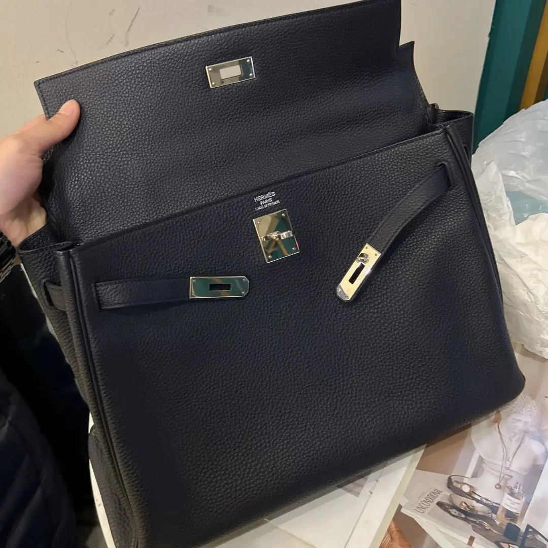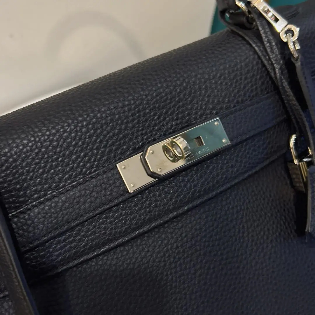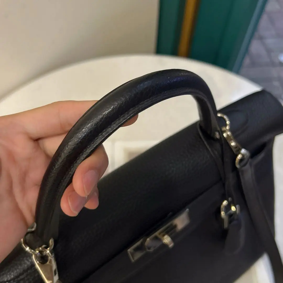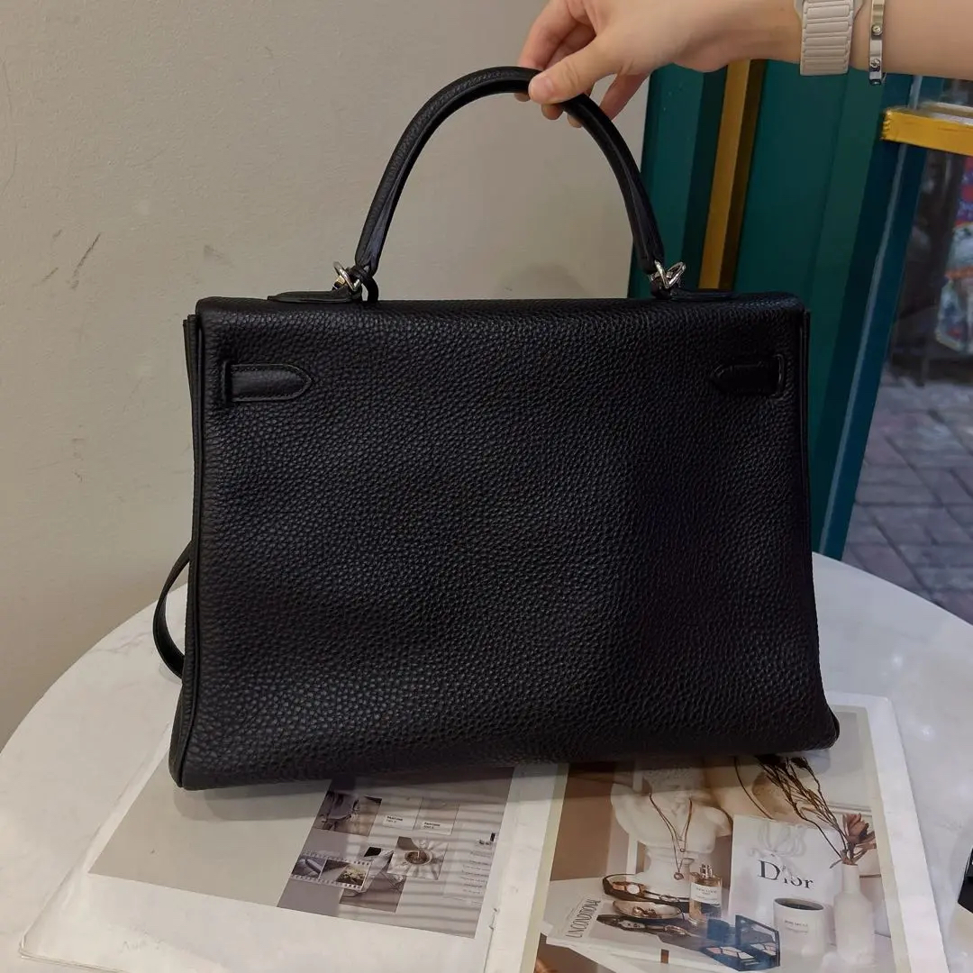 【商品详情】正品二手 爱马仕 kelly 35 黑色 银扣 TC皮 手拿包👜97 新 35*20 框P刻 配件:钥匙 锁 肩带。永恒的经典