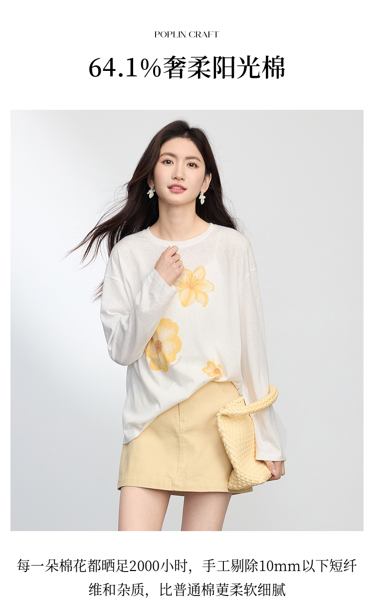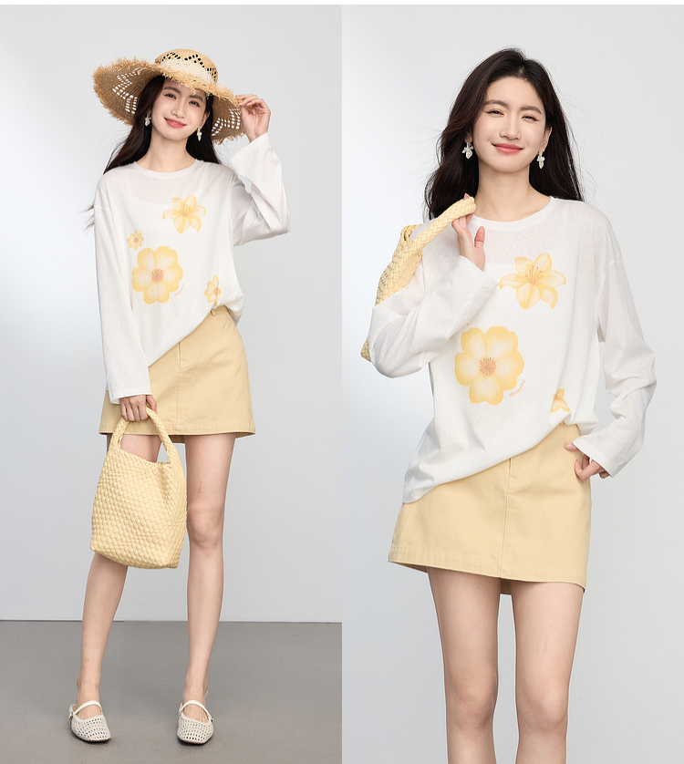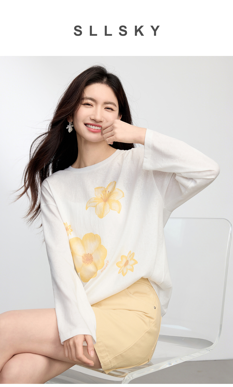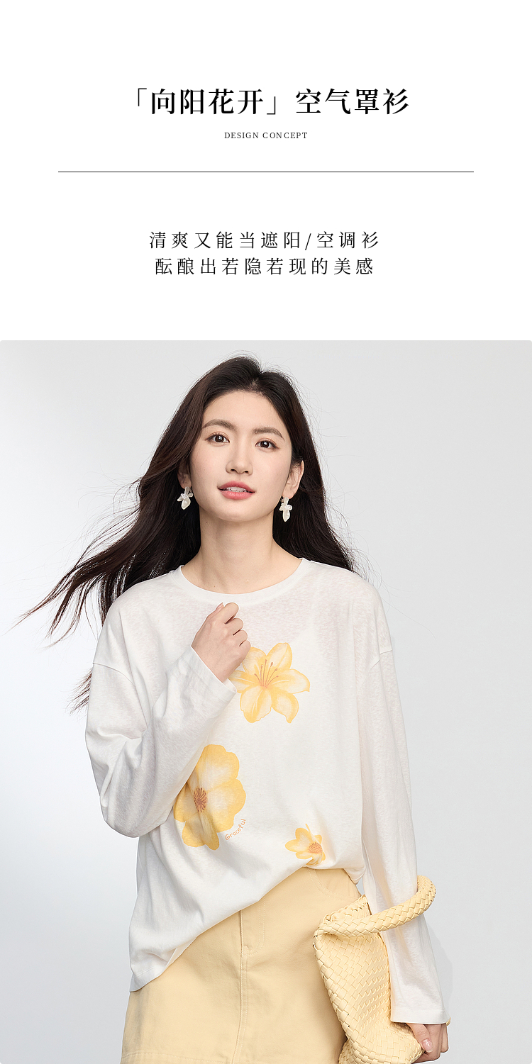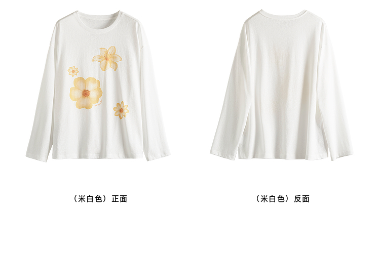 【周末秒杀】熙世界松弛慵懒感印花T恤女长袖2025早秋新款设计感圆领宽松上衣