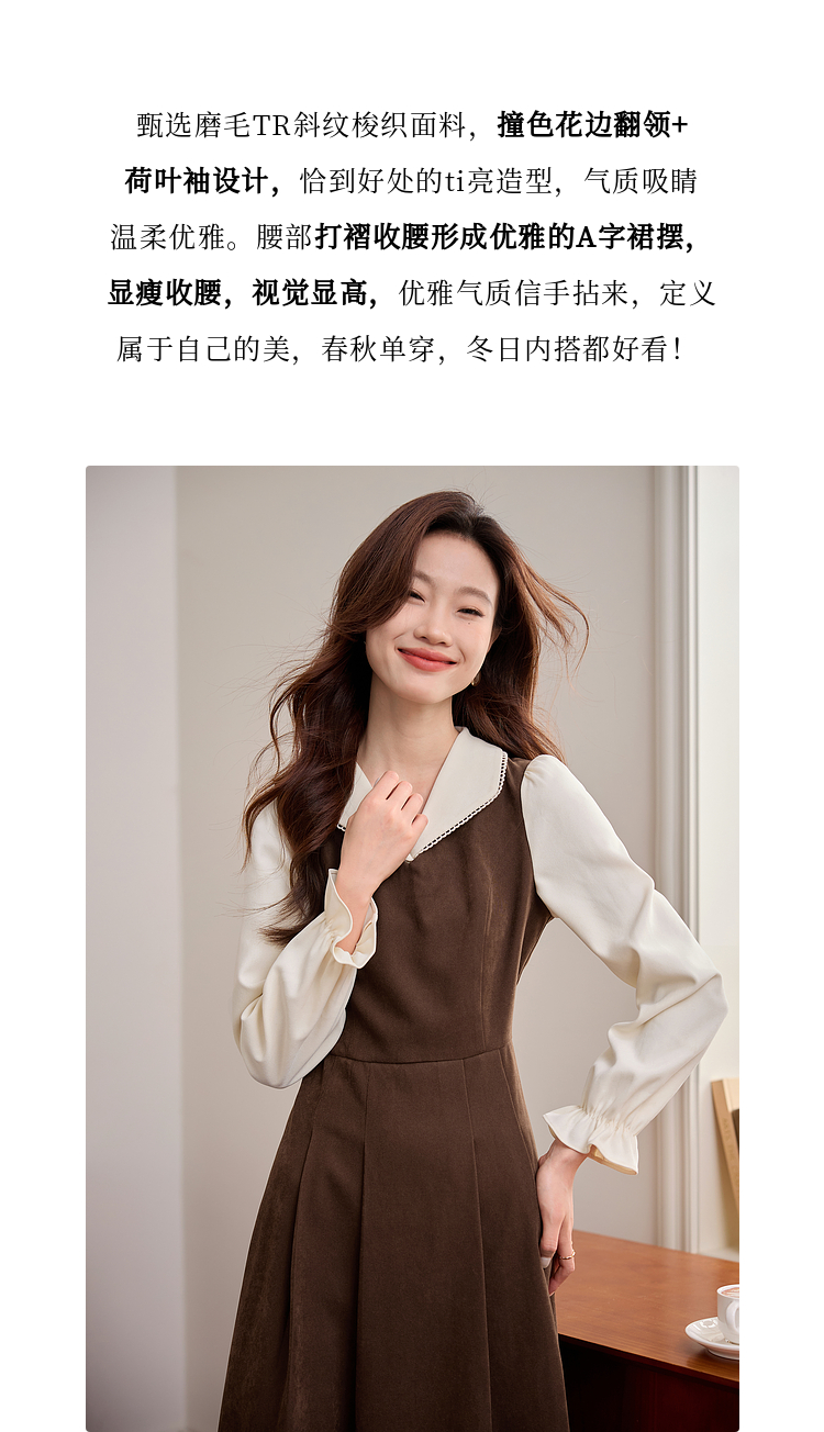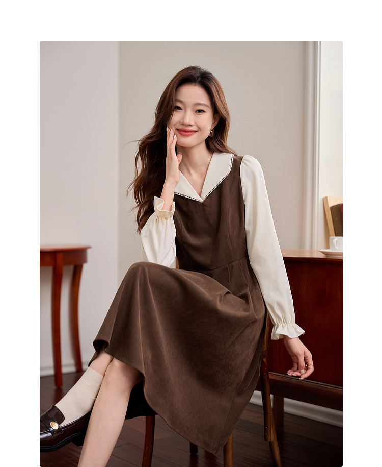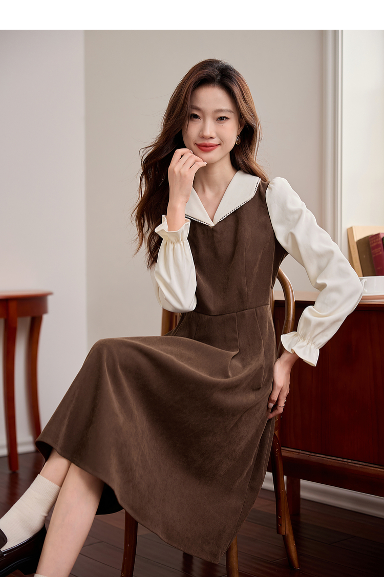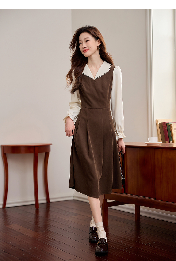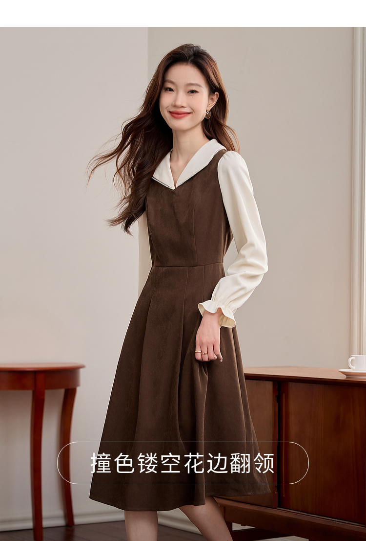 【专属特价】熙世界法式复古假两件长袖连衣裙女2025秋冬新款正式场合气质裙子