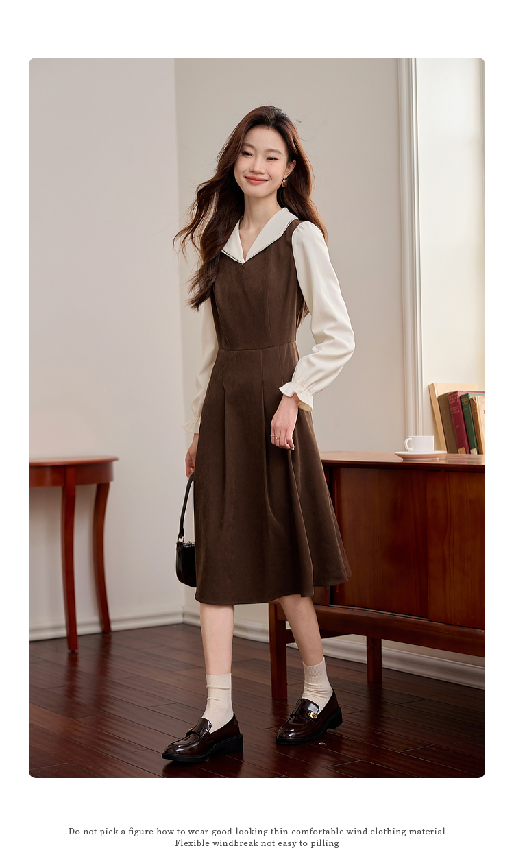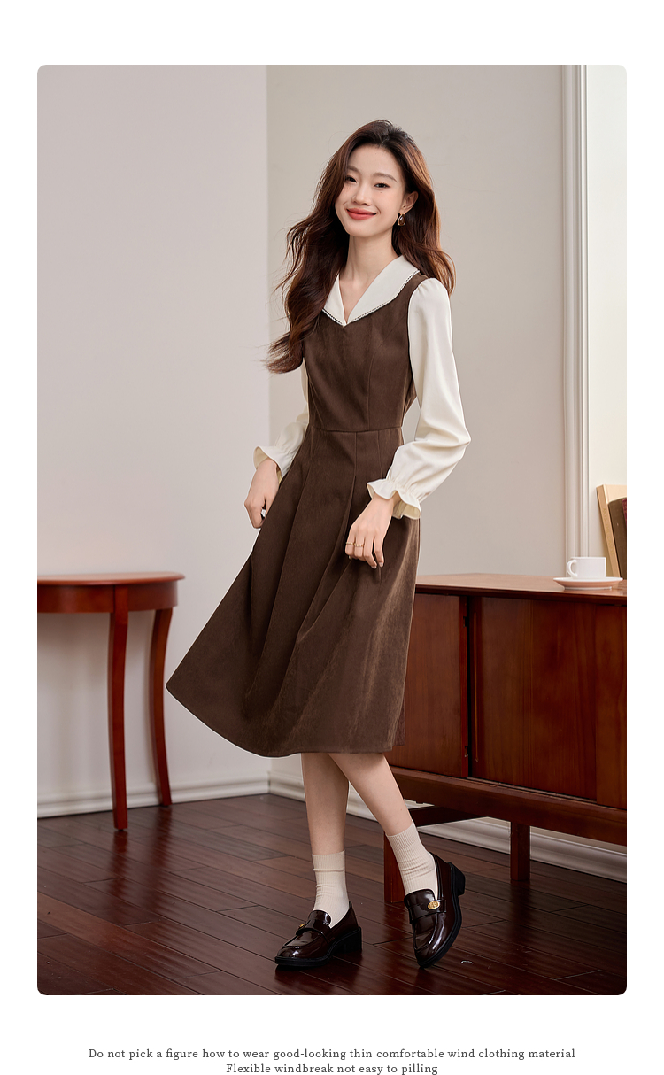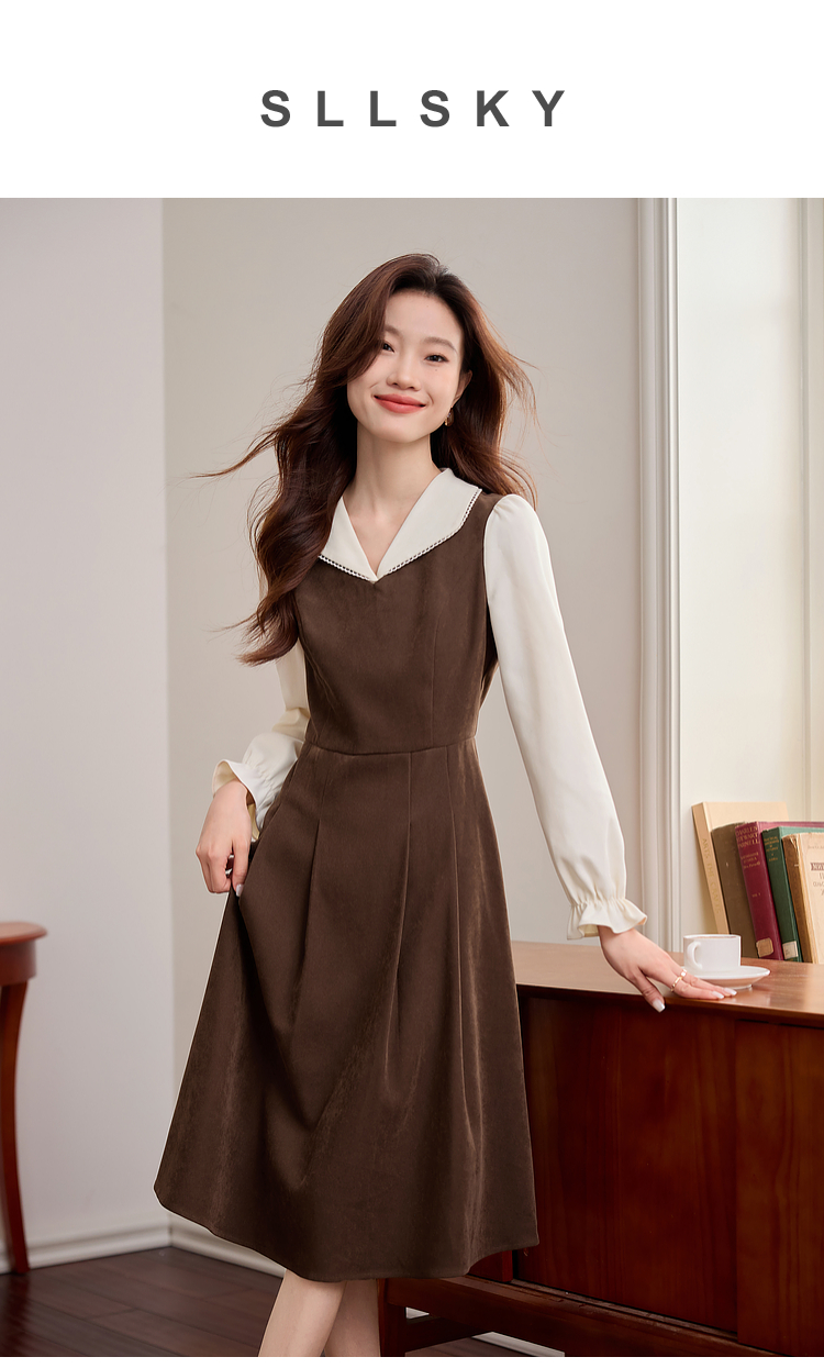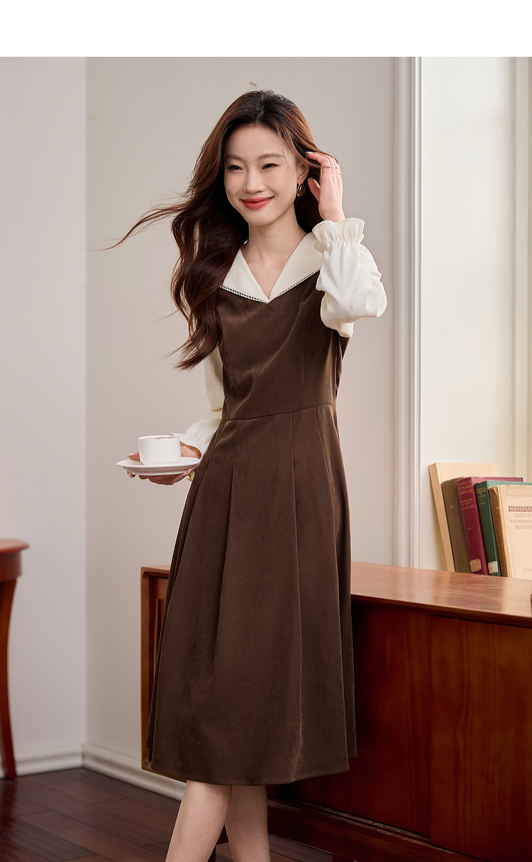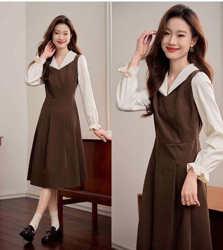 【专属特价】熙世界法式复古假两件长袖连衣裙女2025秋冬新款正式场合气质裙子