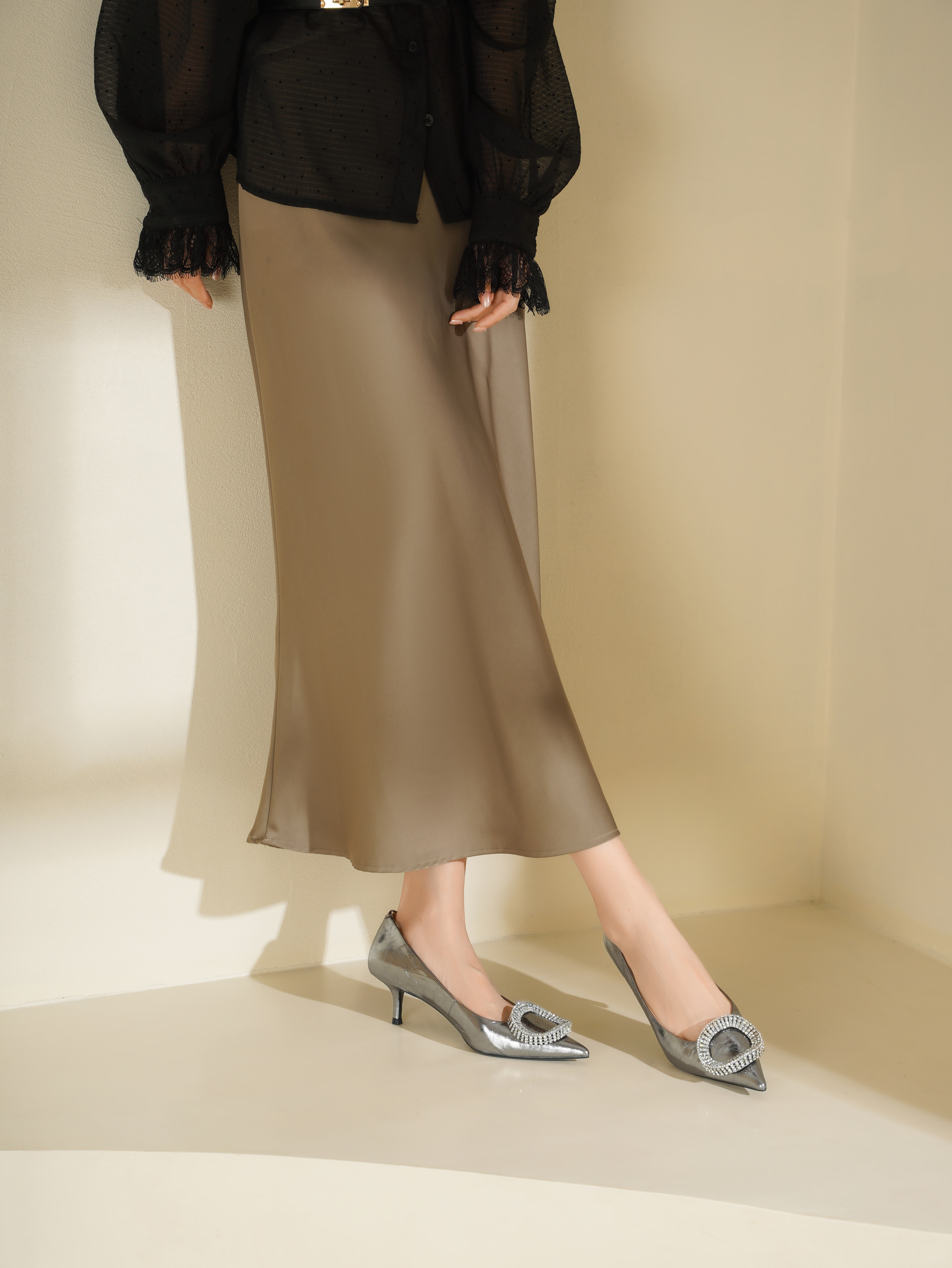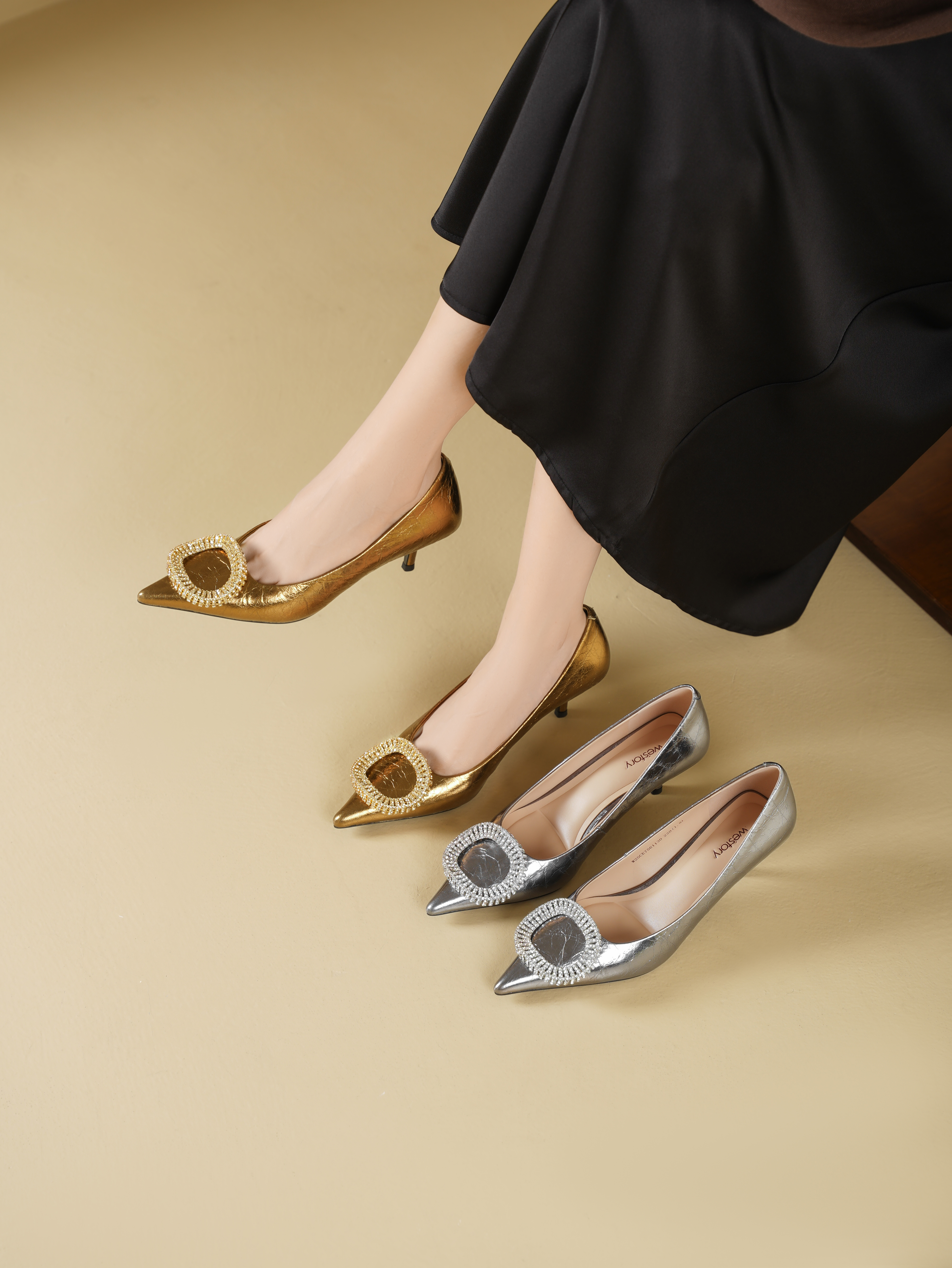 Westory2025年秋季尖头中跟单鞋宴会鞋百搭浅口单鞋W25CE75611