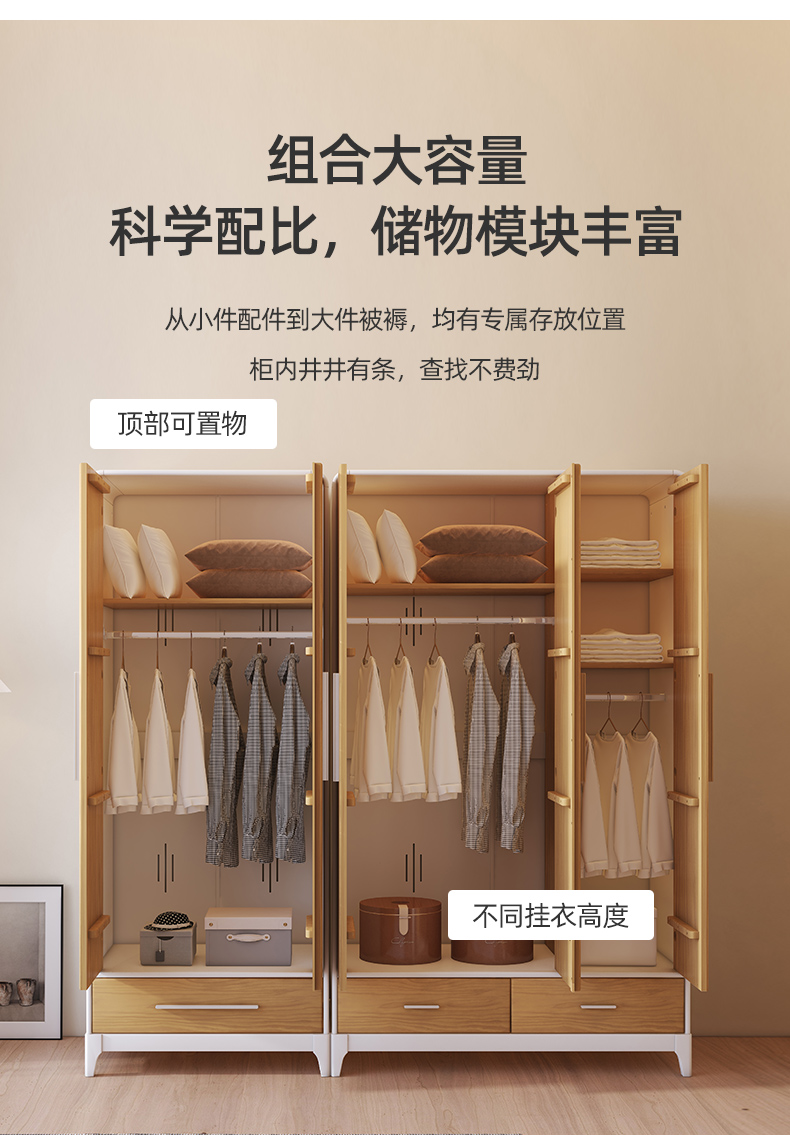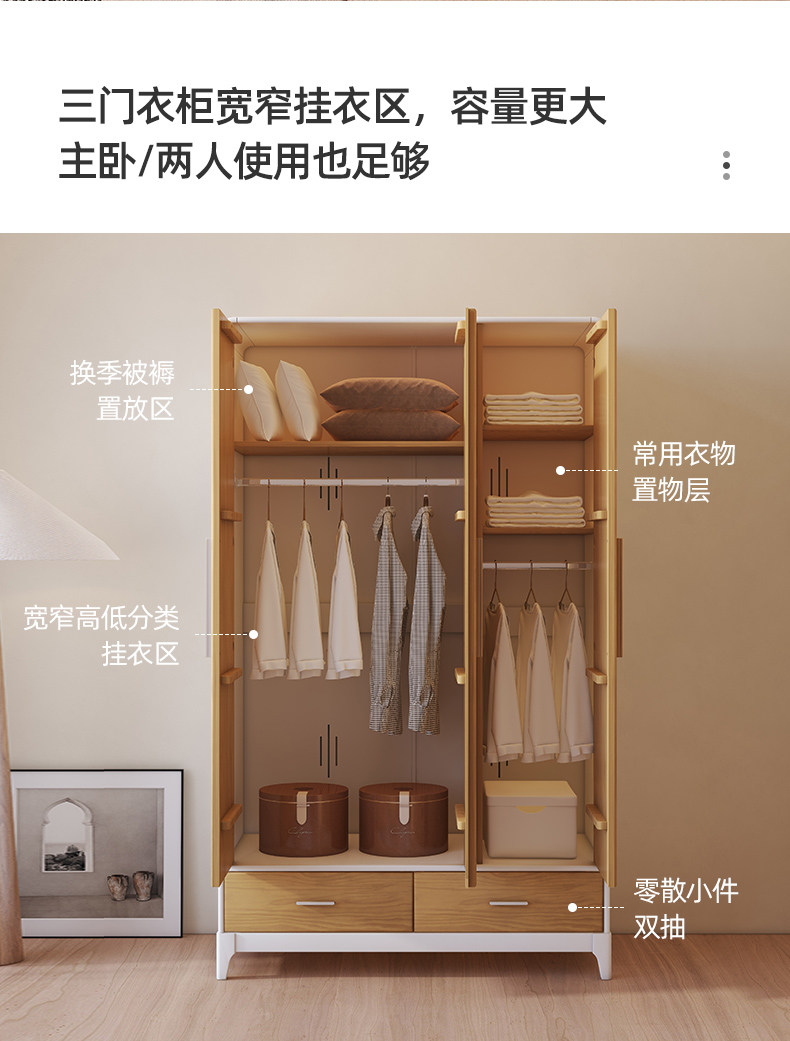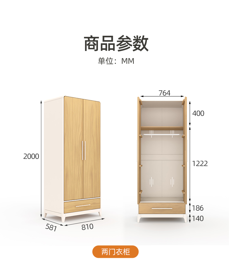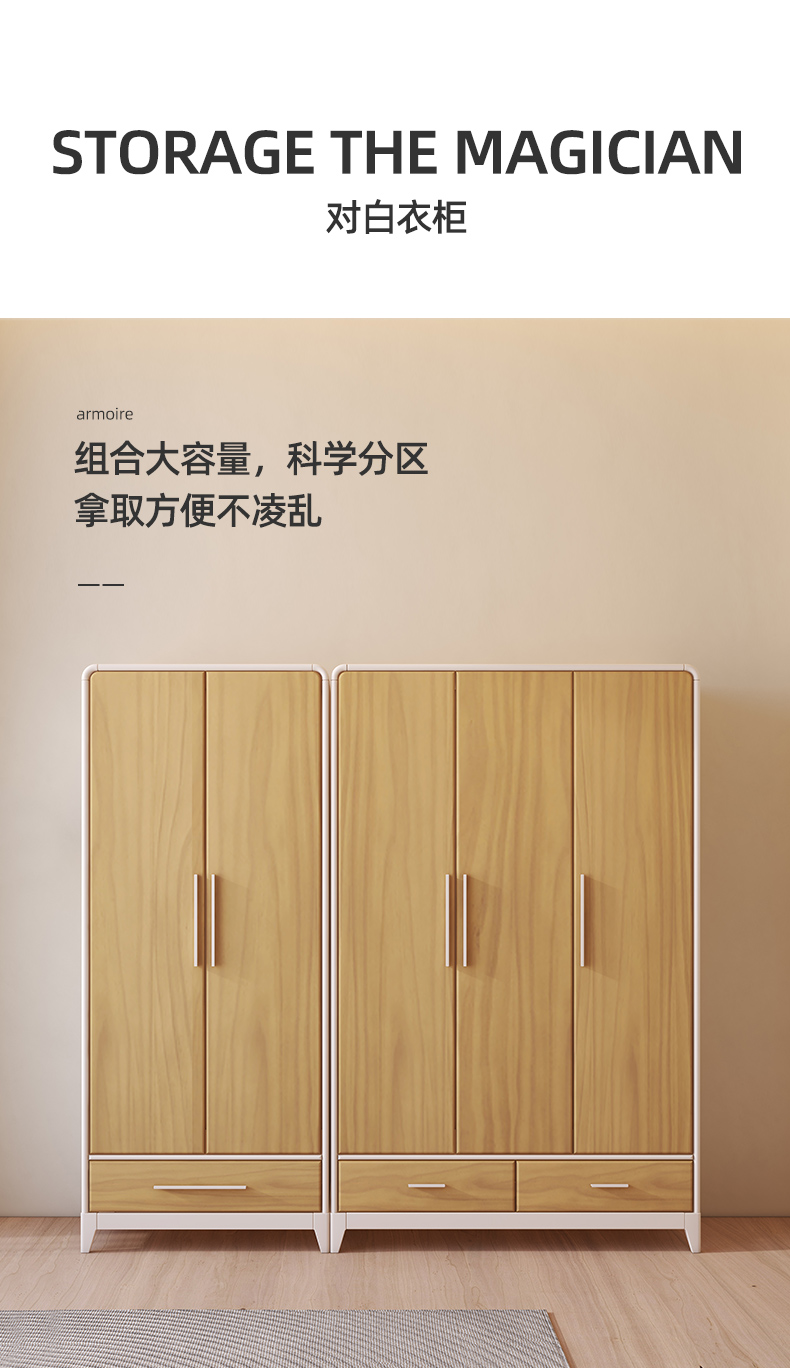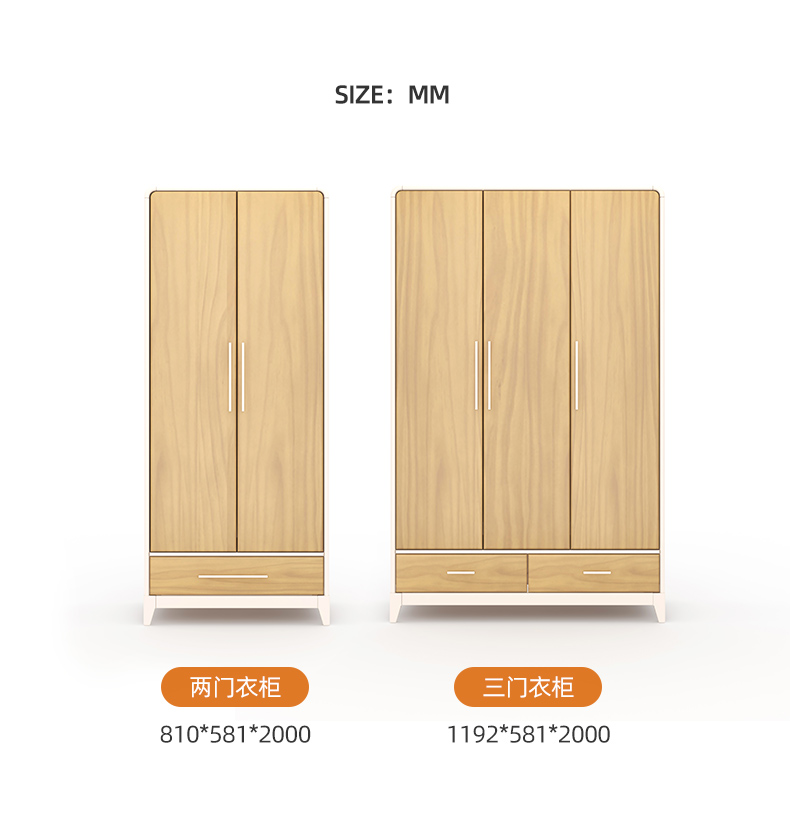 喜梦宝衣柜现代简约衣柜2门3门衣柜 对白系列