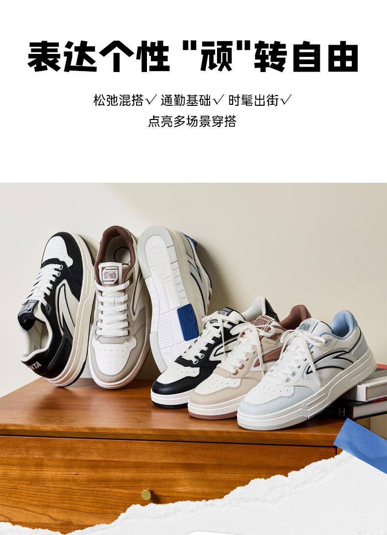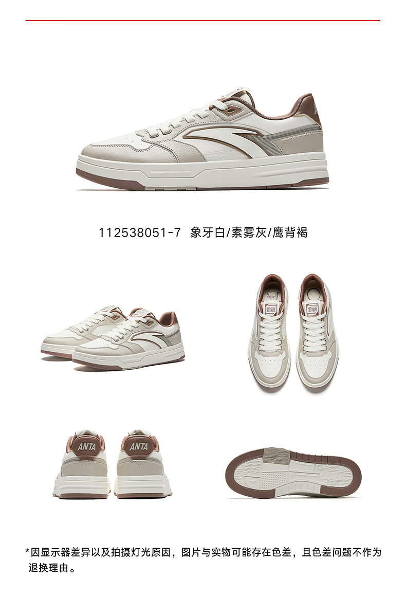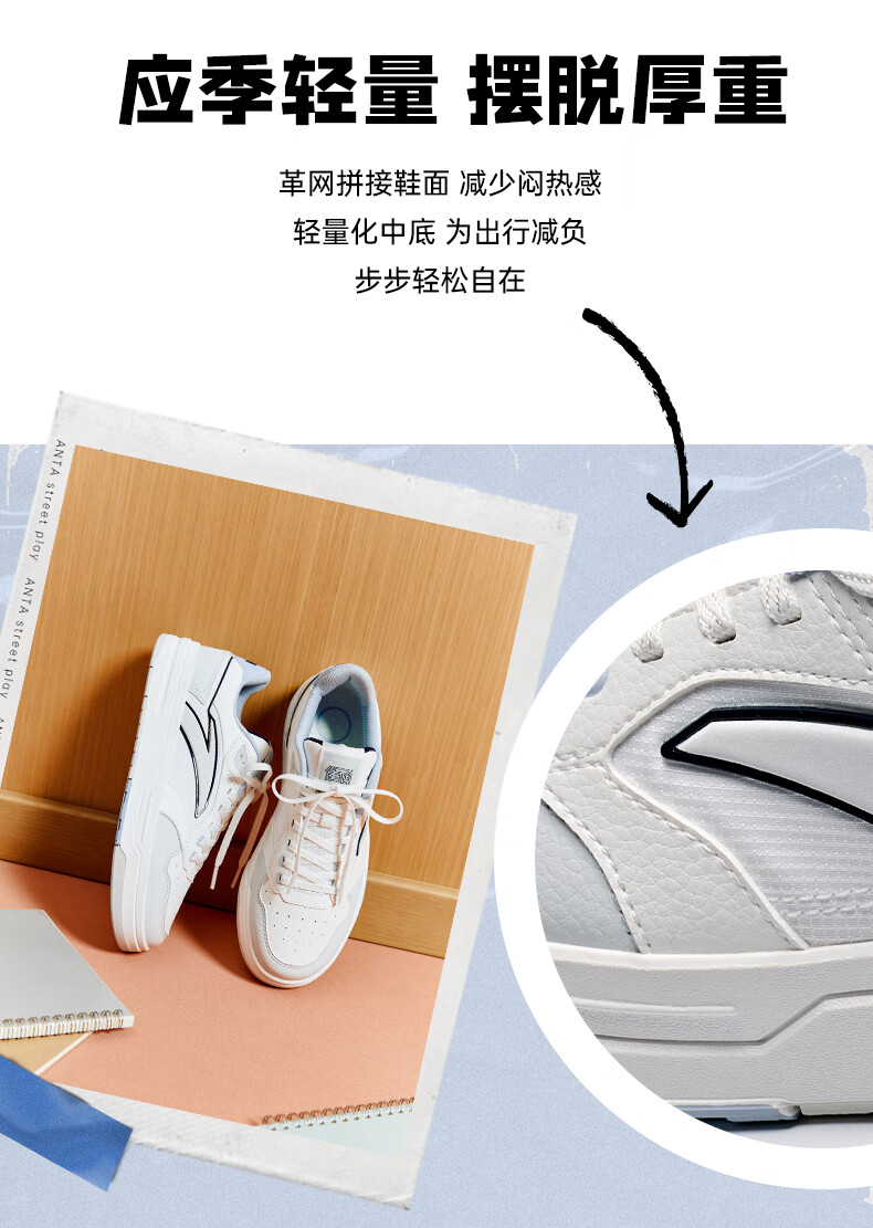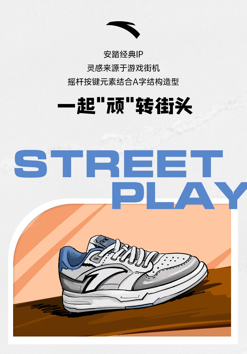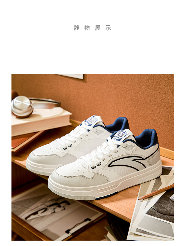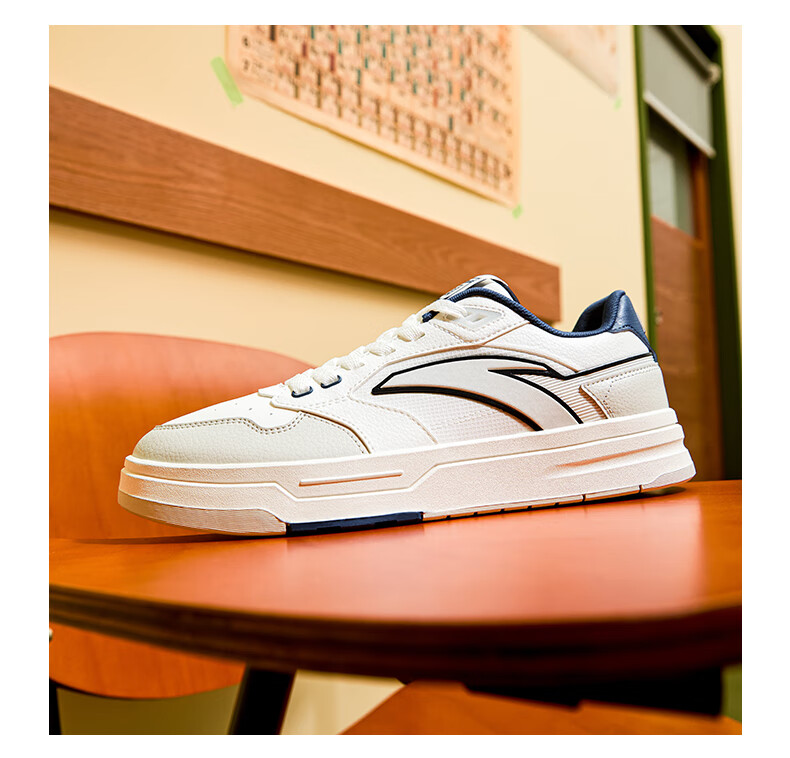 安踏街顽LT3男板鞋潮流舒适百搭时尚撞色板鞋经典休闲鞋112538051 白/数字雾灰/草白灰/碧城蓝-5