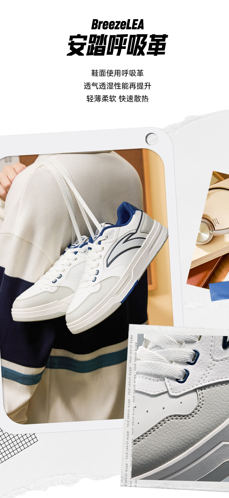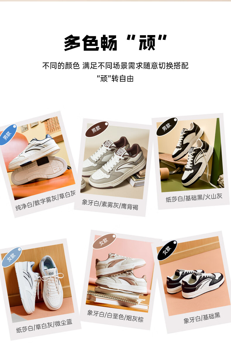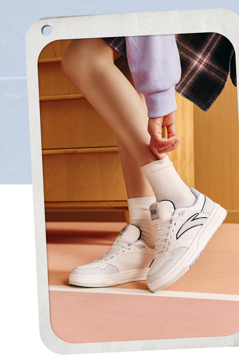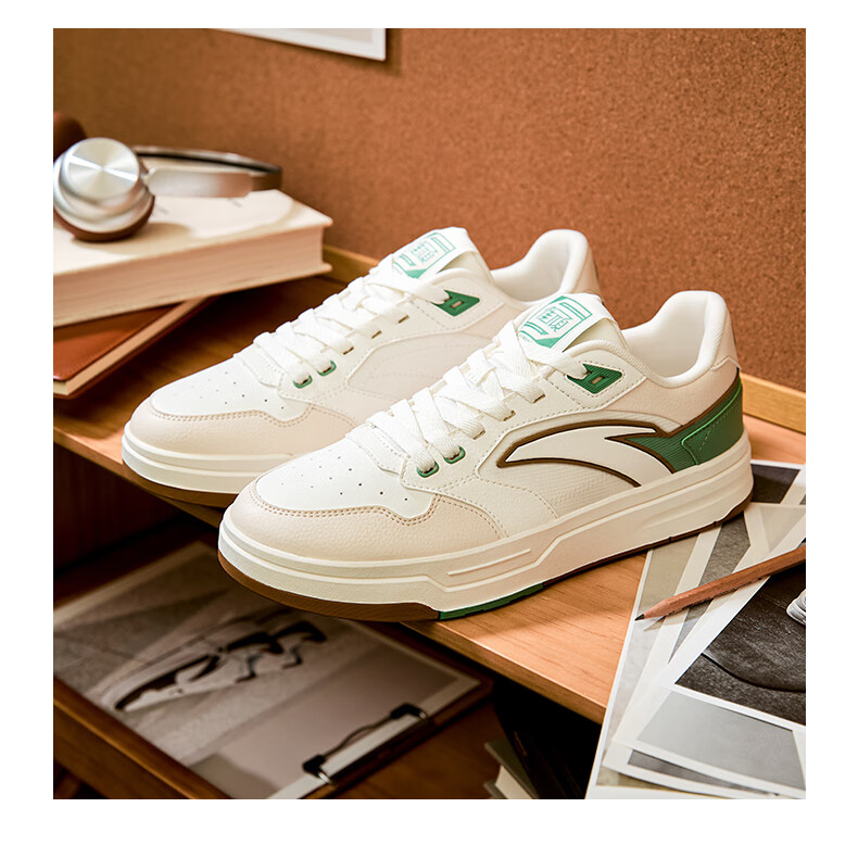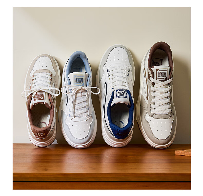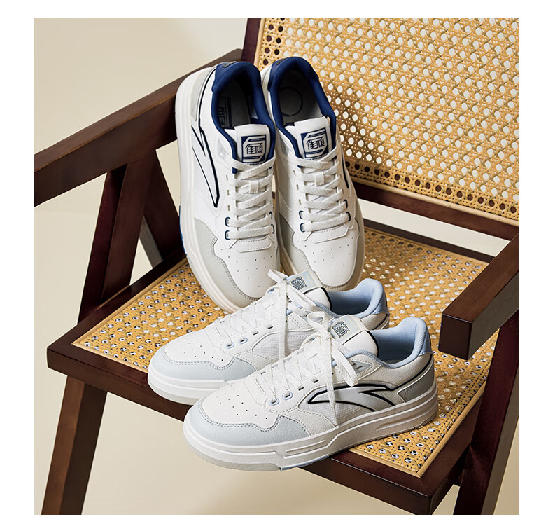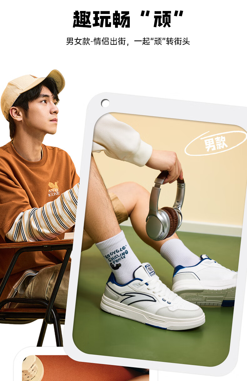 安踏街顽LT3男板鞋潮流舒适百搭时尚撞色板鞋经典休闲鞋112538051 白/数字雾灰/草白灰/碧城蓝-5