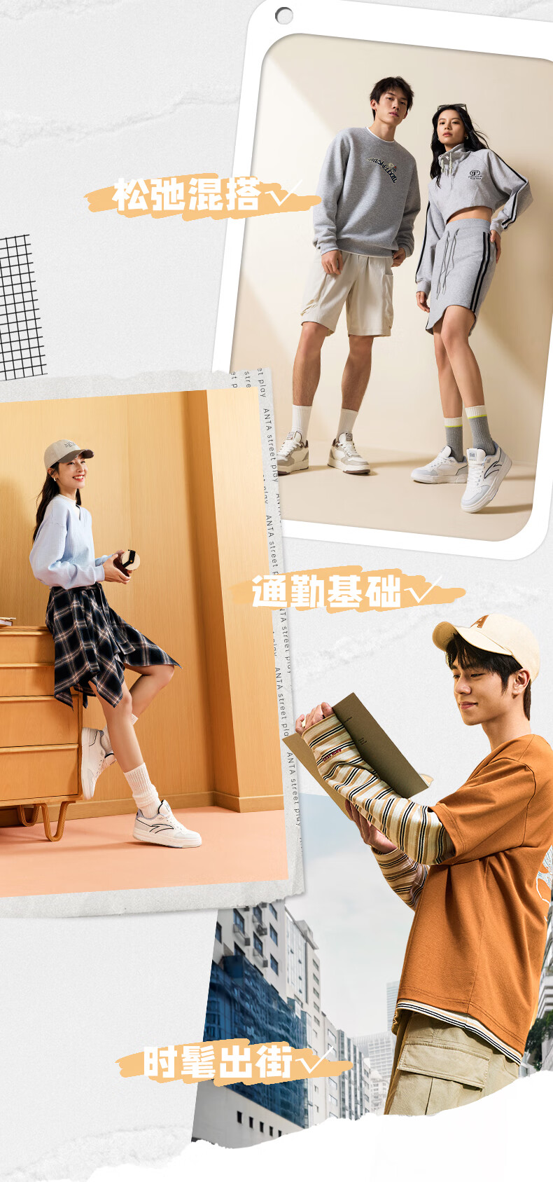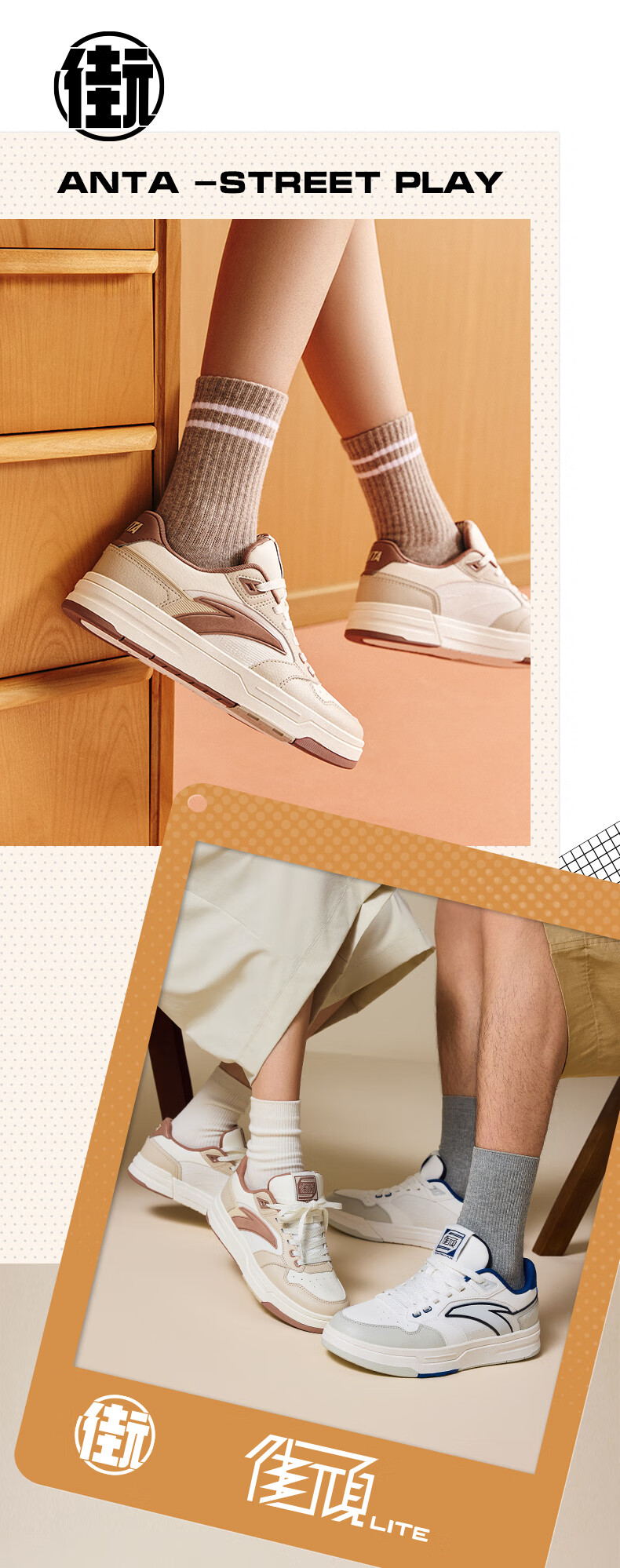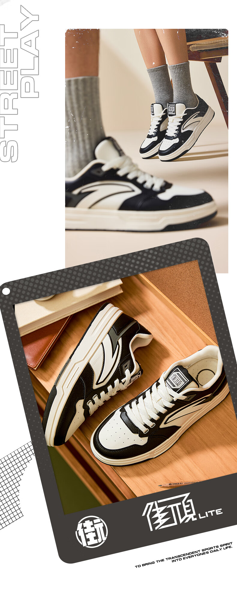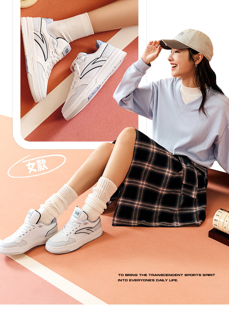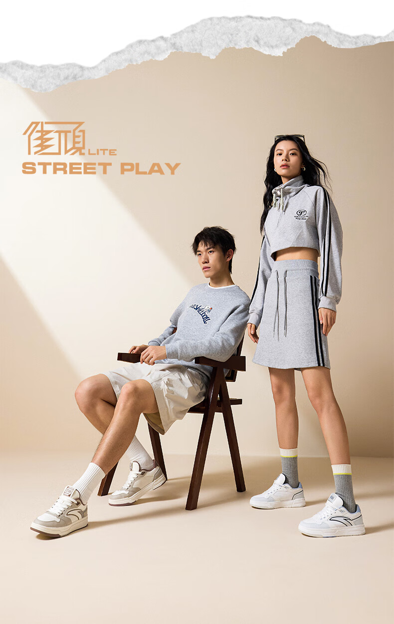 安踏街顽LT3男板鞋潮流舒适百搭时尚撞色板鞋经典休闲鞋112538051 白/数字雾灰/草白灰/碧城蓝-5