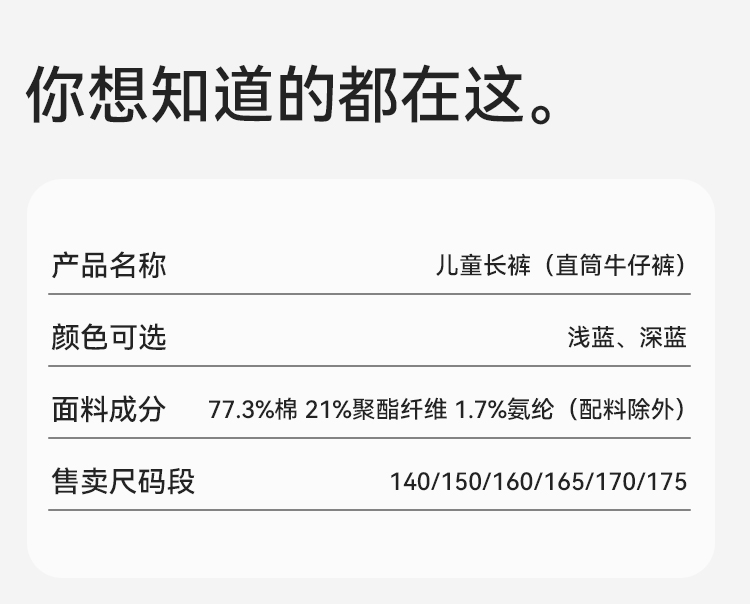 【英氏】【140-175】男童春秋直筒牛仔裤