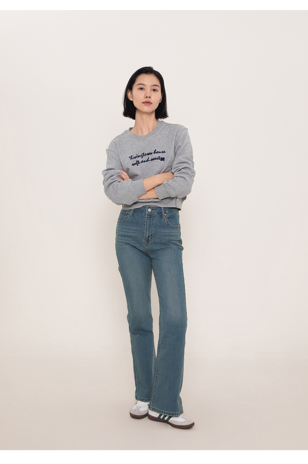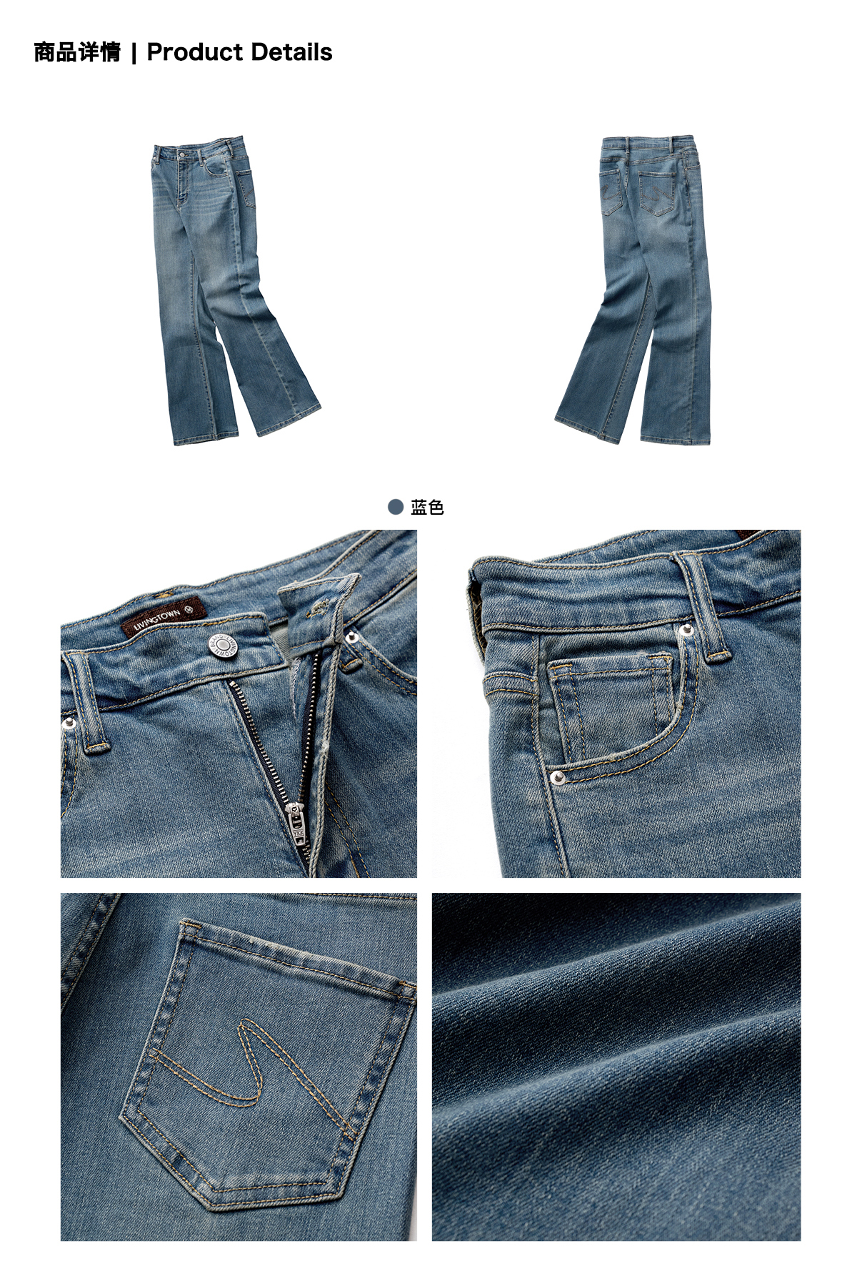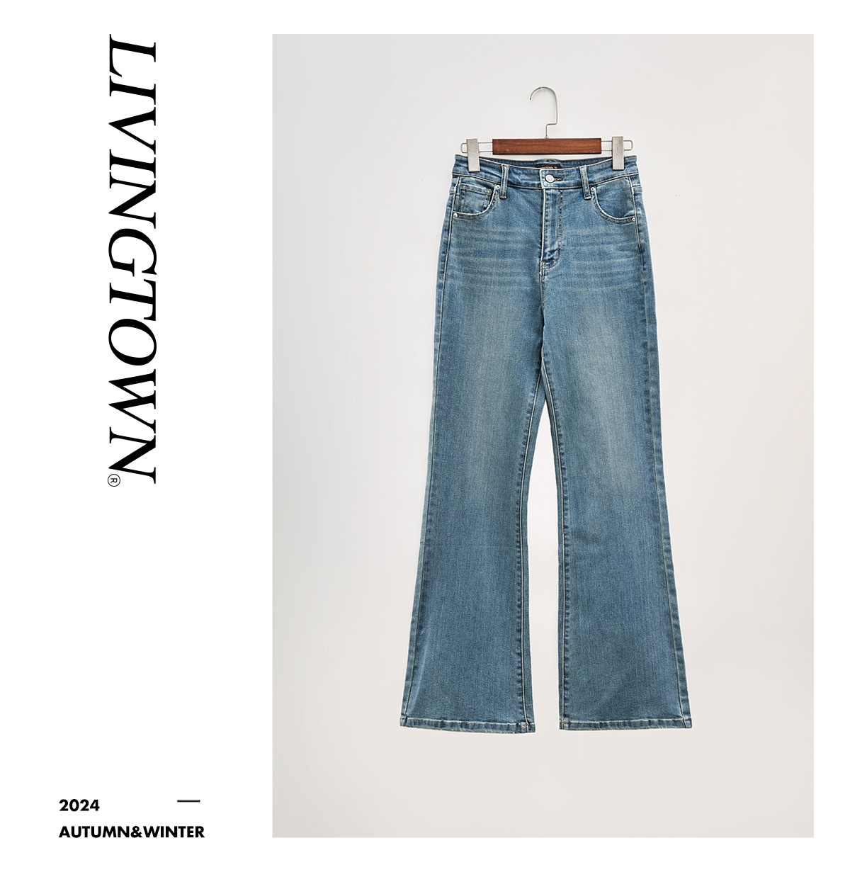 LIVINGTOWN/LT莱赛尔弹力微喇牛仔裤