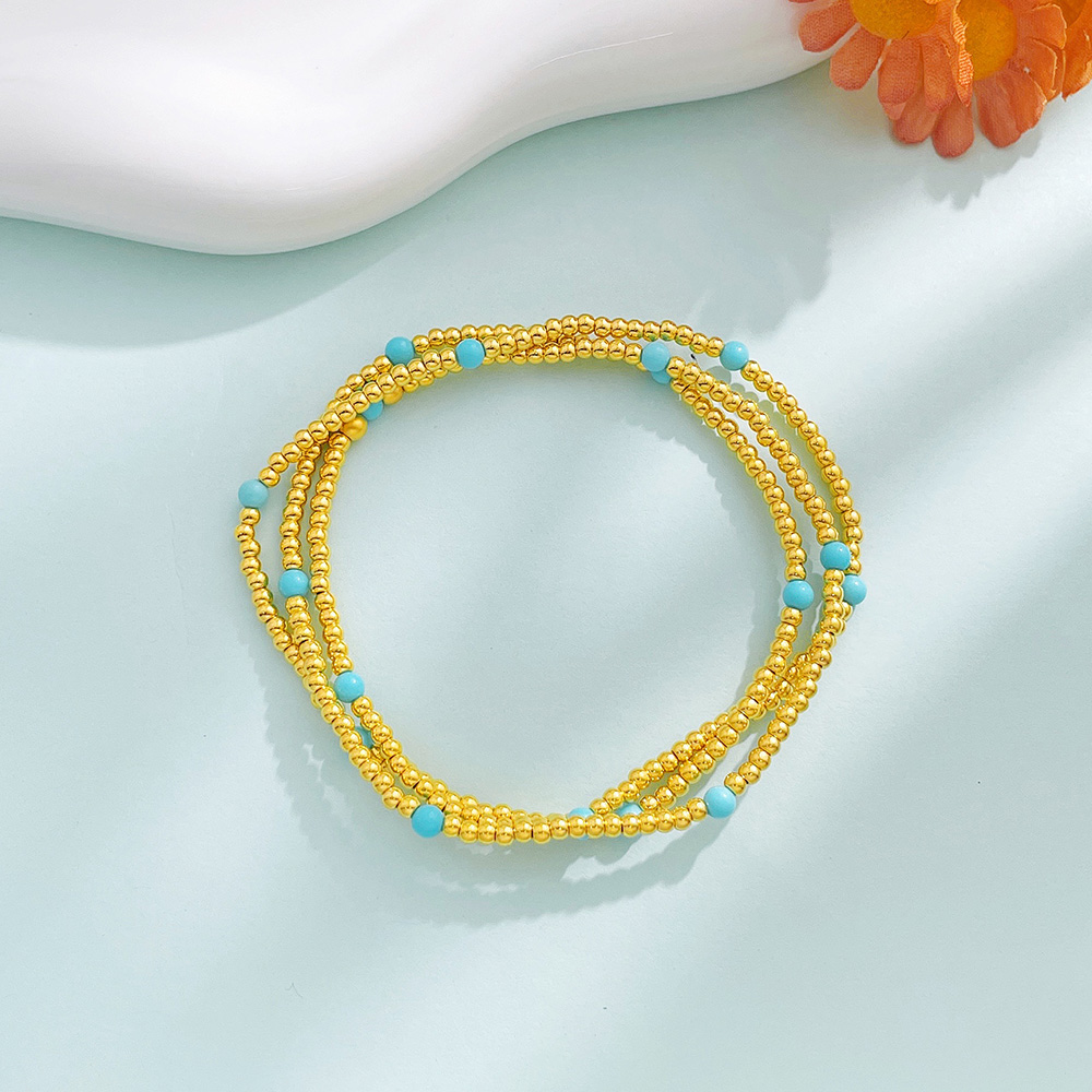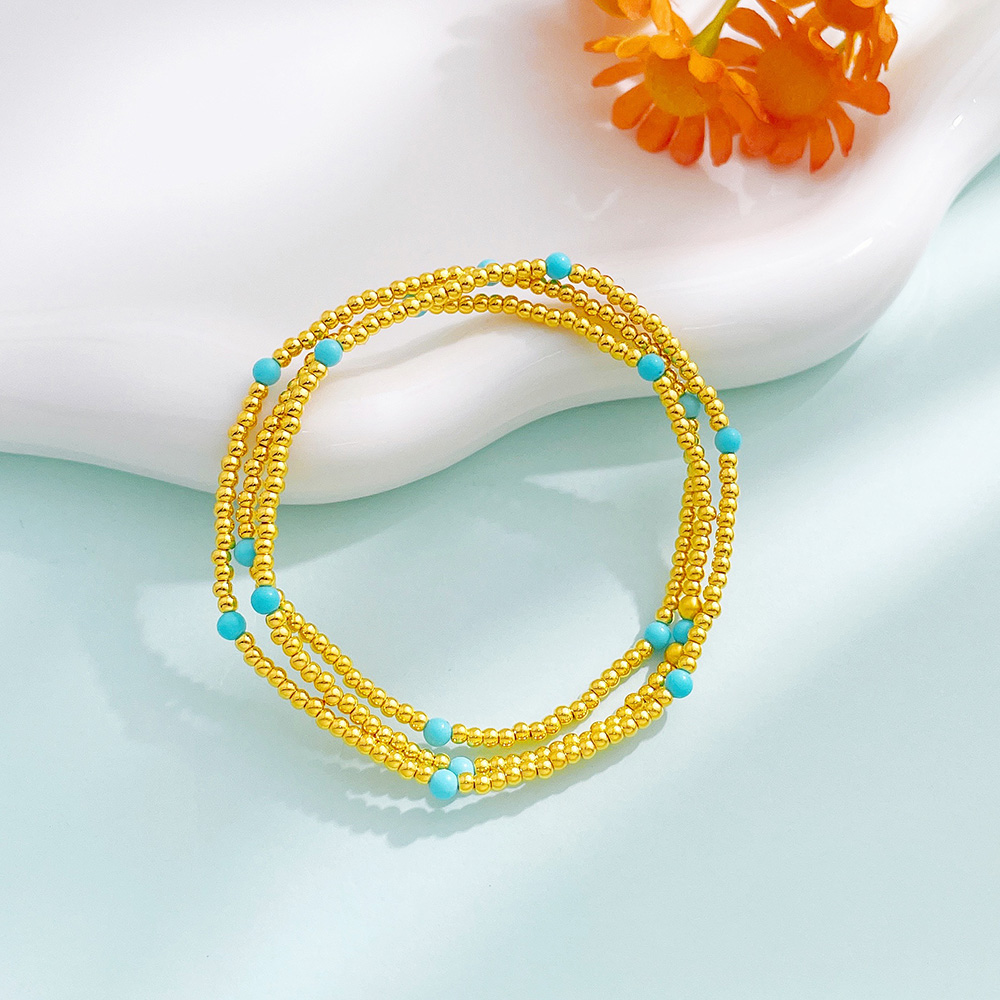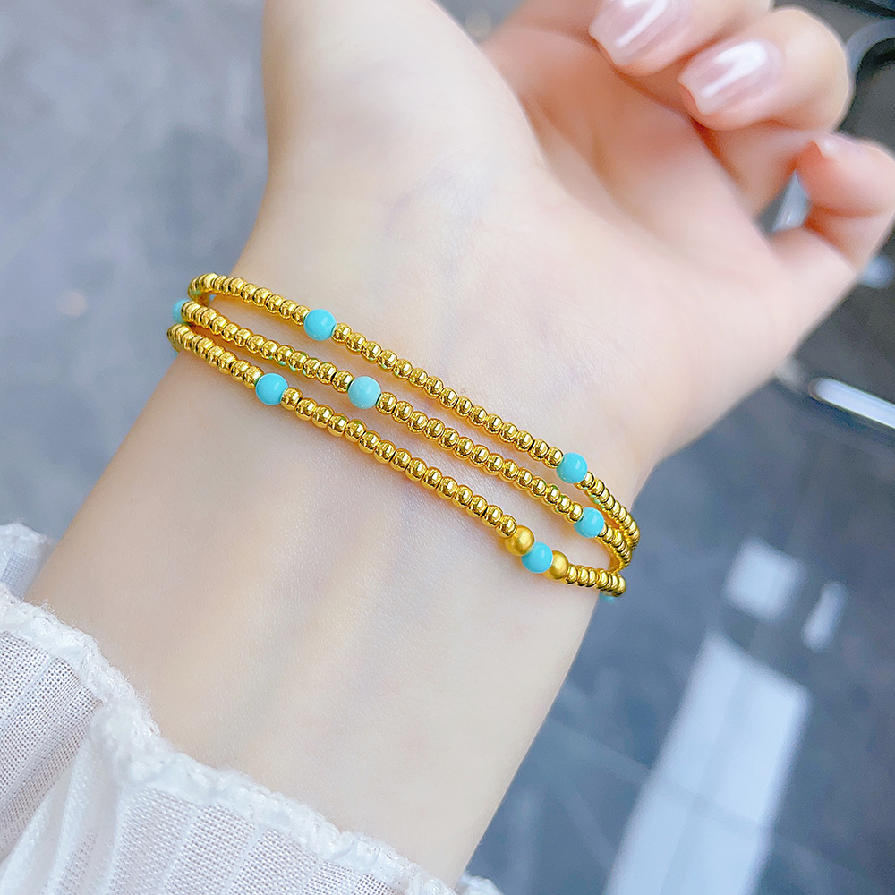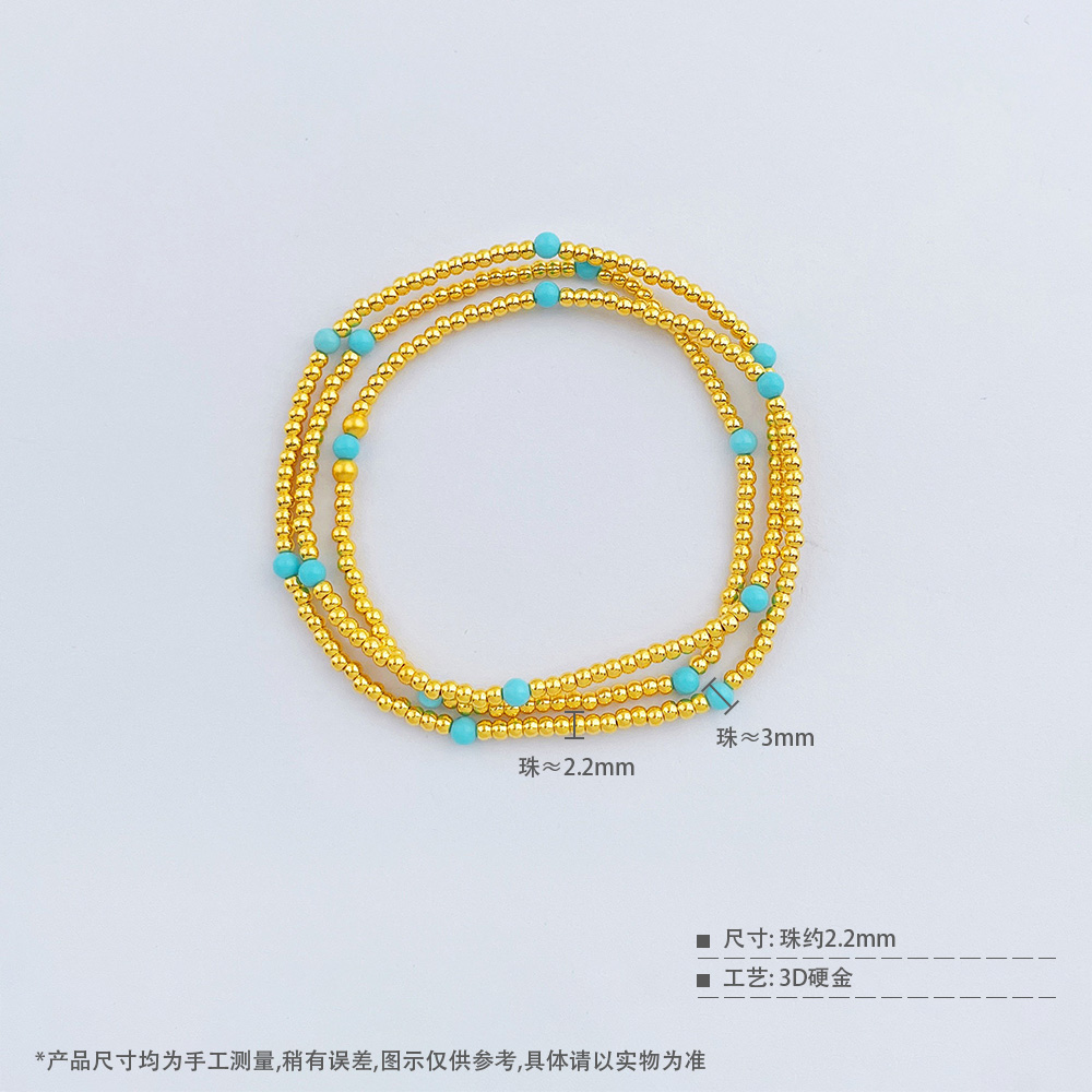 【限时7.5折】【定价黄金】足金 3D硬金空心清新仿绿松石三圈幸运手串圆珠弹力绳成品手串(AK3DSC00036)(预售产品下单后不退款不退货不换货不补差价)