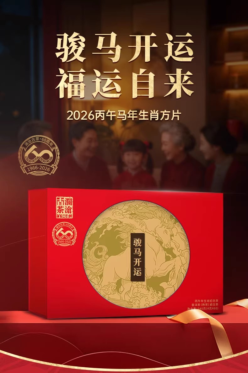 澜沧古茶2026年骏马开运方片生肖熟茶普洱茶云南茶叶纪念茶礼三年陈礼盒便携小袋