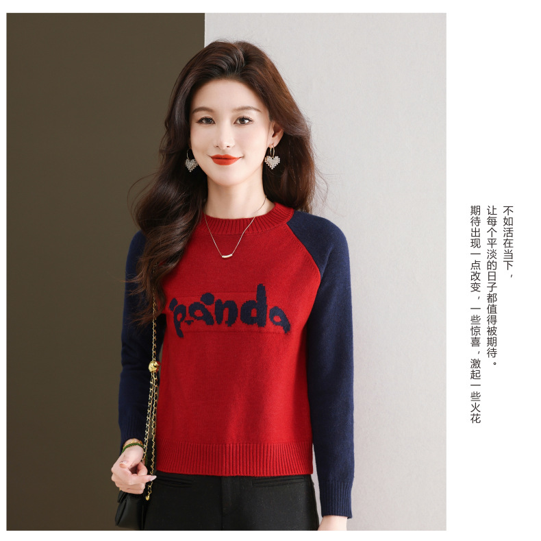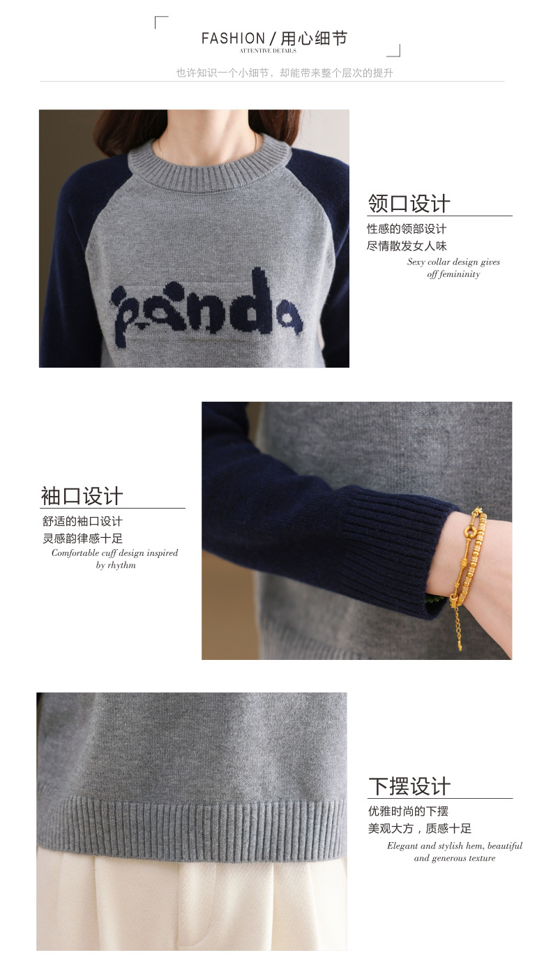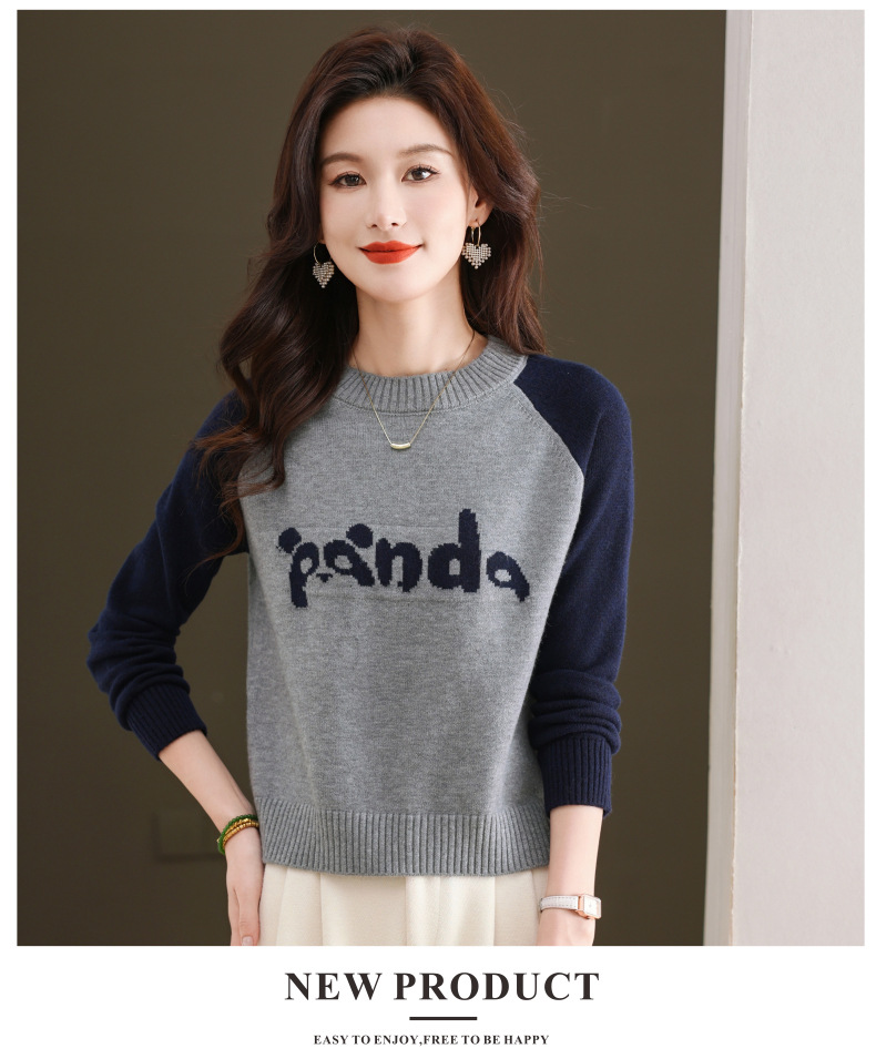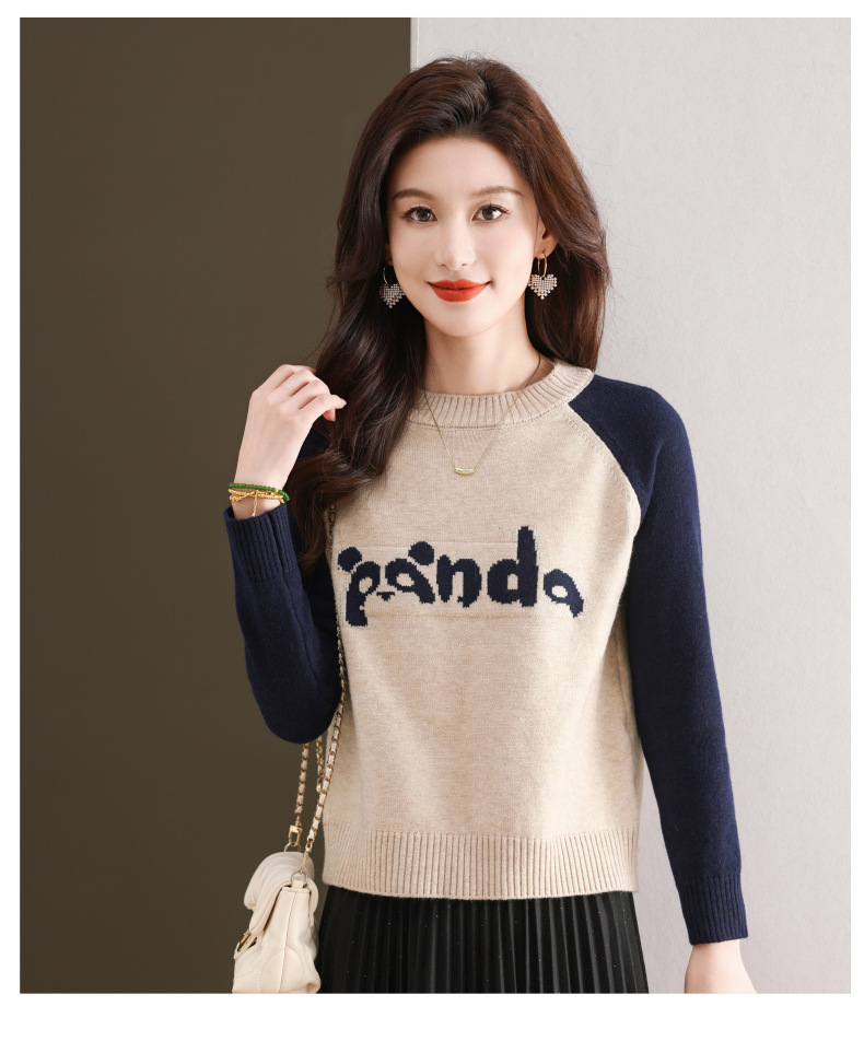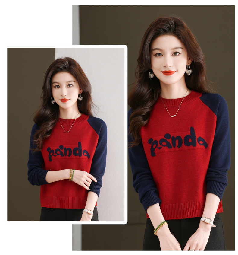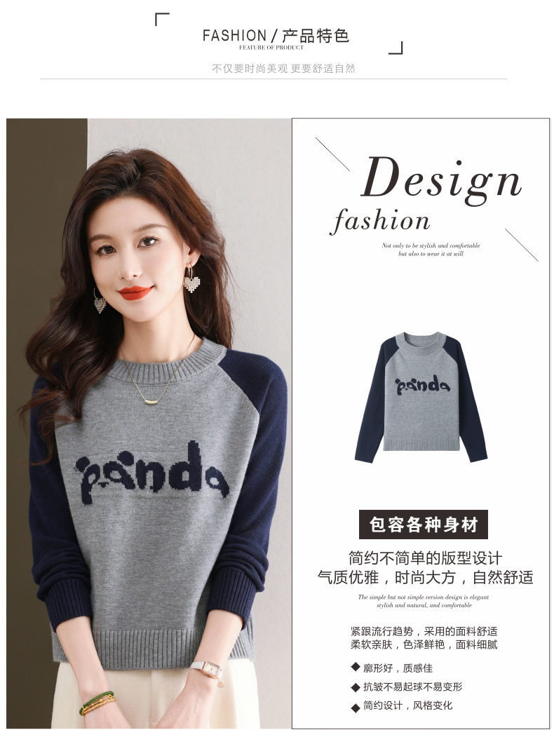 圆领拼色长袖针织打底衫,宽松显瘦气质内搭上衣CC-103-H6118