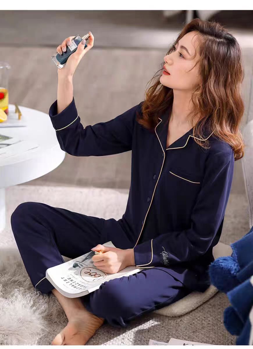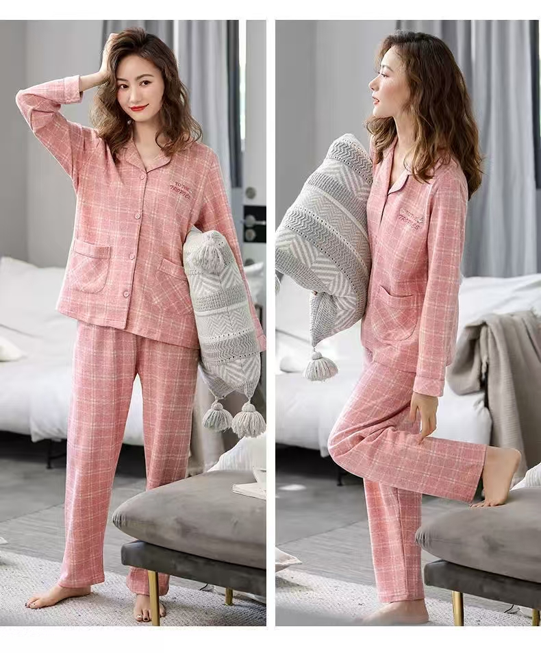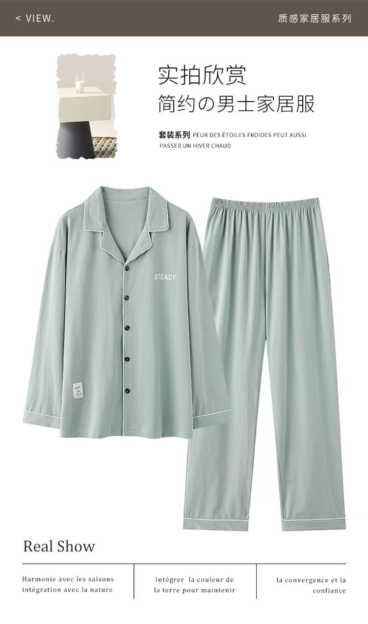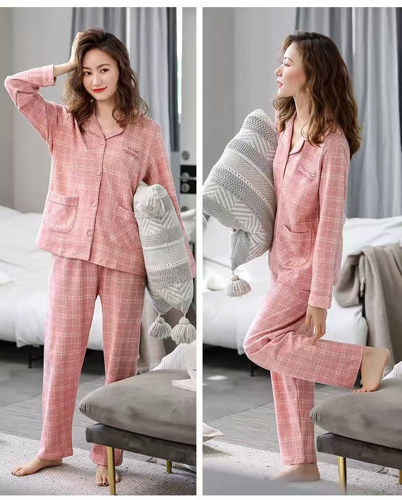 纯棉男女款家居服 女款带胸垫 经典舒适 上衣+下衣套装
