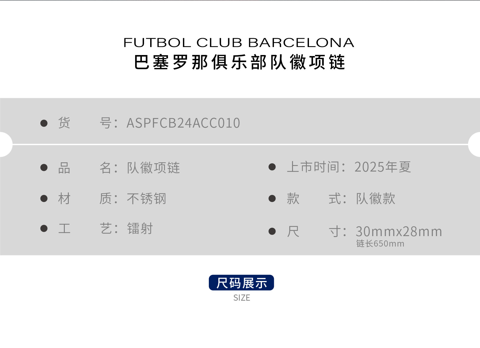 【官方正版】巴塞罗那俱乐部|巴萨新款队徽项链银色质感配饰球迷周边