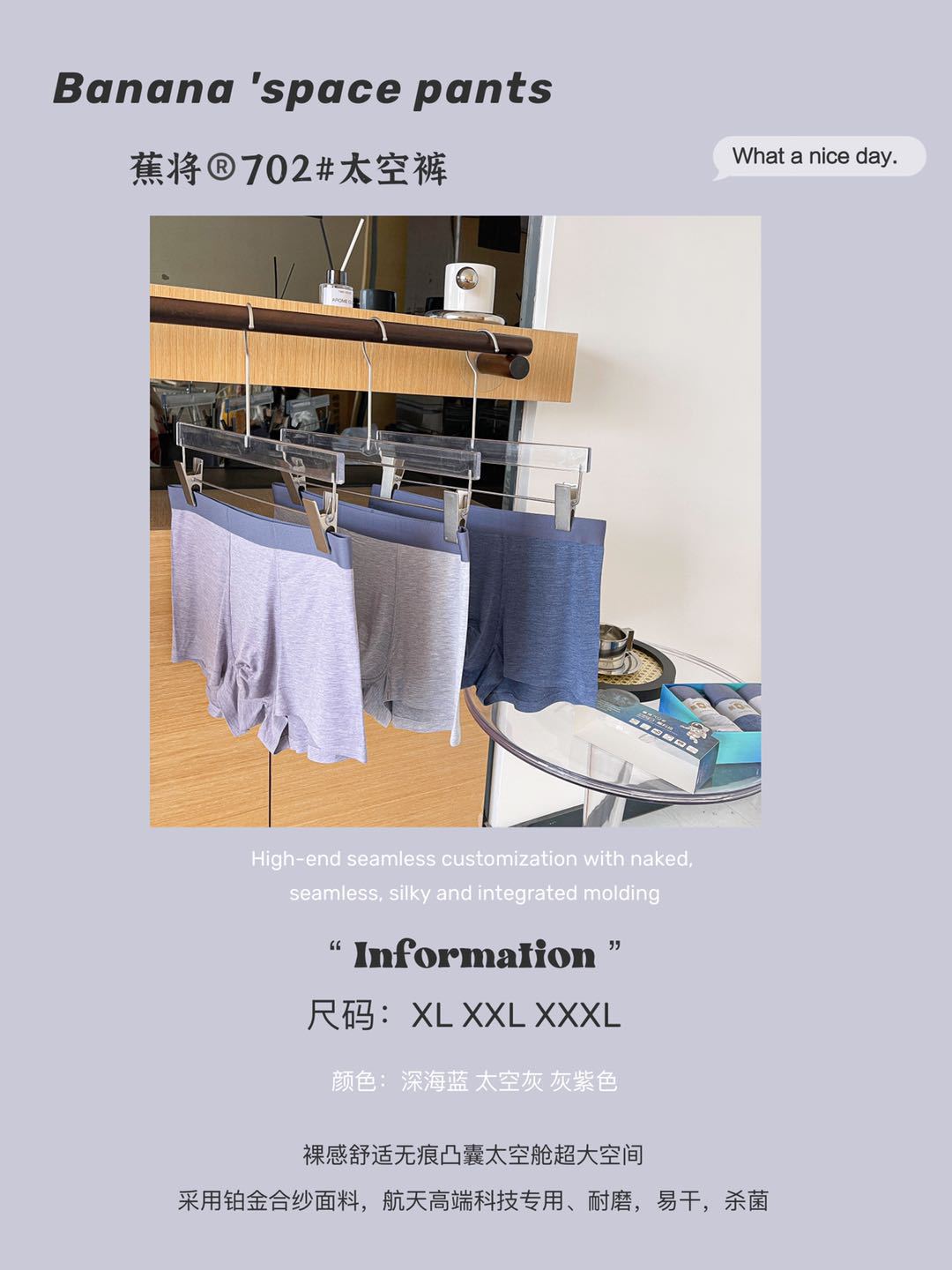 黛唯梵蕉将702#太空裤无痕裸感莫代尔中腰男士平角裤透气无感3D内裤男国庆清明出游