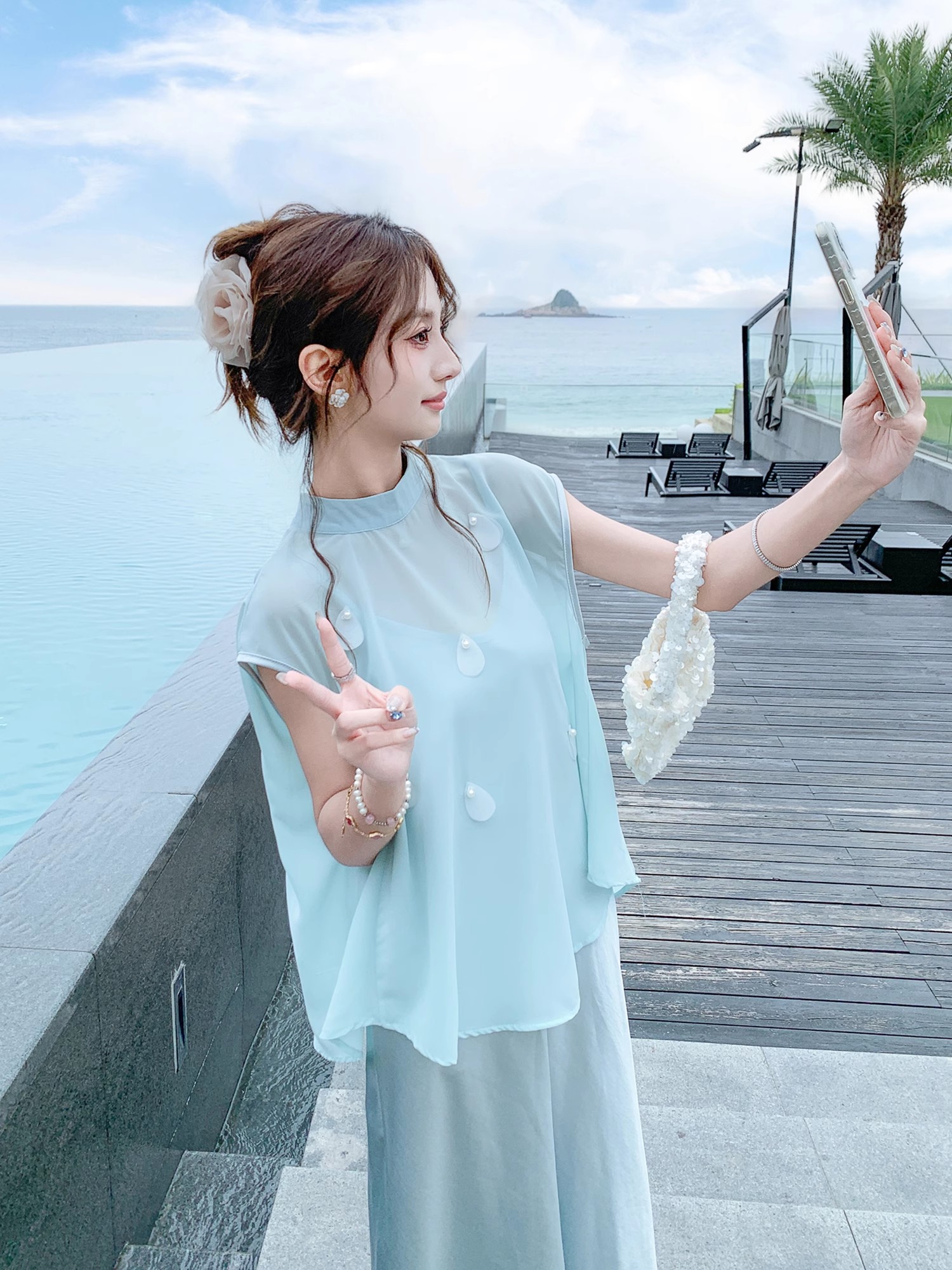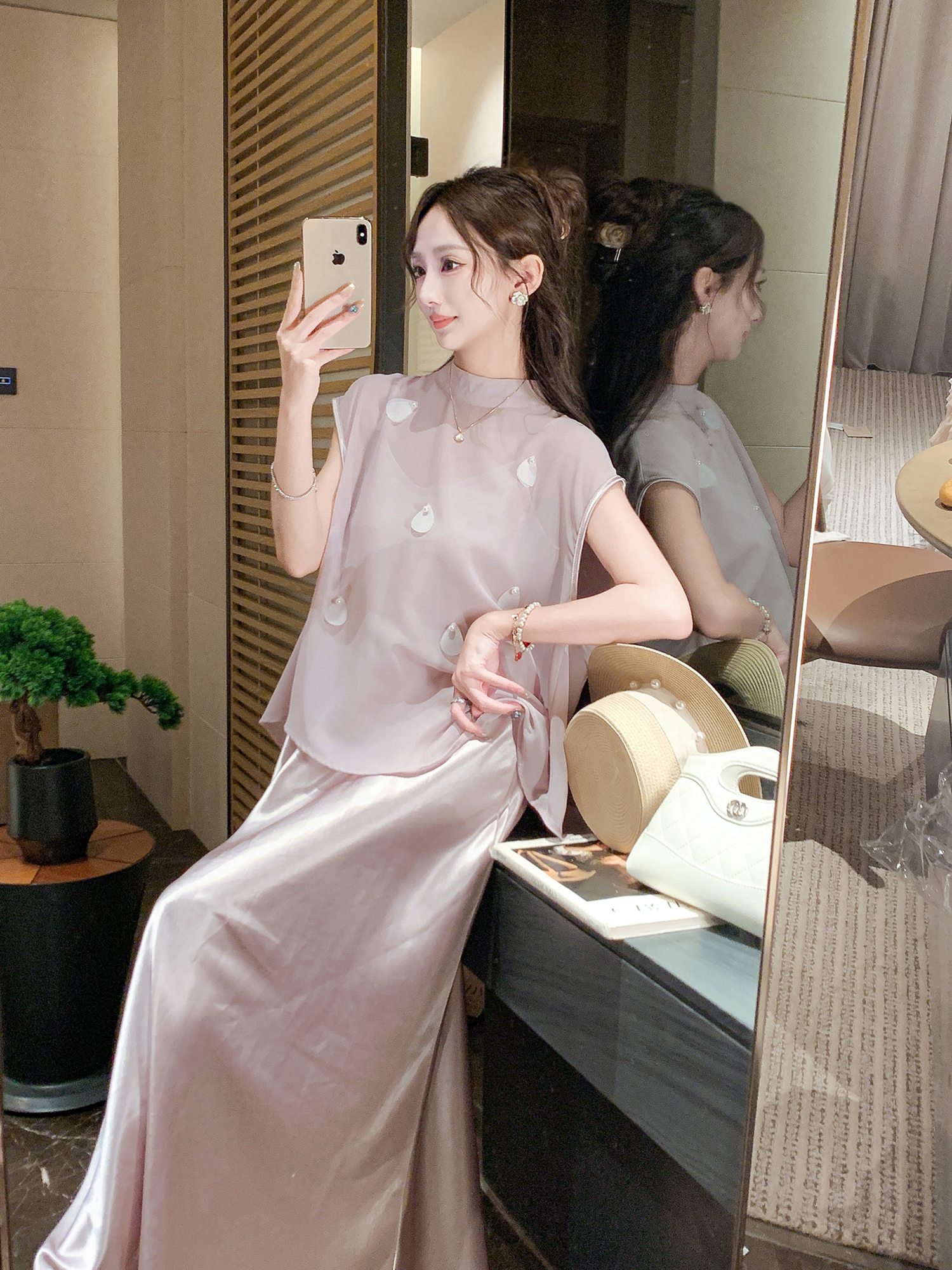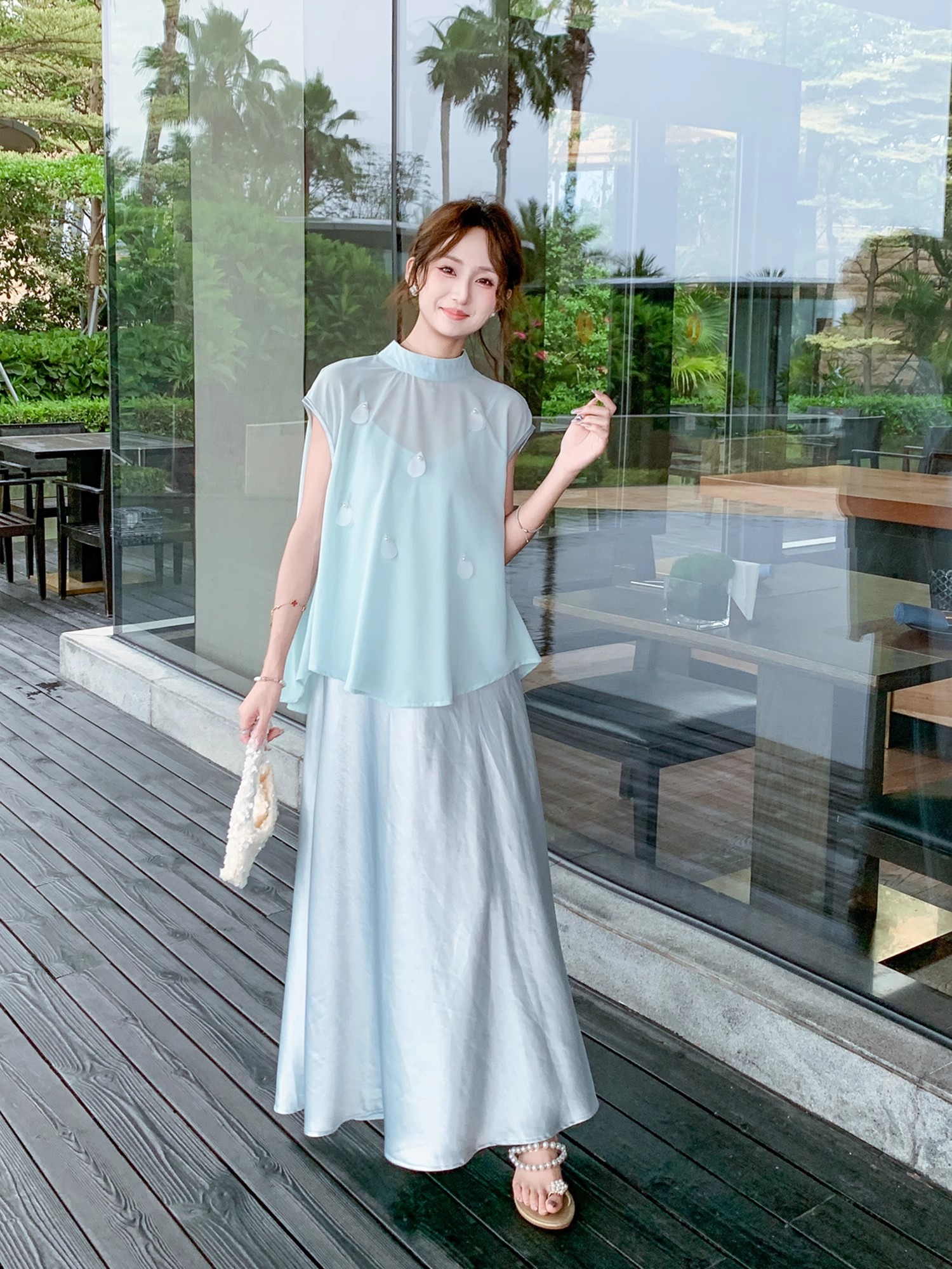 张心子【焦点女王】轻薄透气立体蝴蝶气质仙气两件套套装 U2505092